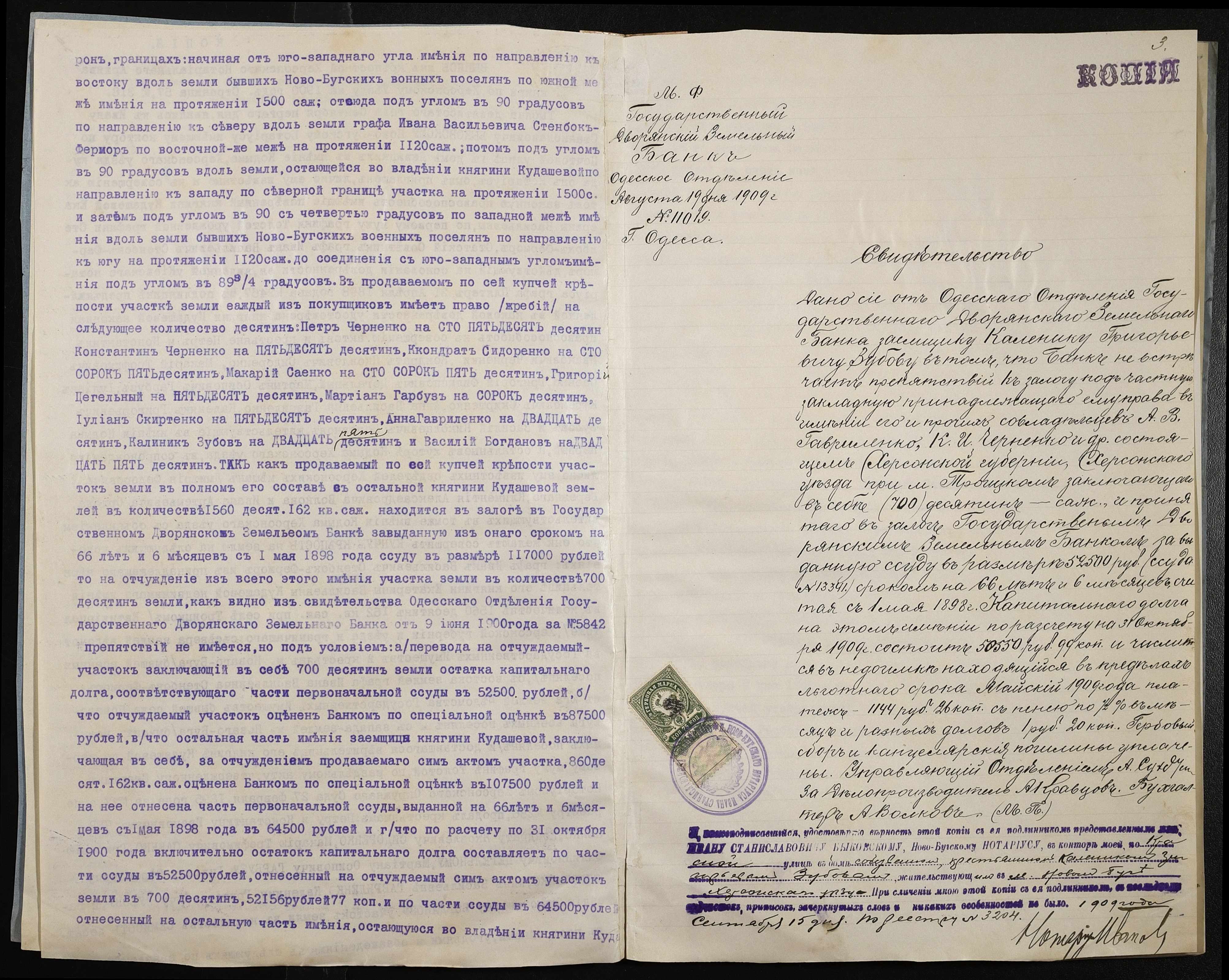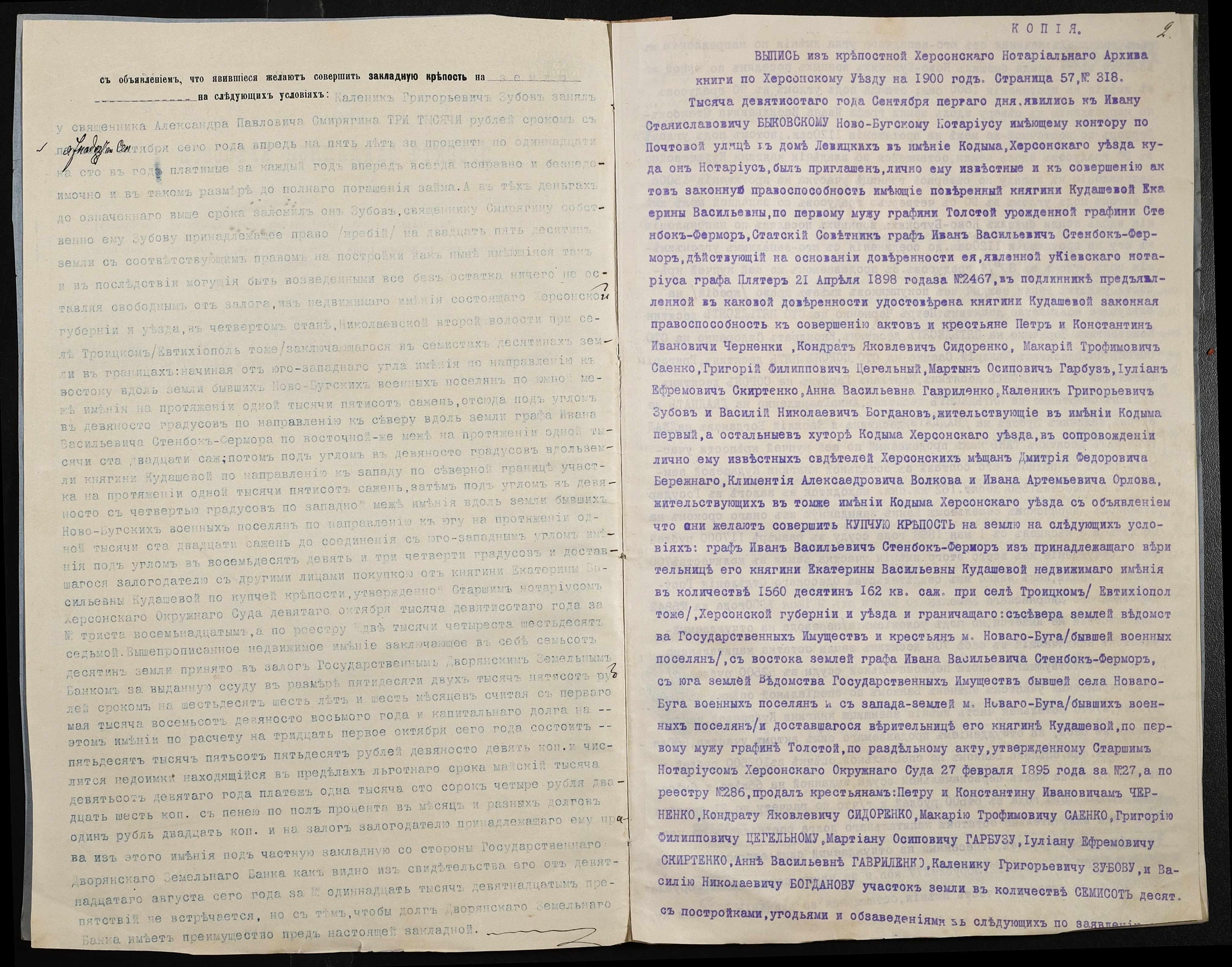 • • • • Справа № 204 “Справа про вчинення заставної на землю, закладену селянином Зубовим (Зубовым) Калеником Григоровичем (Григорьевичем)священнику Смирягіну Олександру (Смирягину Александру) Павловичу”
