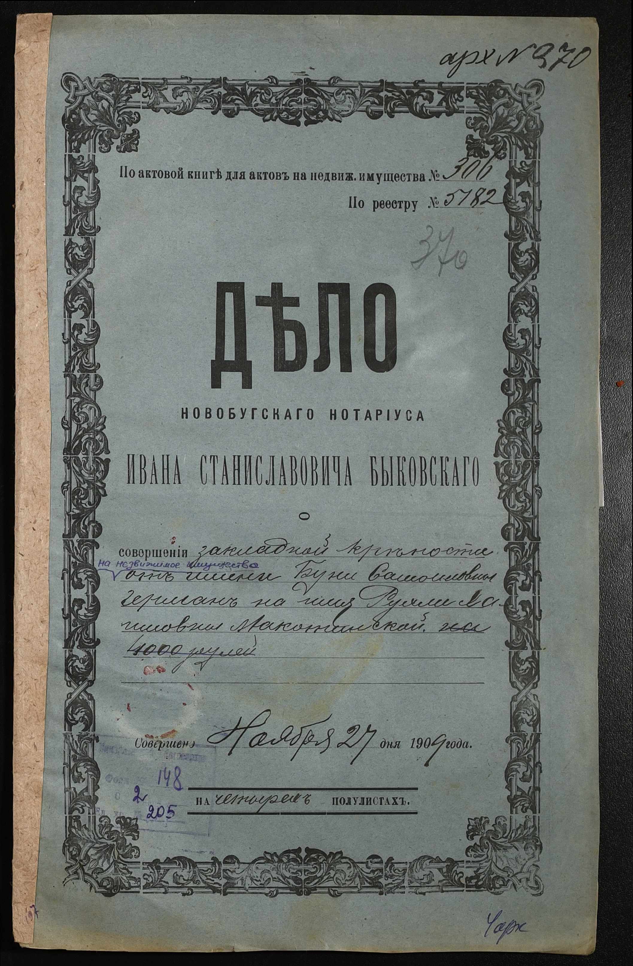 ◦ ◦ Фонд № 148 “Контора новобузького нотаріуса Биковського Івана Станіславовича”
