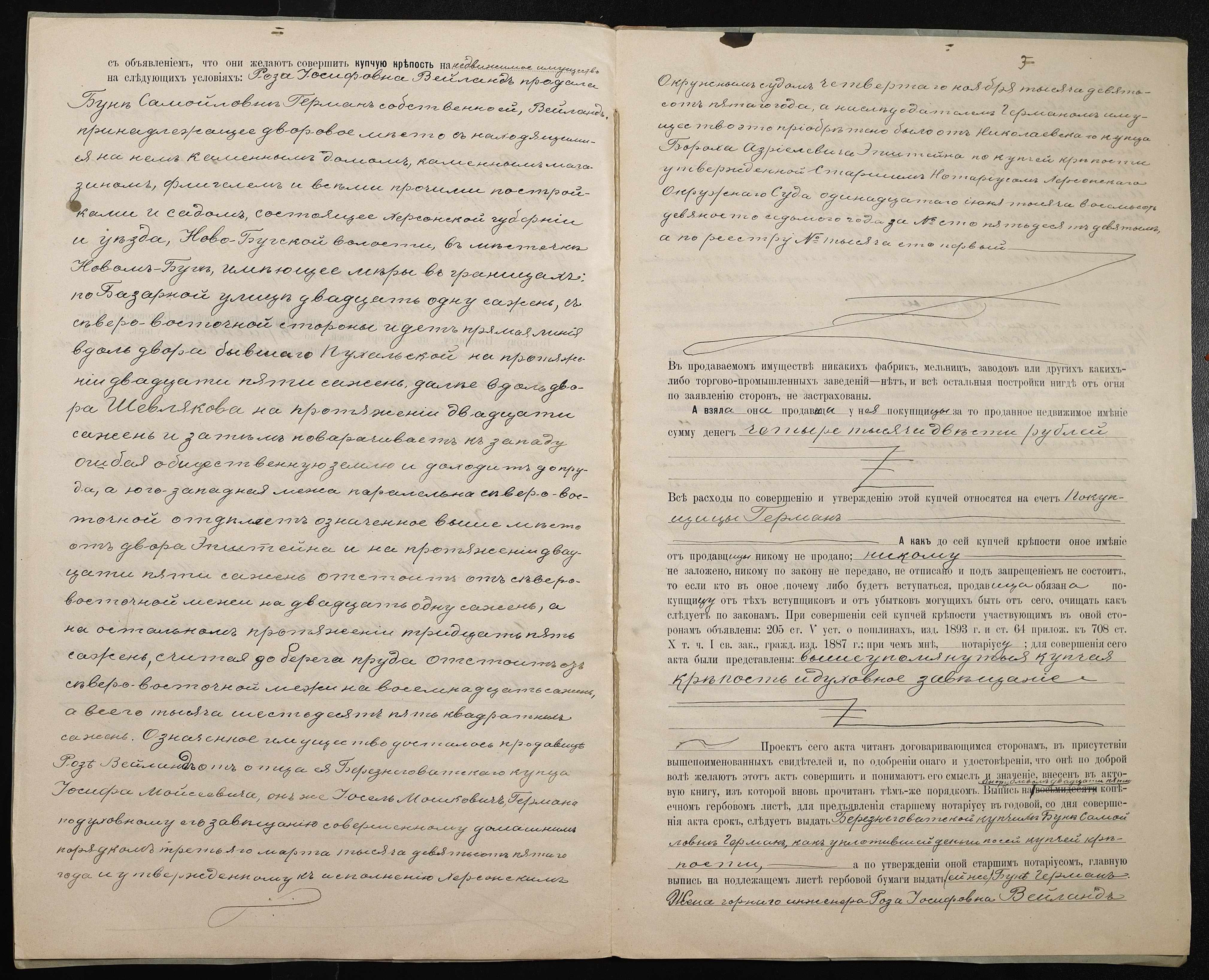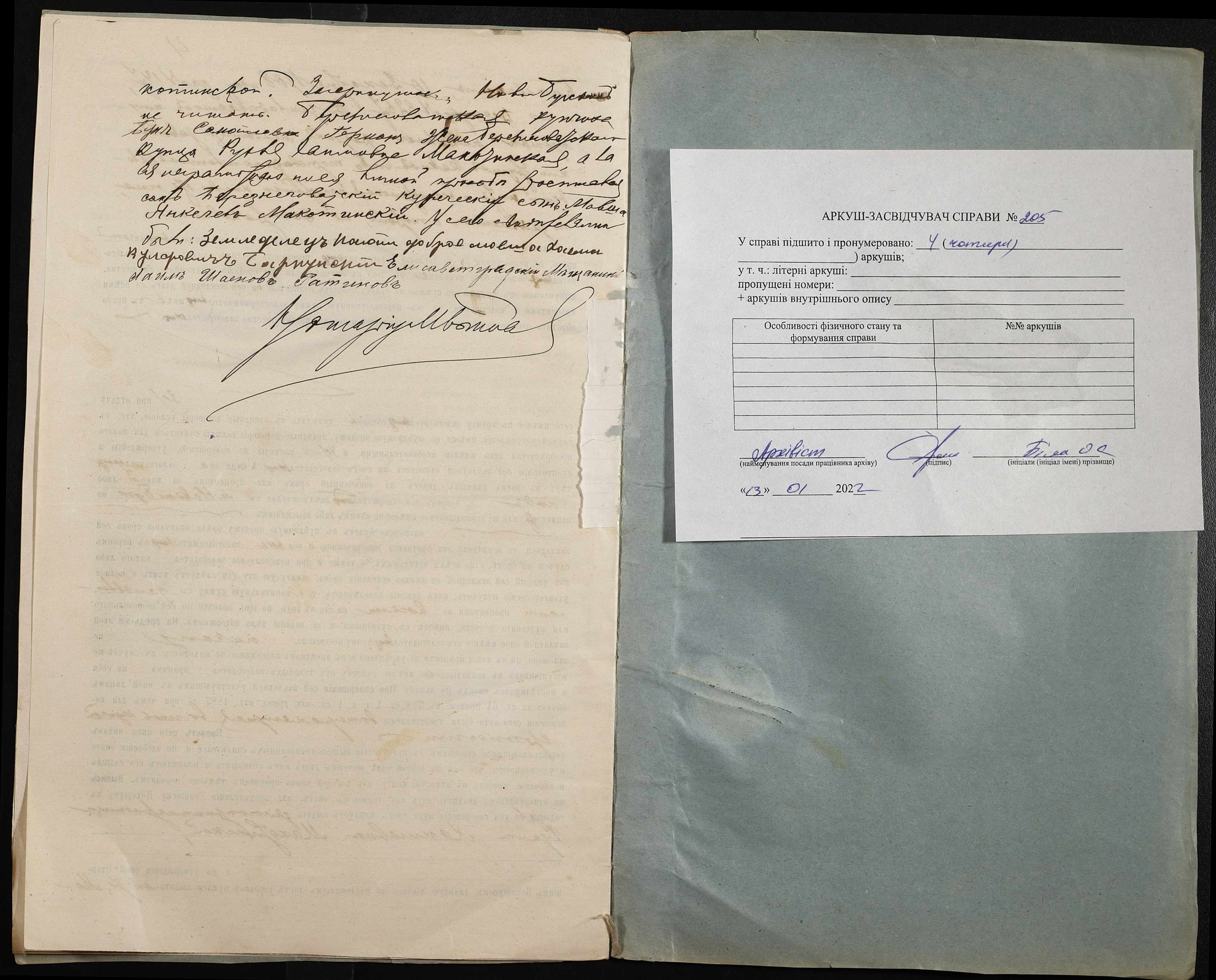 • • • • Справа № 205 “Справа про вчинення заставної на нерухоме майно, закладене березнегуватською купчихою Герман Бунею Самойлівною (Буней Самойловной) дружині березнегуватського купця Макотинській Рухлі Хаїмівні (Макотинской Рухле Хаимовне)”
