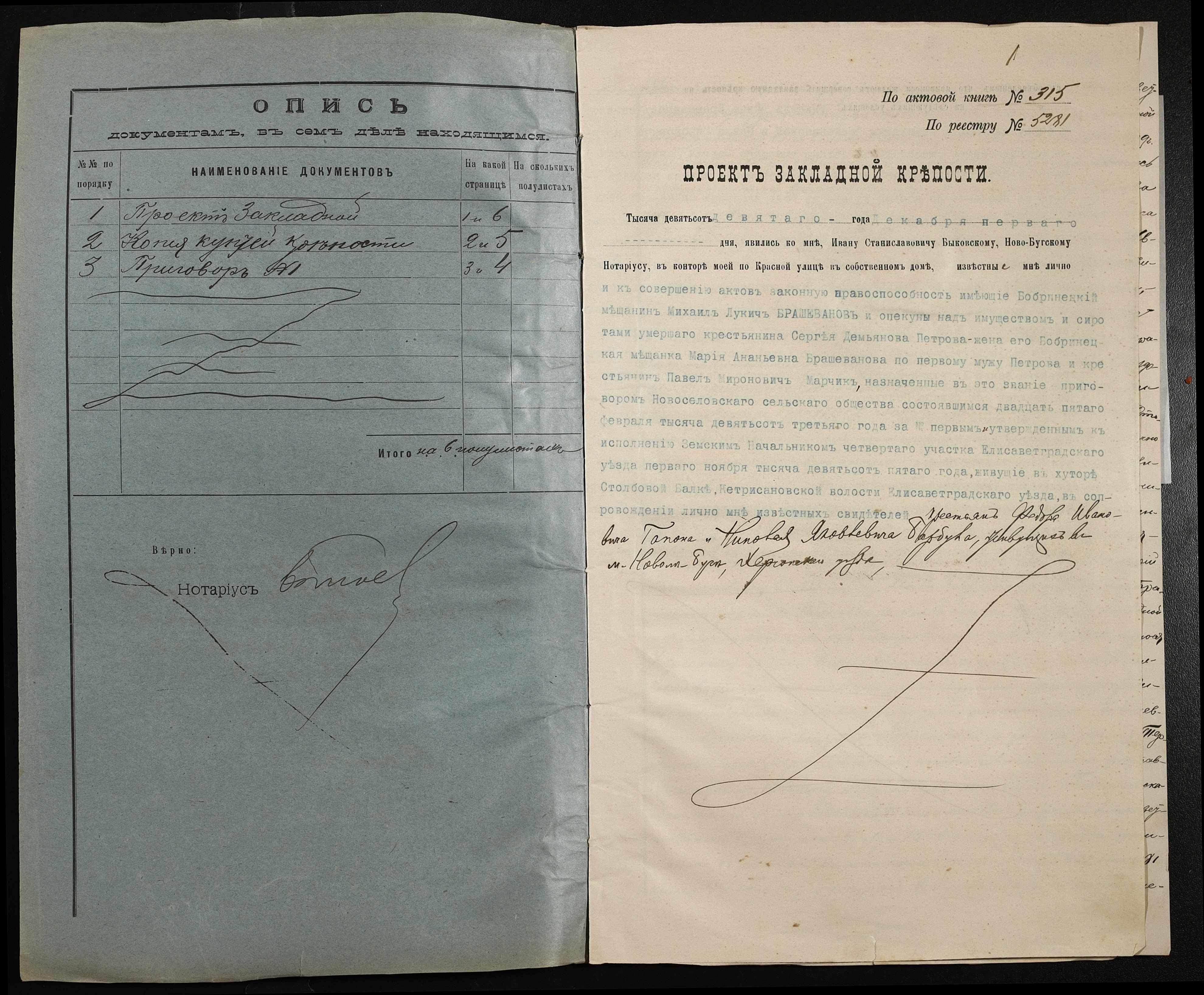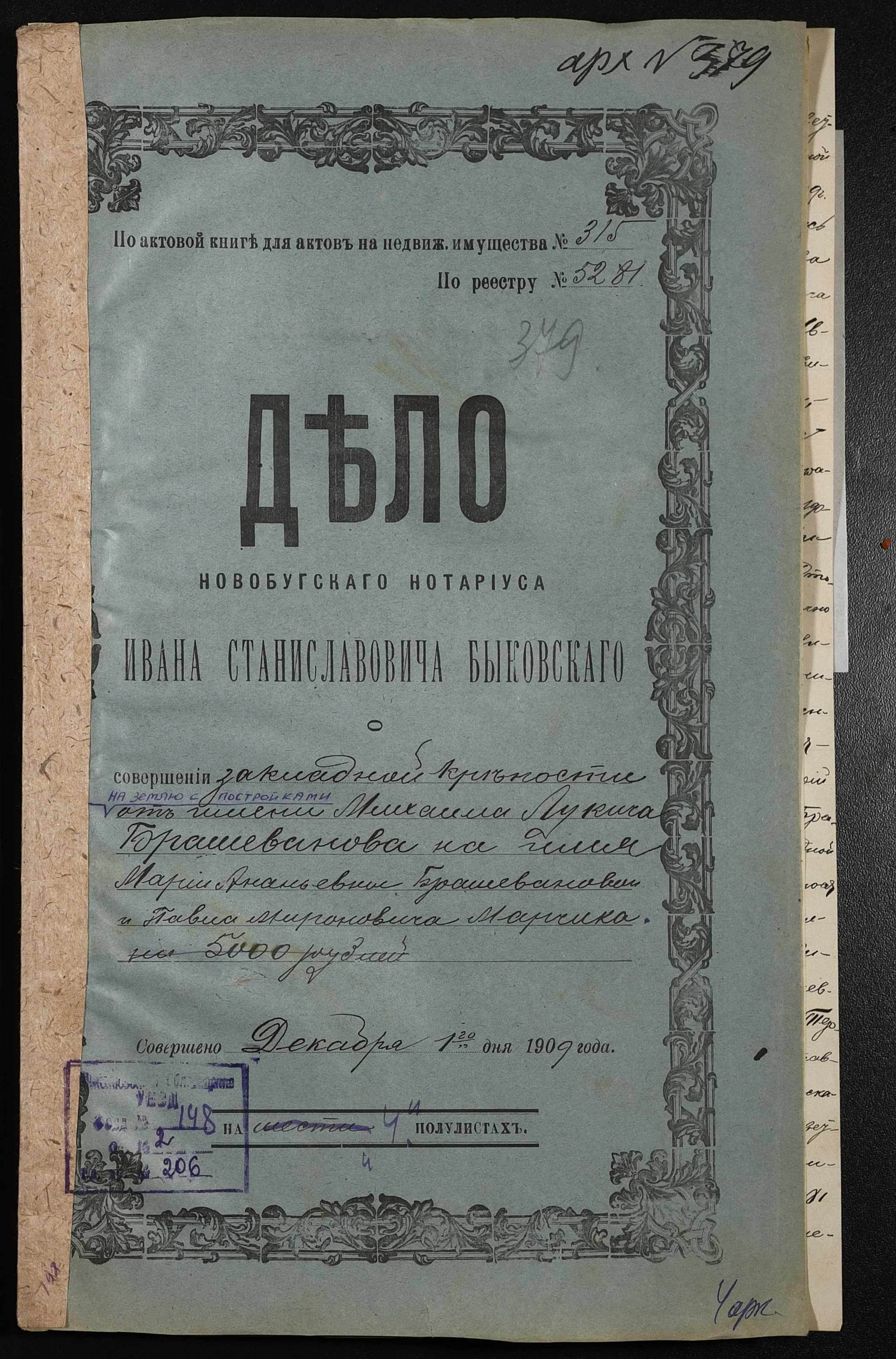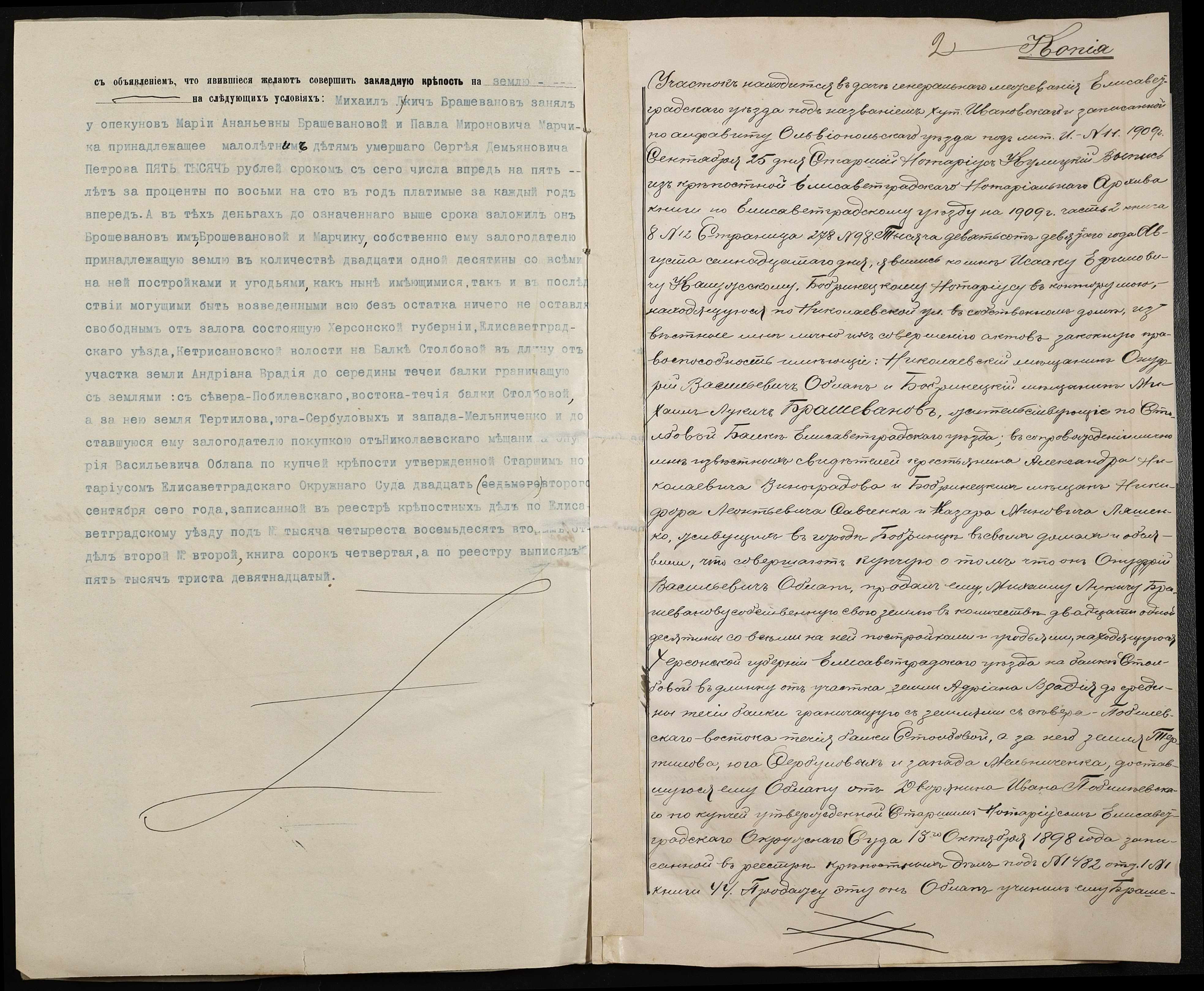 • • • • Справа № 206 “Справа про вчинення заставної на землю зі спорудами, закладену бобринецьким міщанином Брашевановим Михайлом (Брашевановым Михаилом) Лукичем бобринецькій міщанці Брашевановій Марії Ананьївні (Брашевановой Марии Ананьевне) і селянину Марчику Павлу Мироновичу”