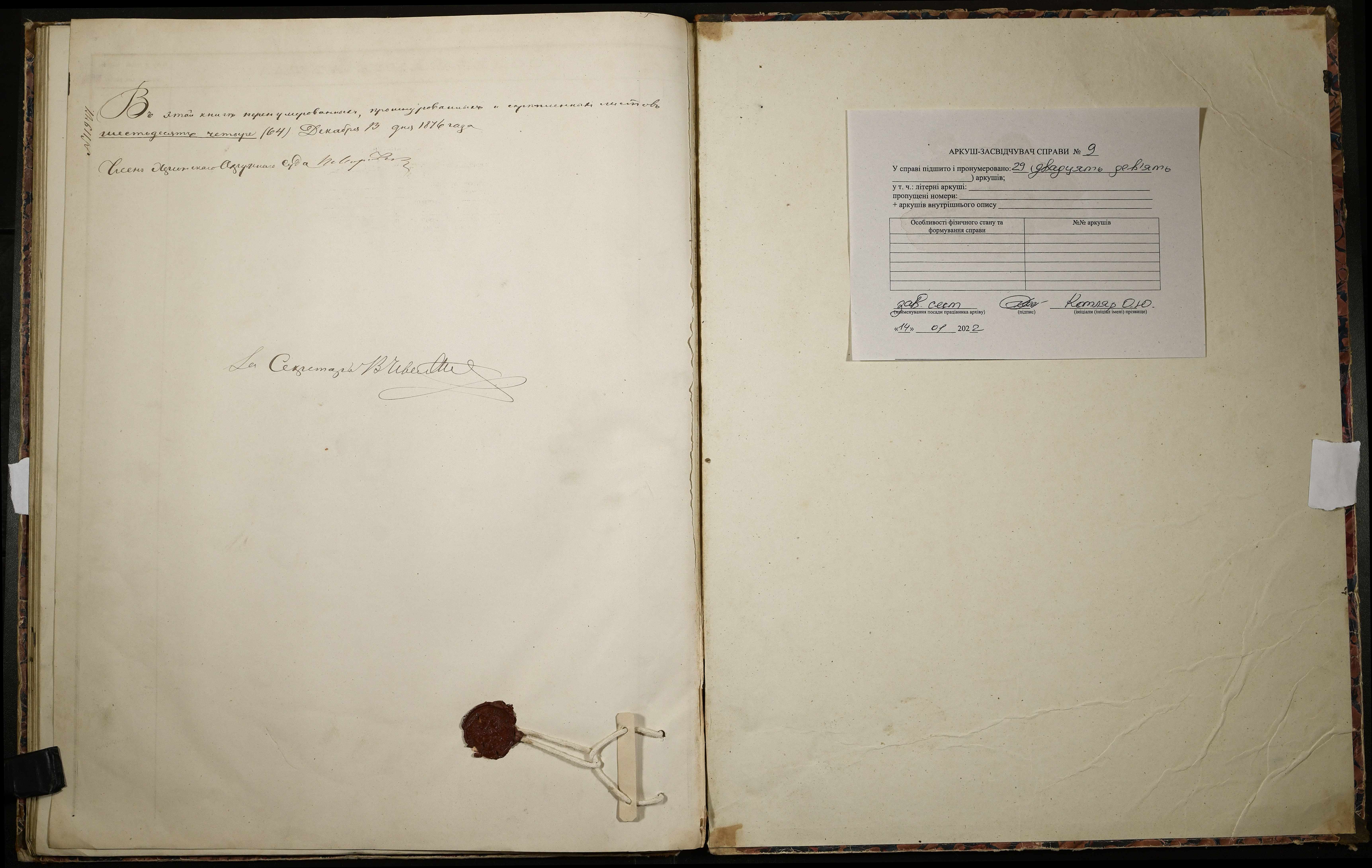 ◦ ◦ ◦ Опис № 1 справ постійного зберігання за 1873–1892 роки