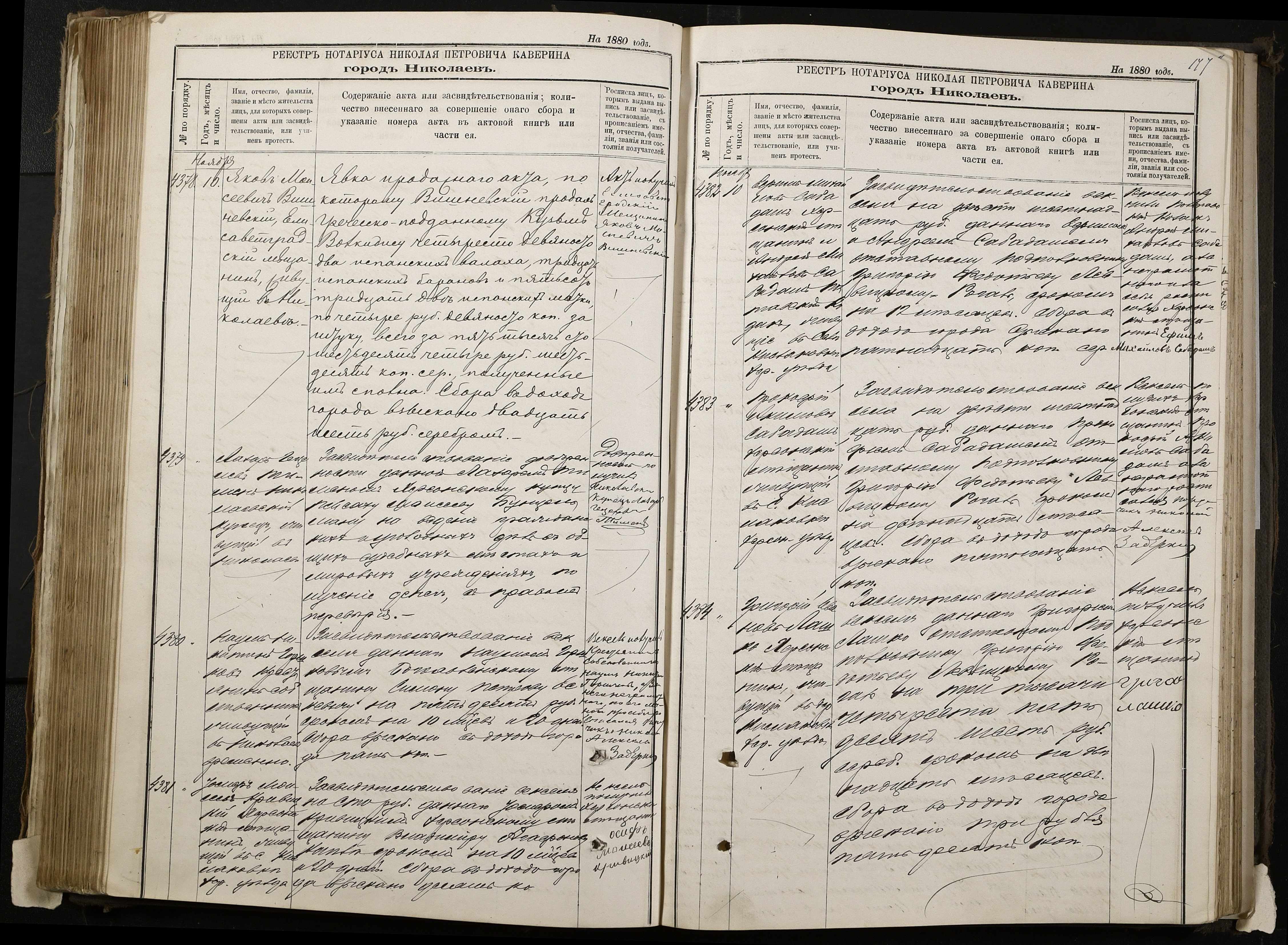 ◦ ◦ ◦ Опис № 1 справ постійного зберігання за 1873–1892 роки