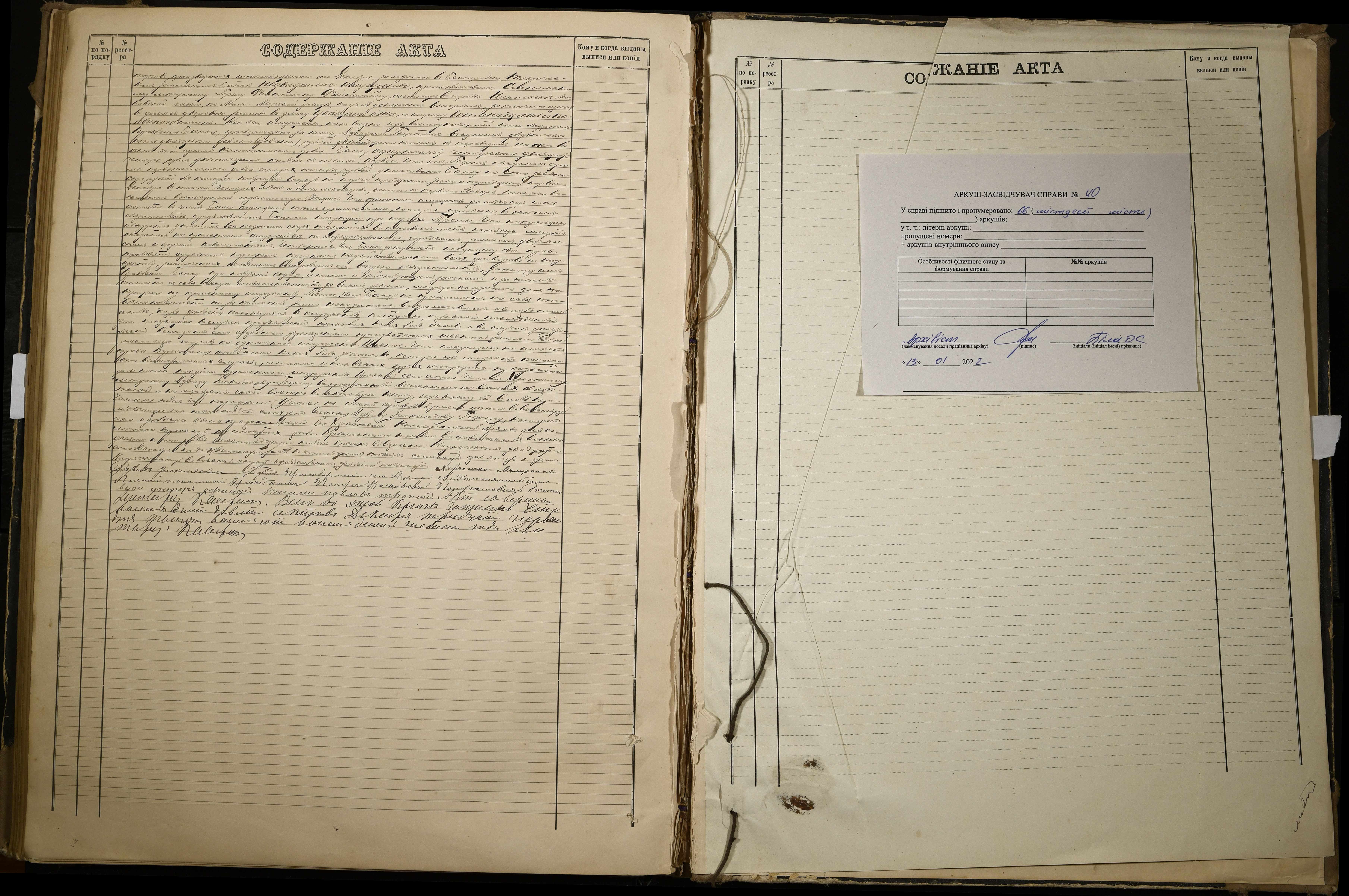 • • • • Справа № 40 “Актова книга для запису нотаріальних дій з нерухомим майном”