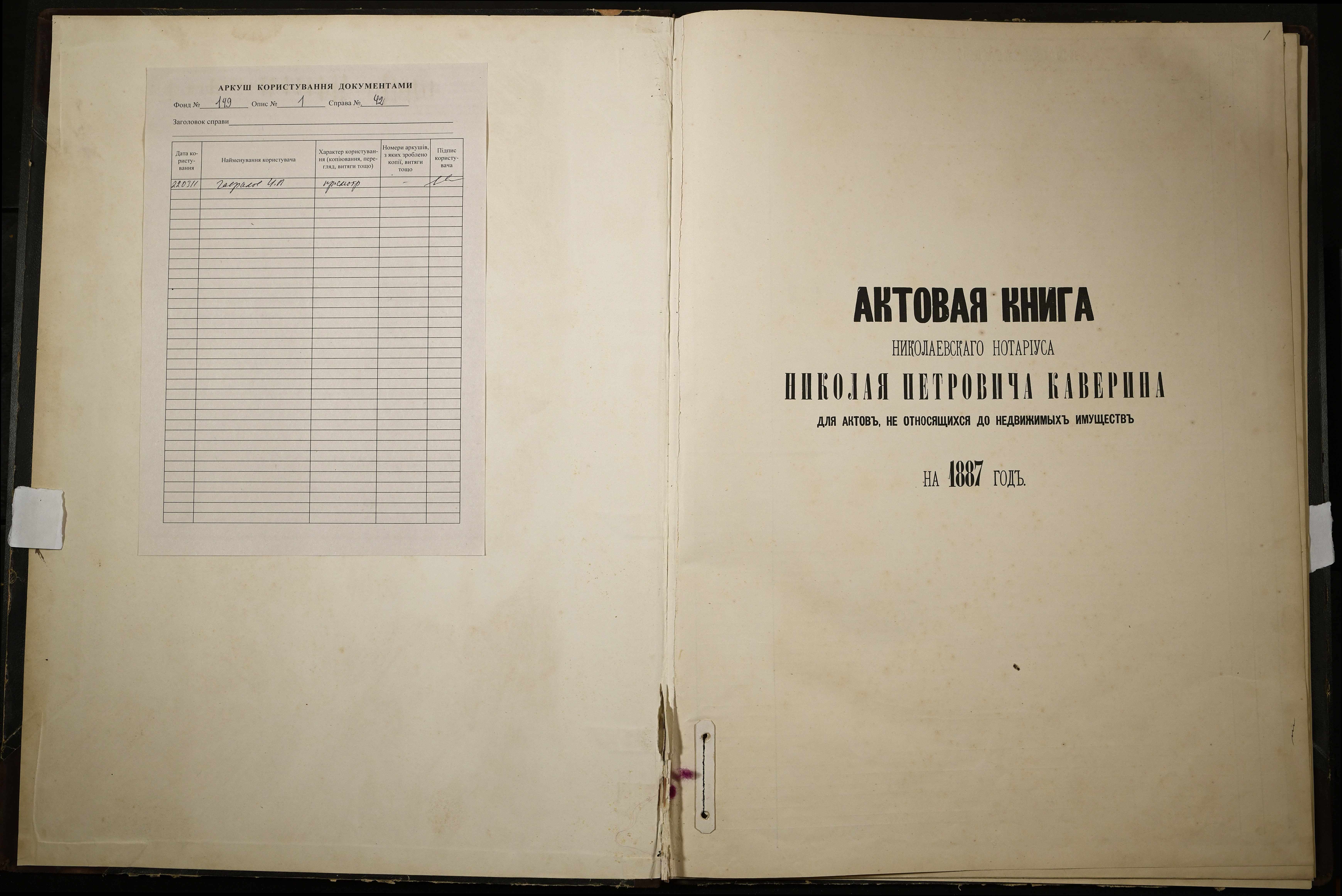◦ ◦ Фонд № 149 “Контора нотаріуса Каверіна Миколи Петровича”
