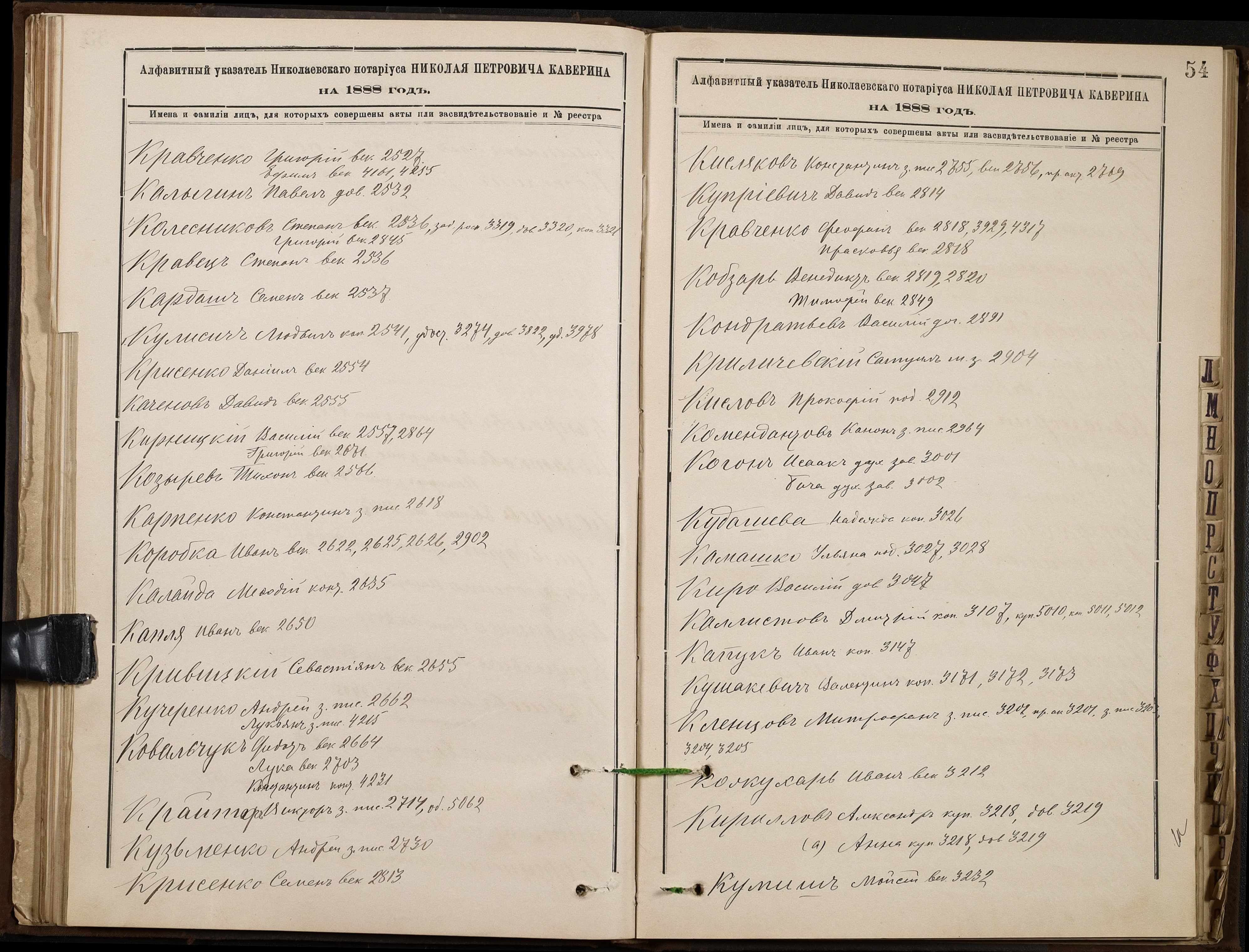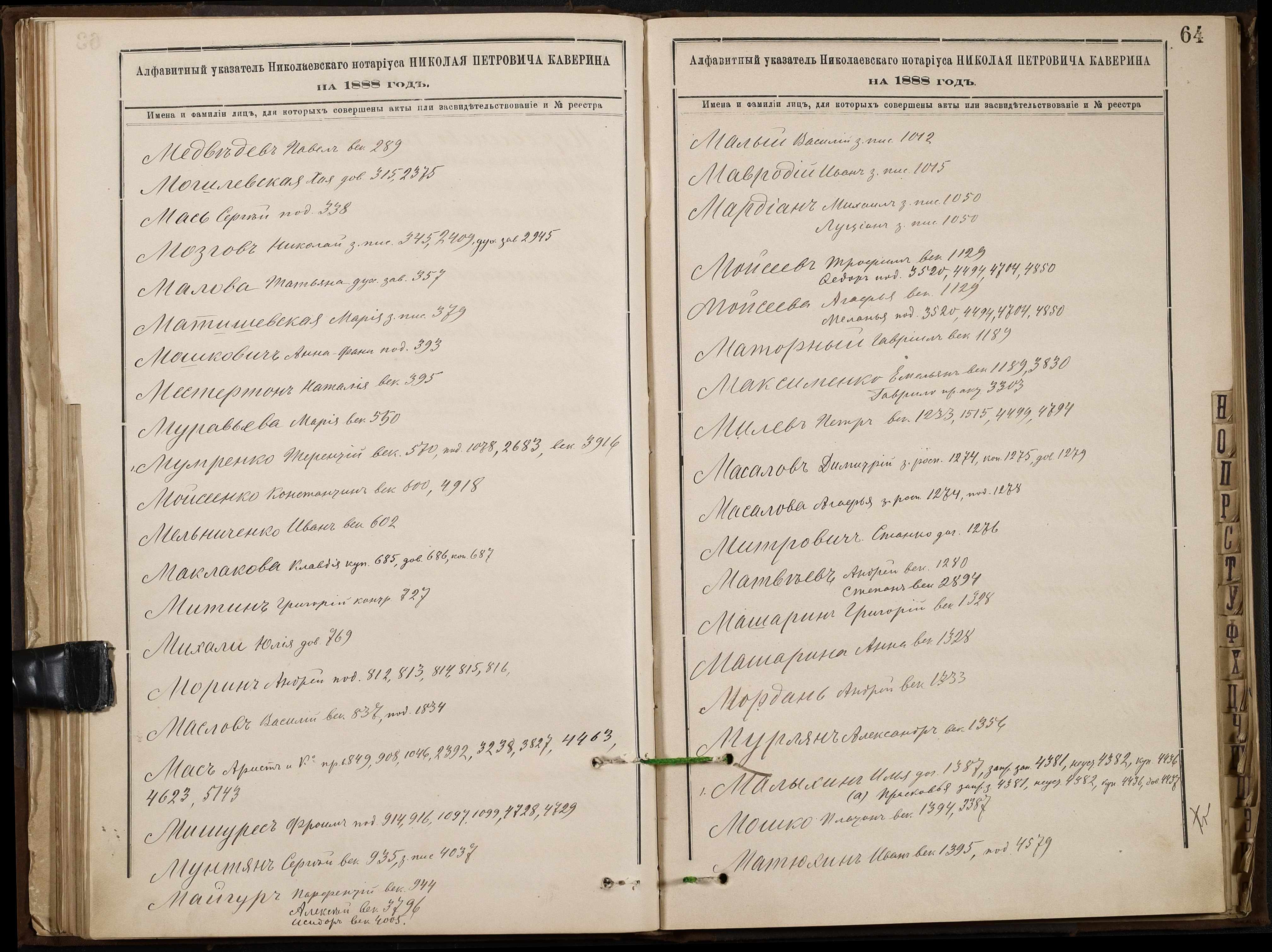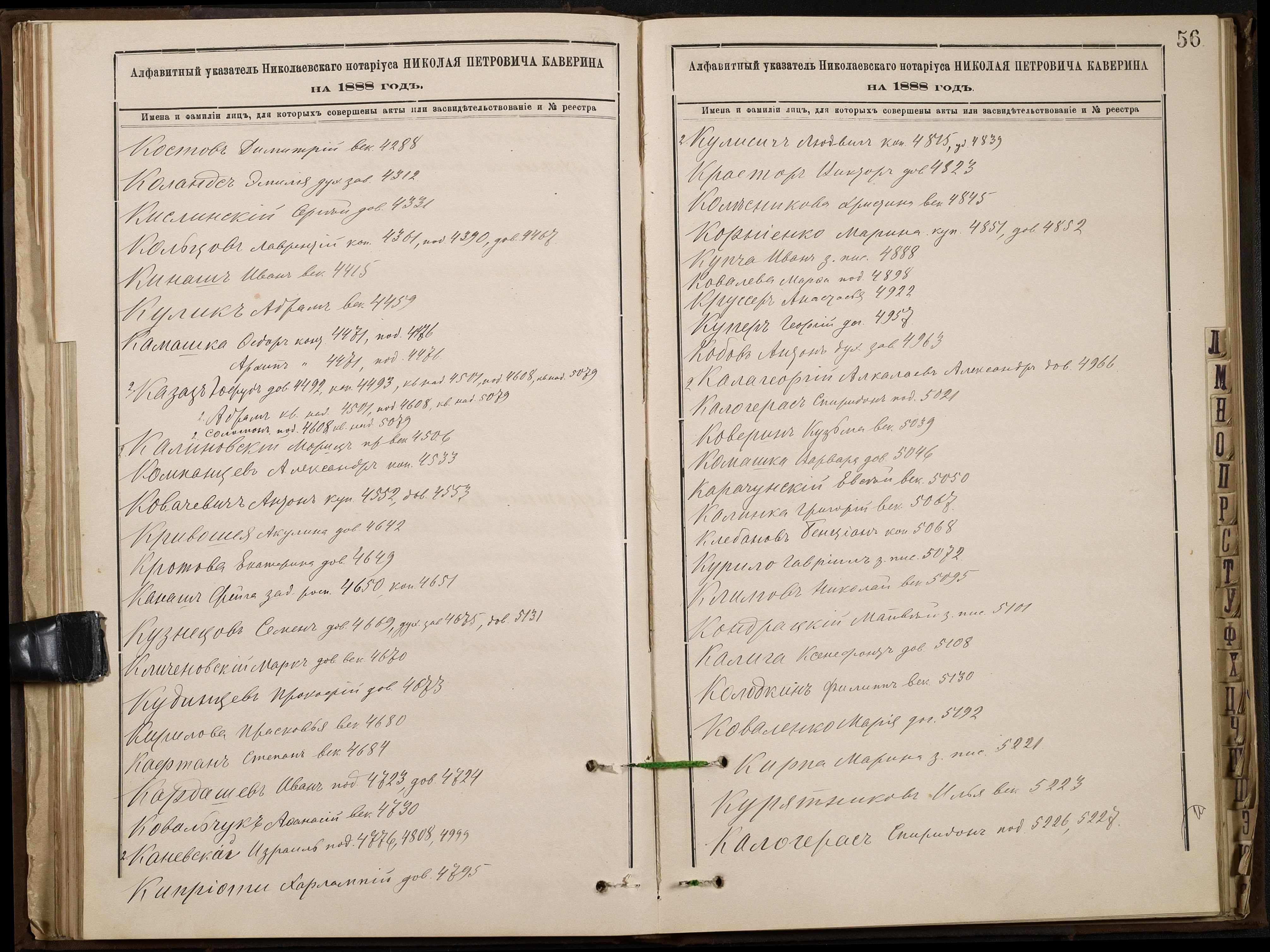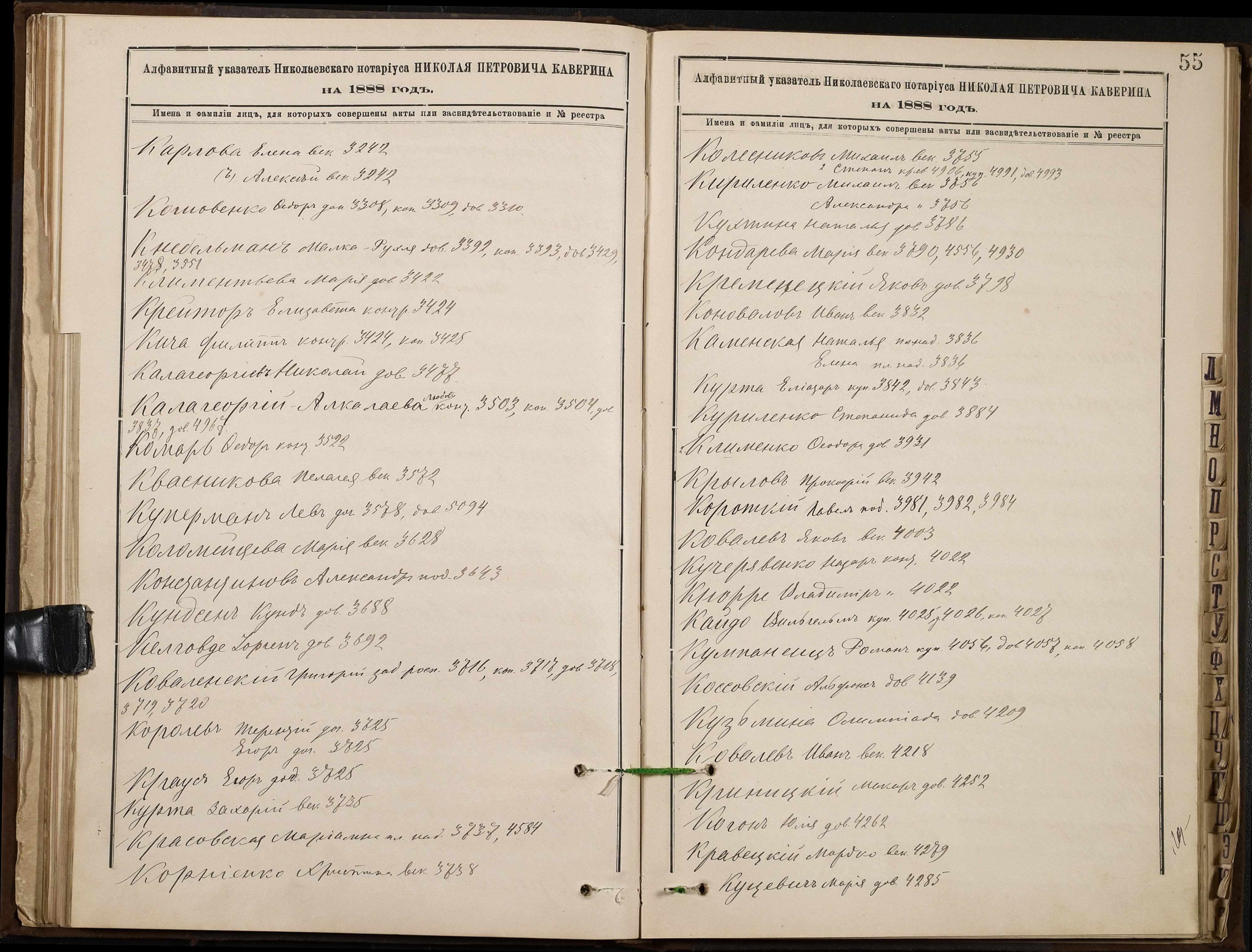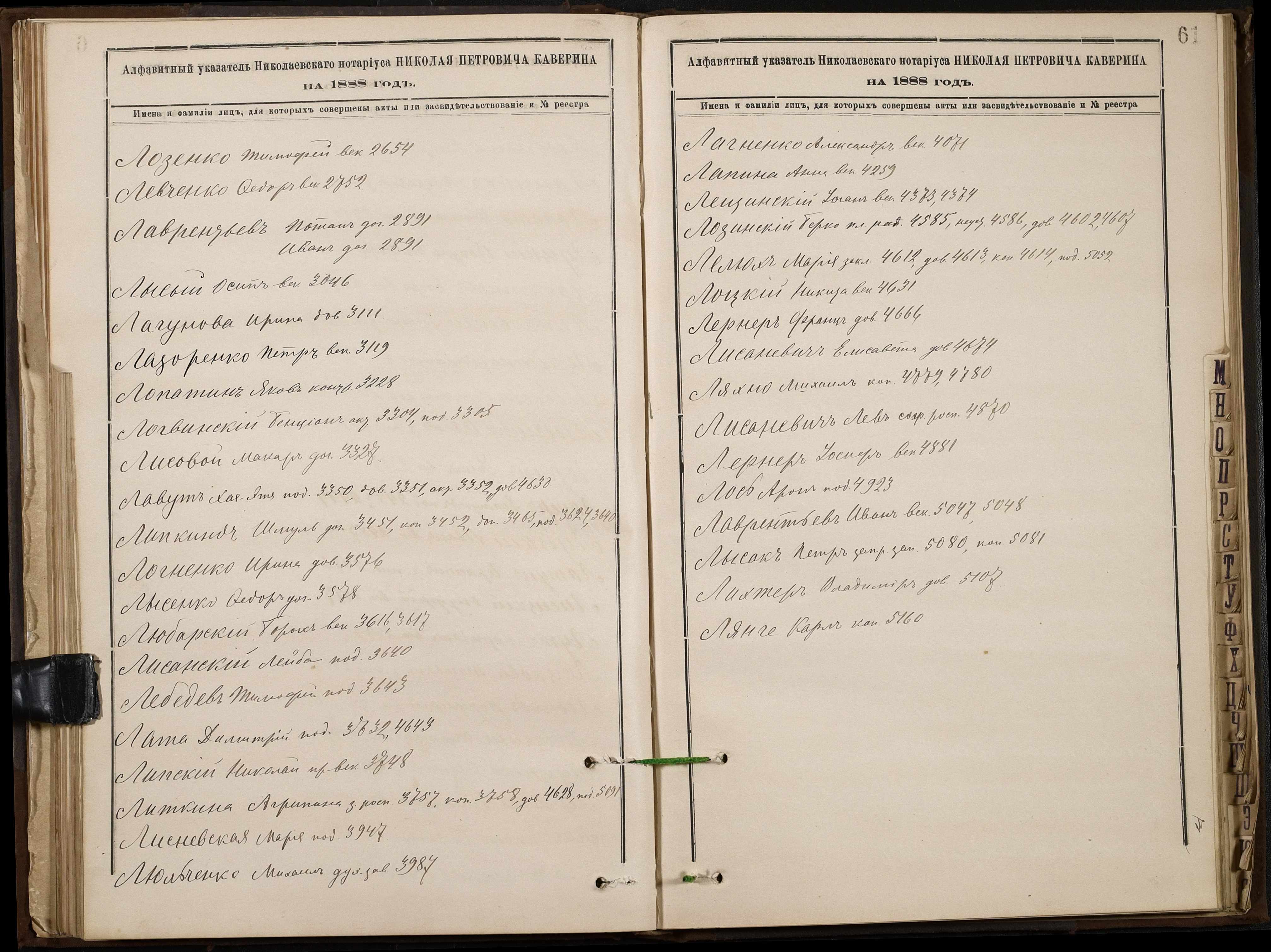 • • • • Справа № 46 “Алфавітна книга за 1888 рік”