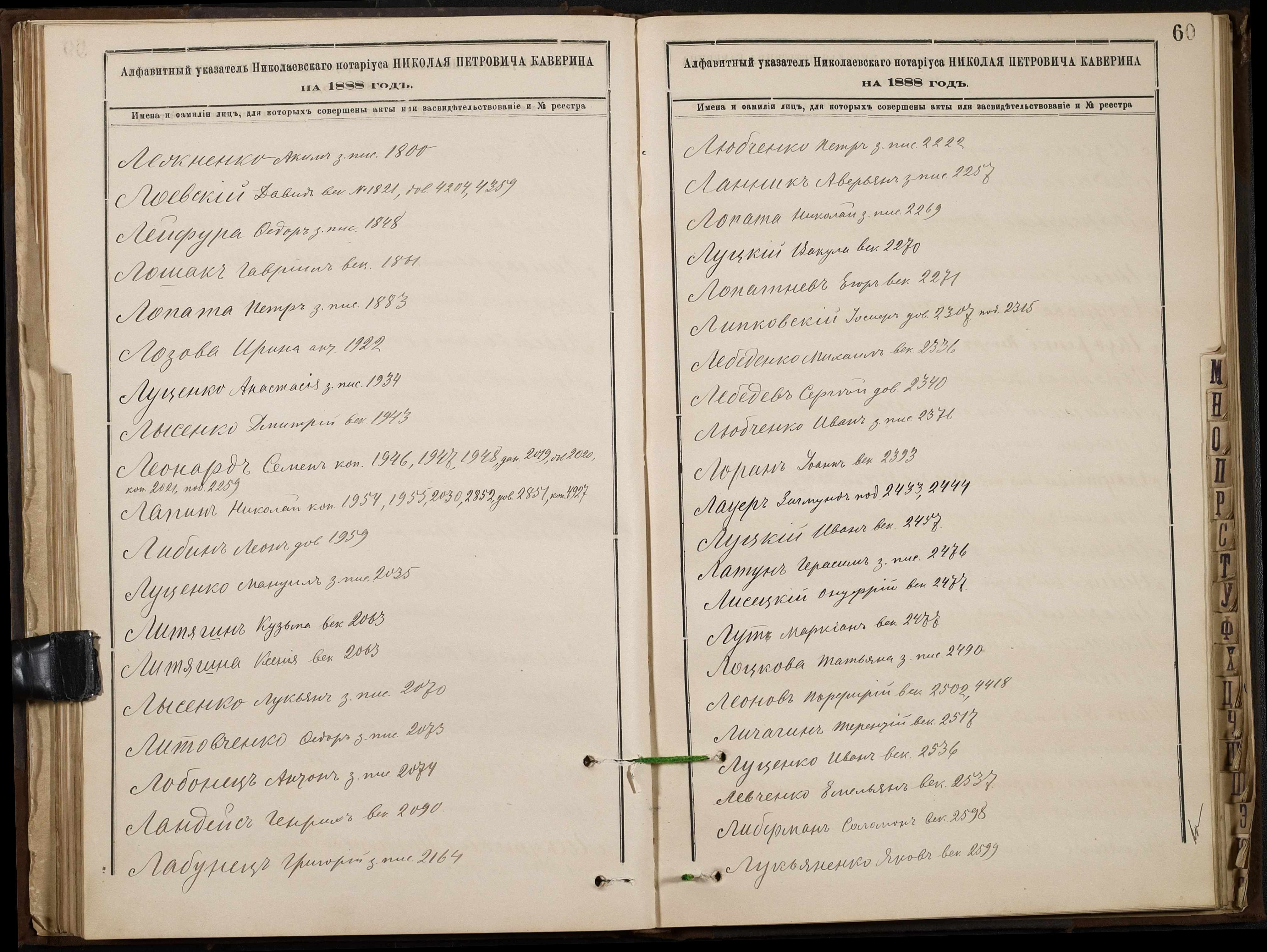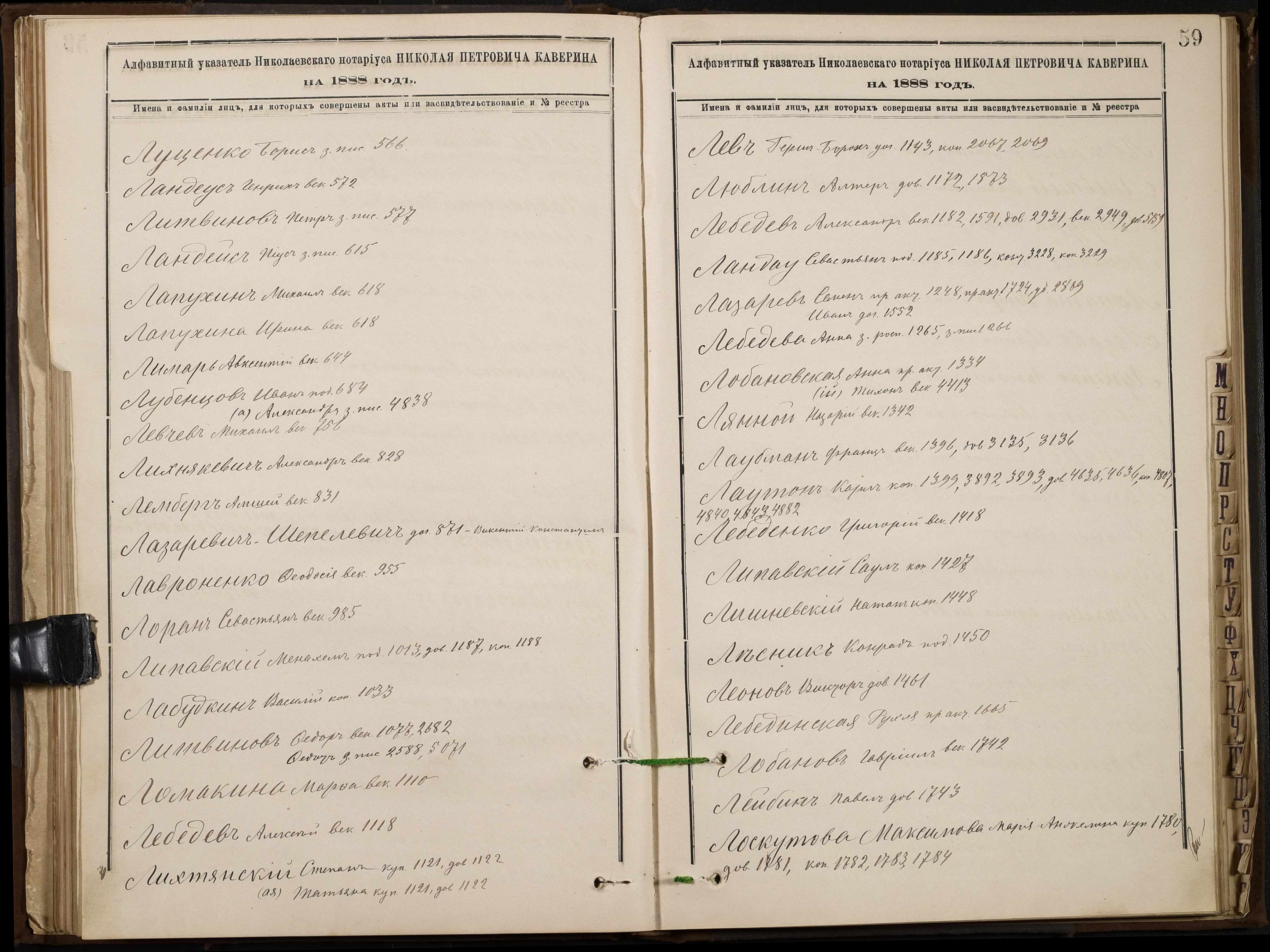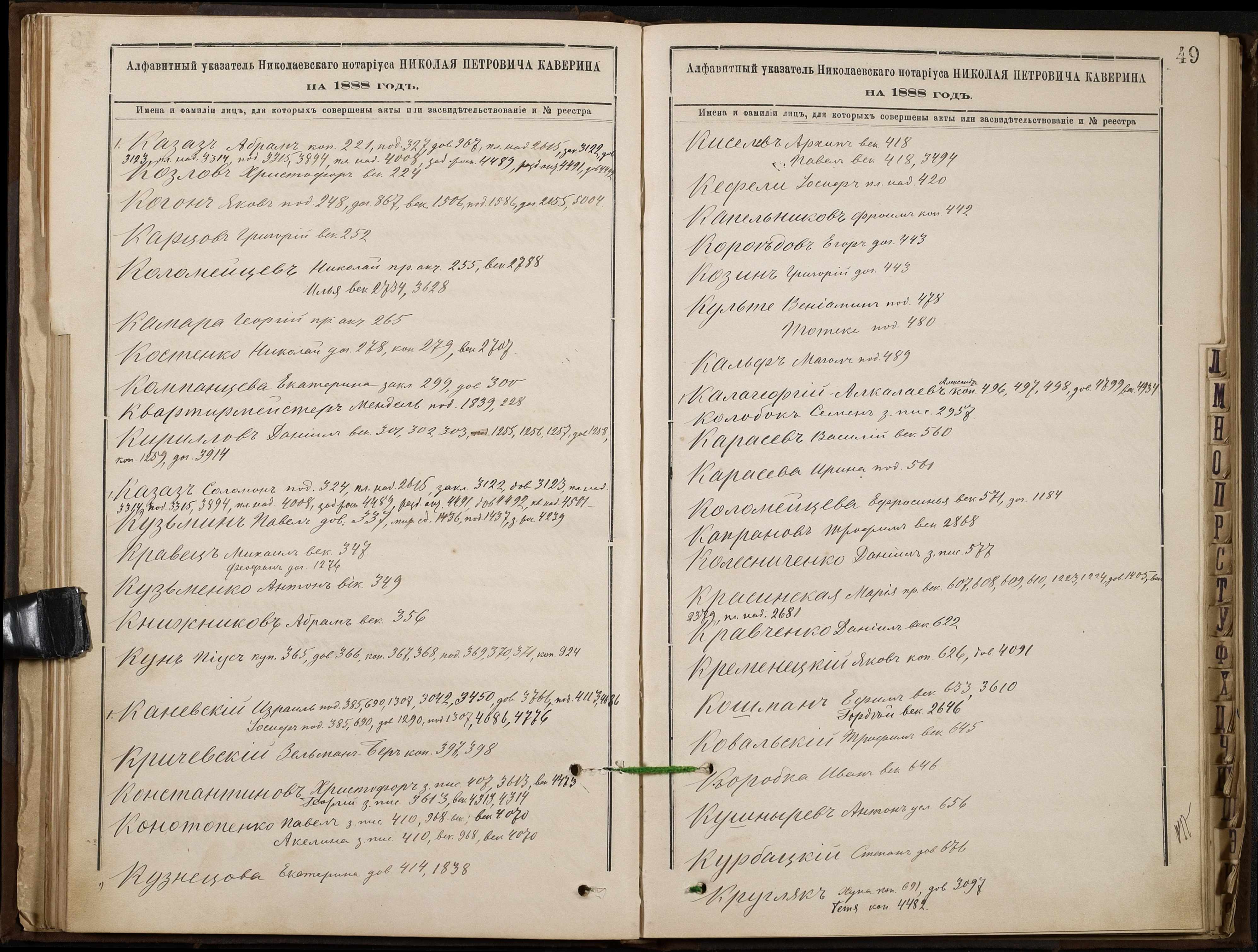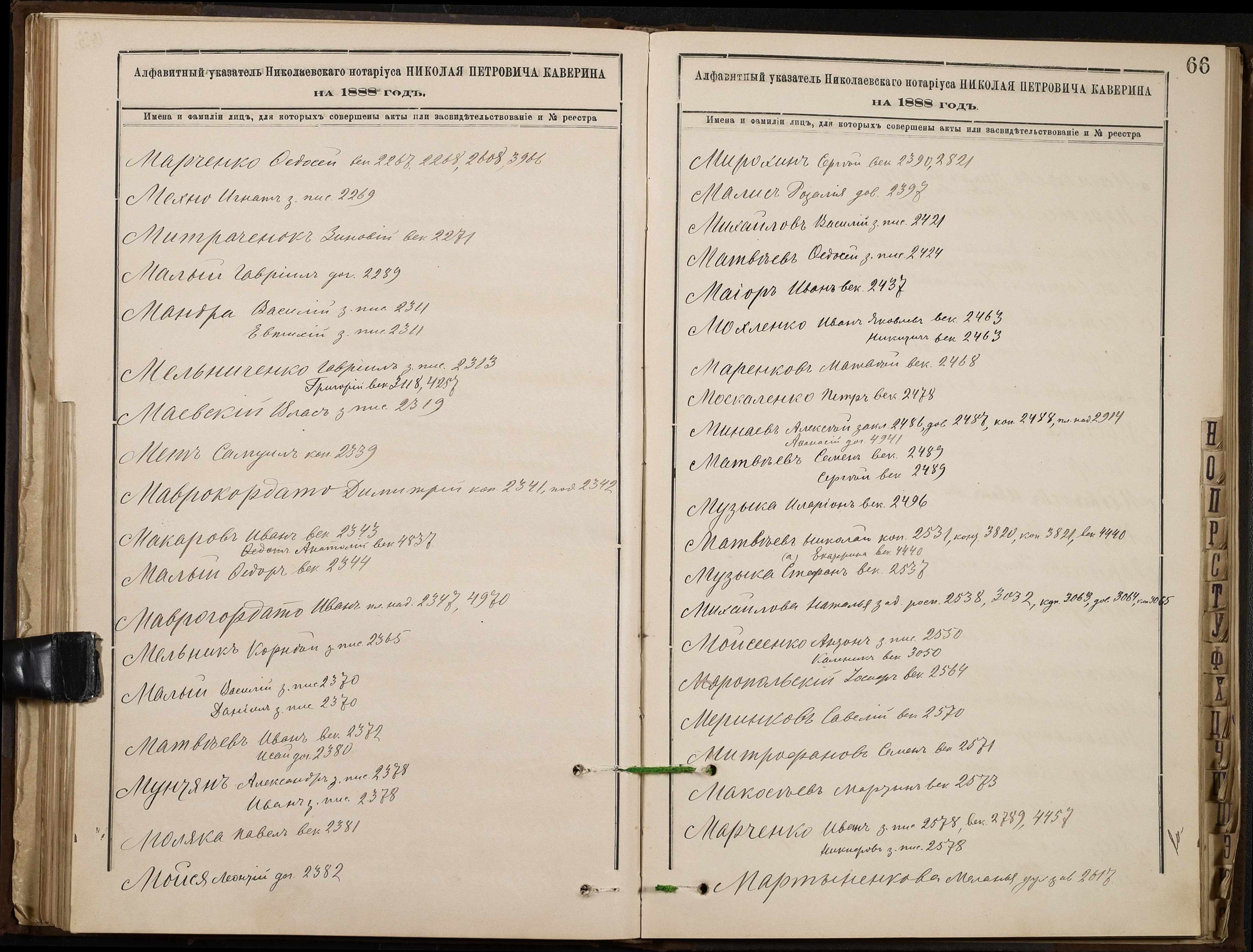 • • • • Справа № 46 “Алфавітна книга за 1888 рік”