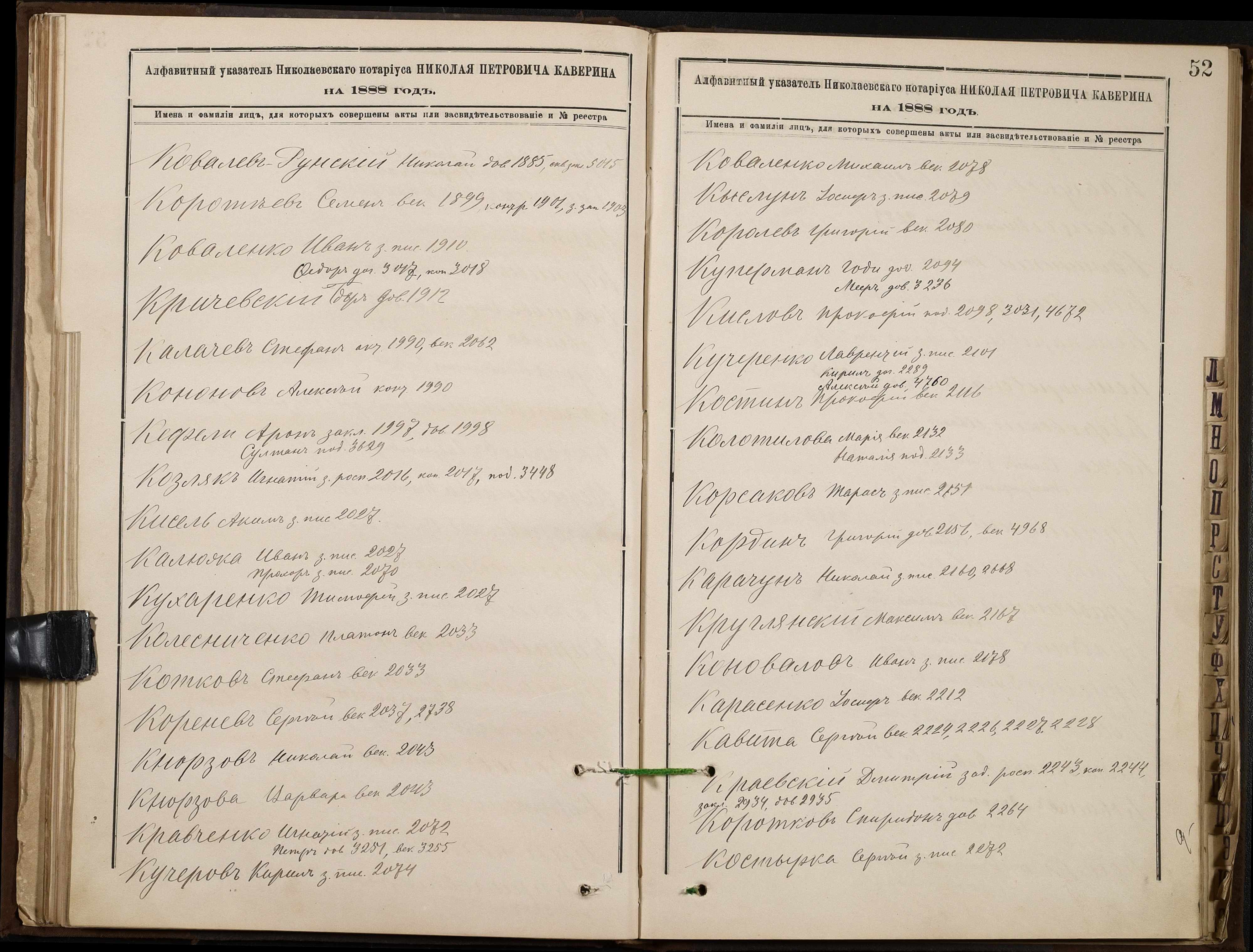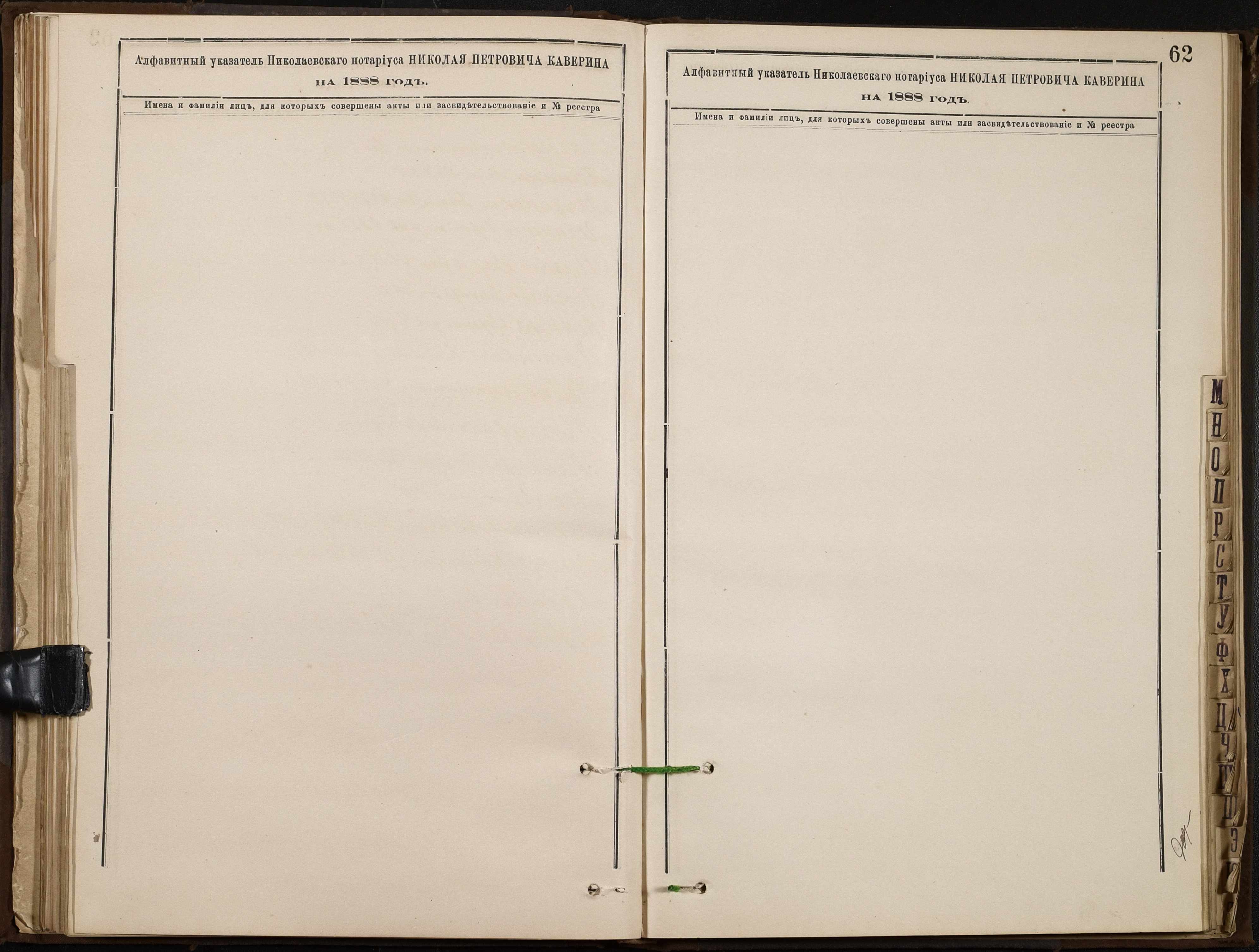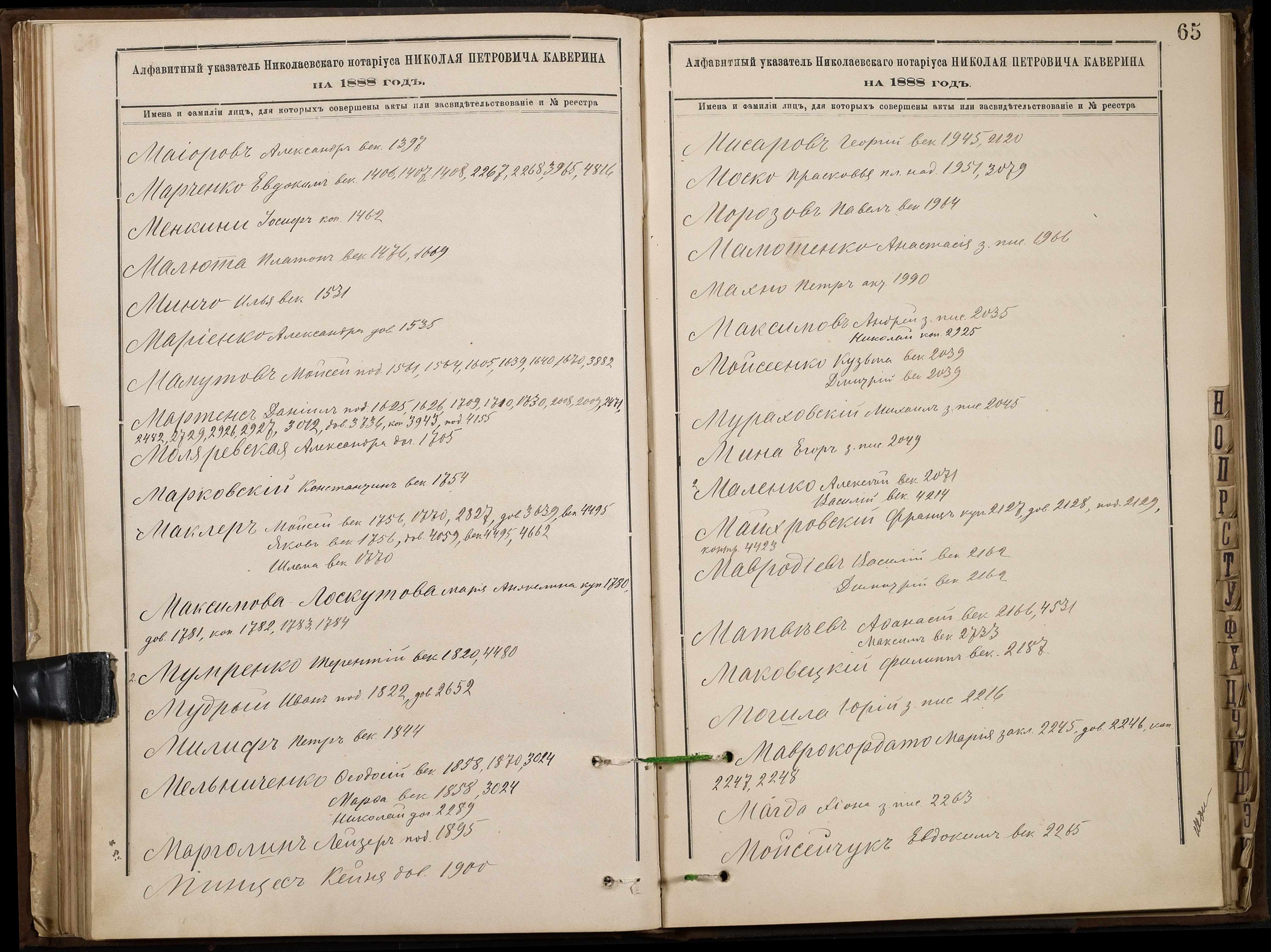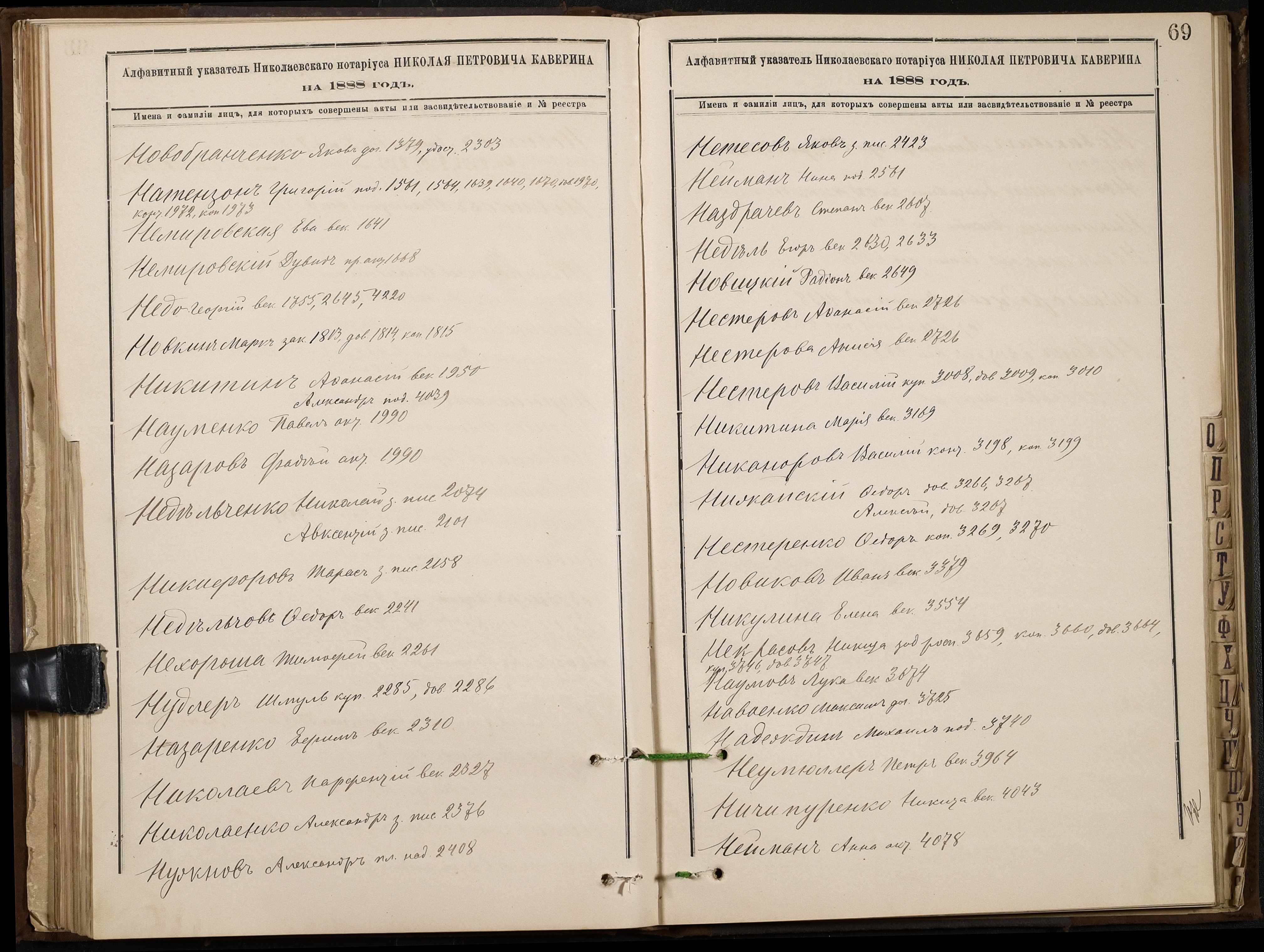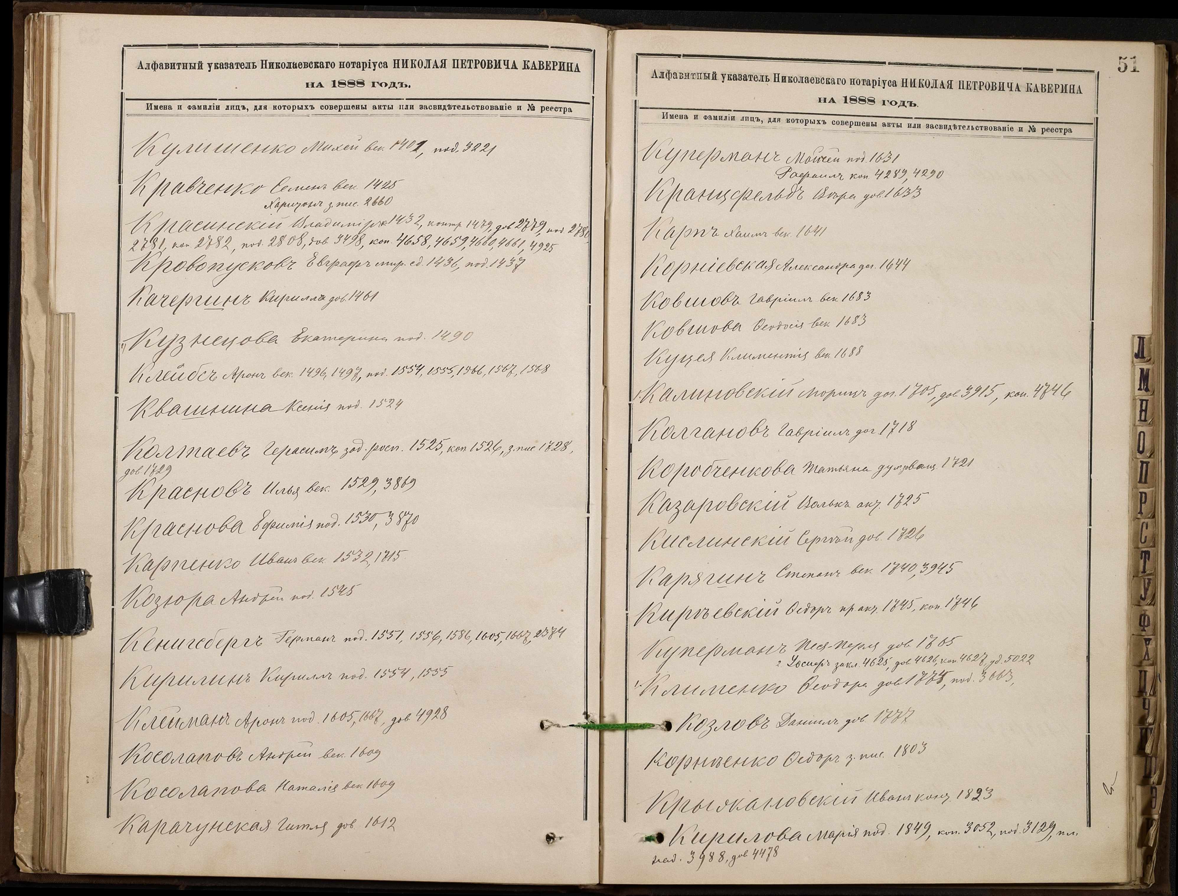 • • • • Справа № 46 “Алфавітна книга за 1888 рік”