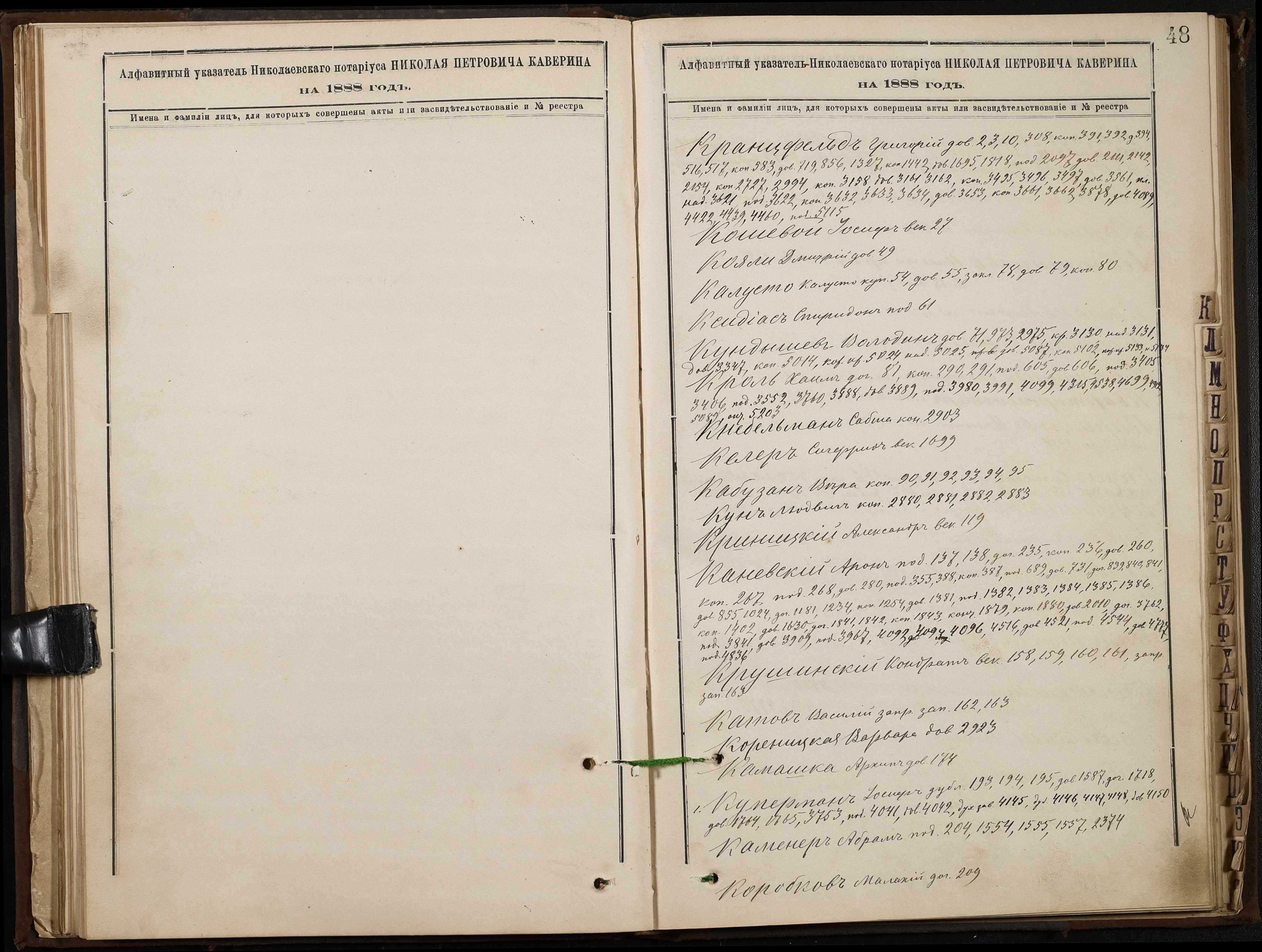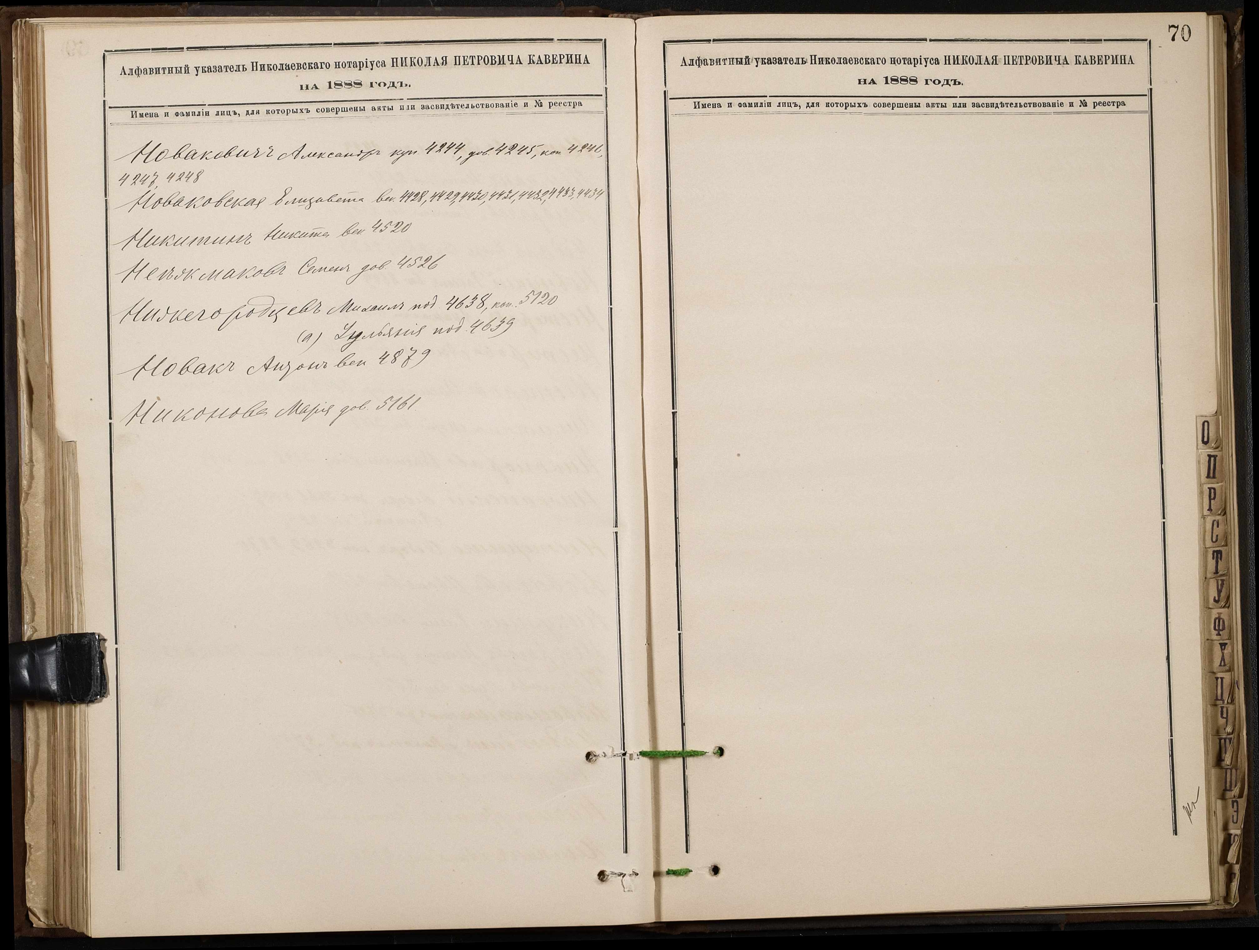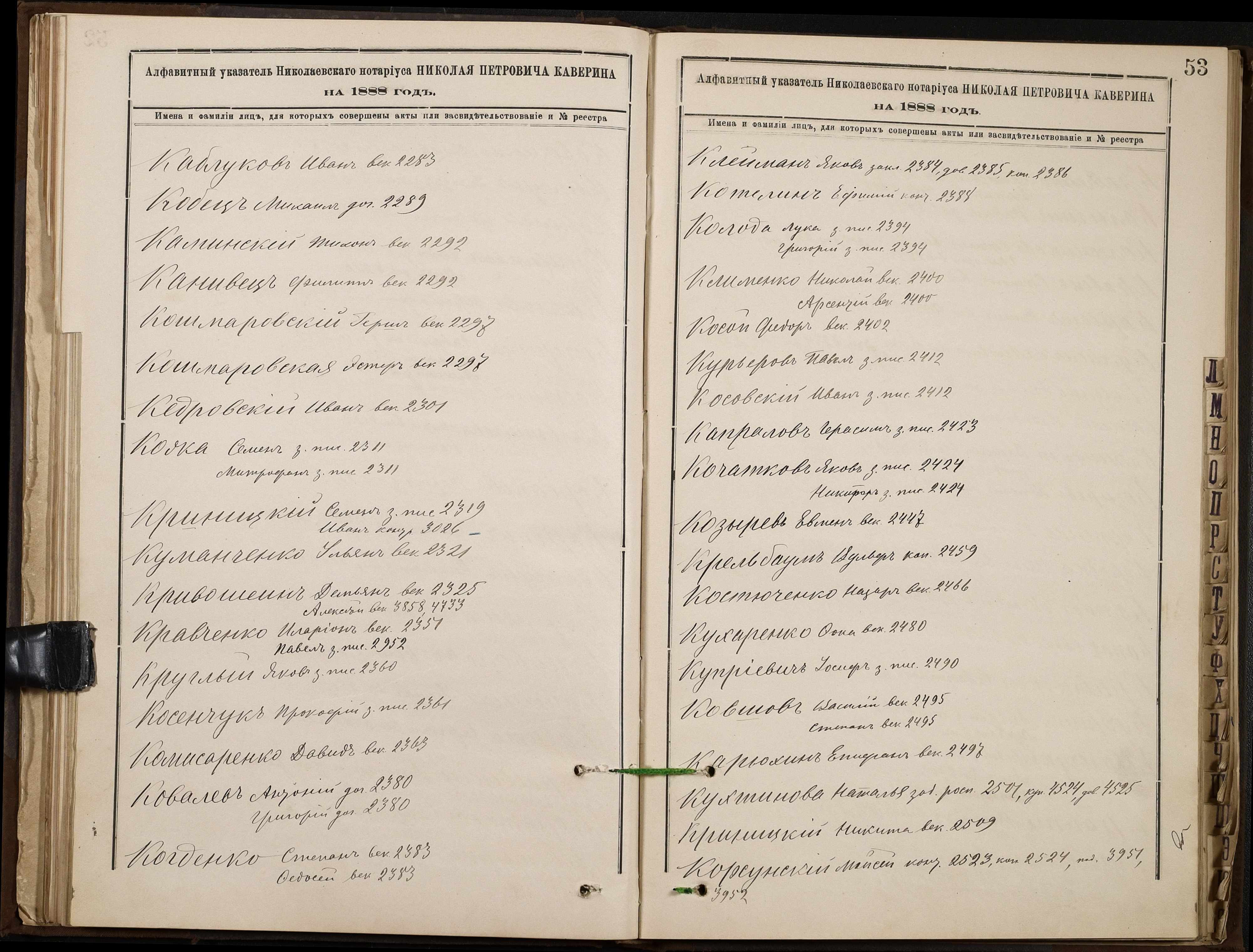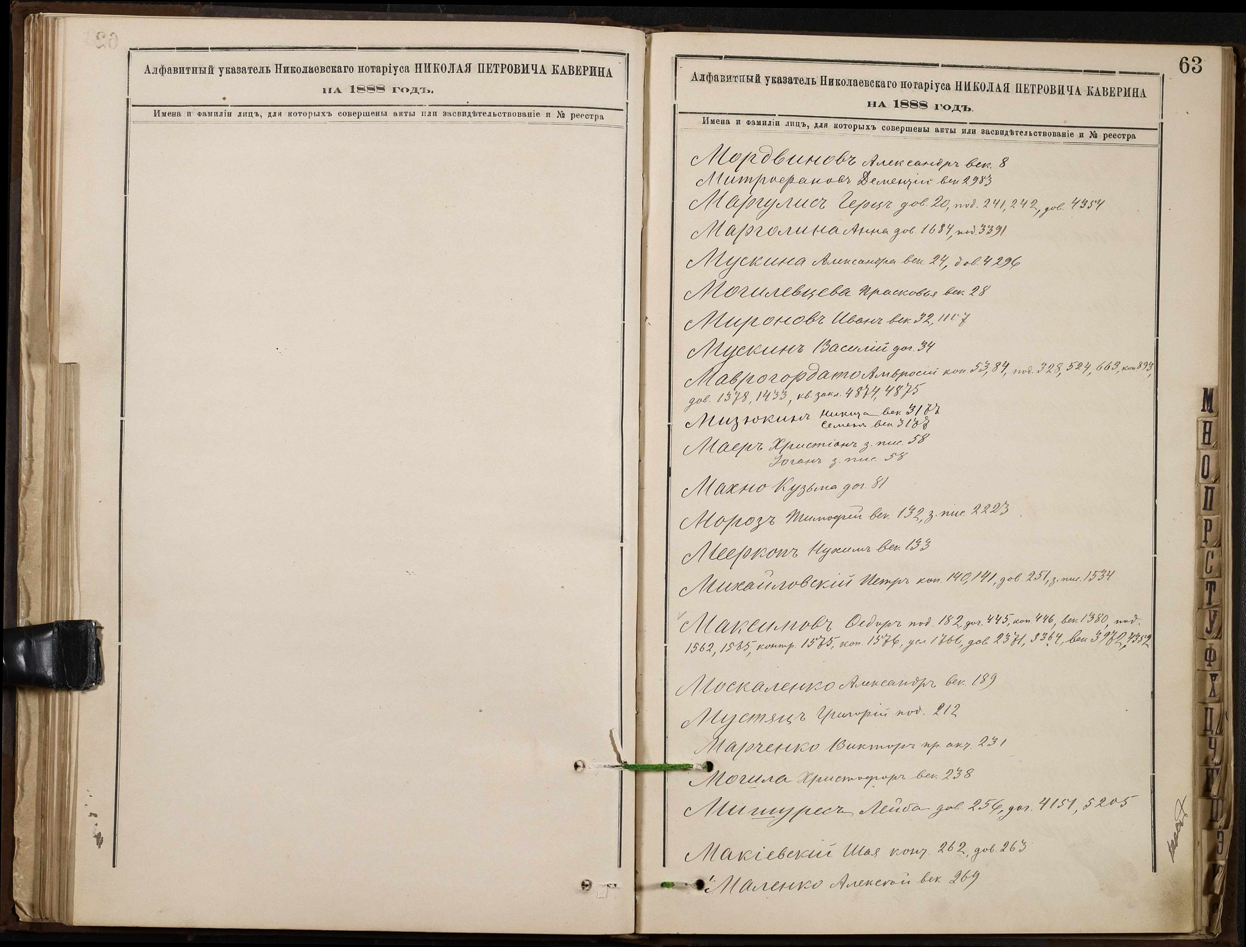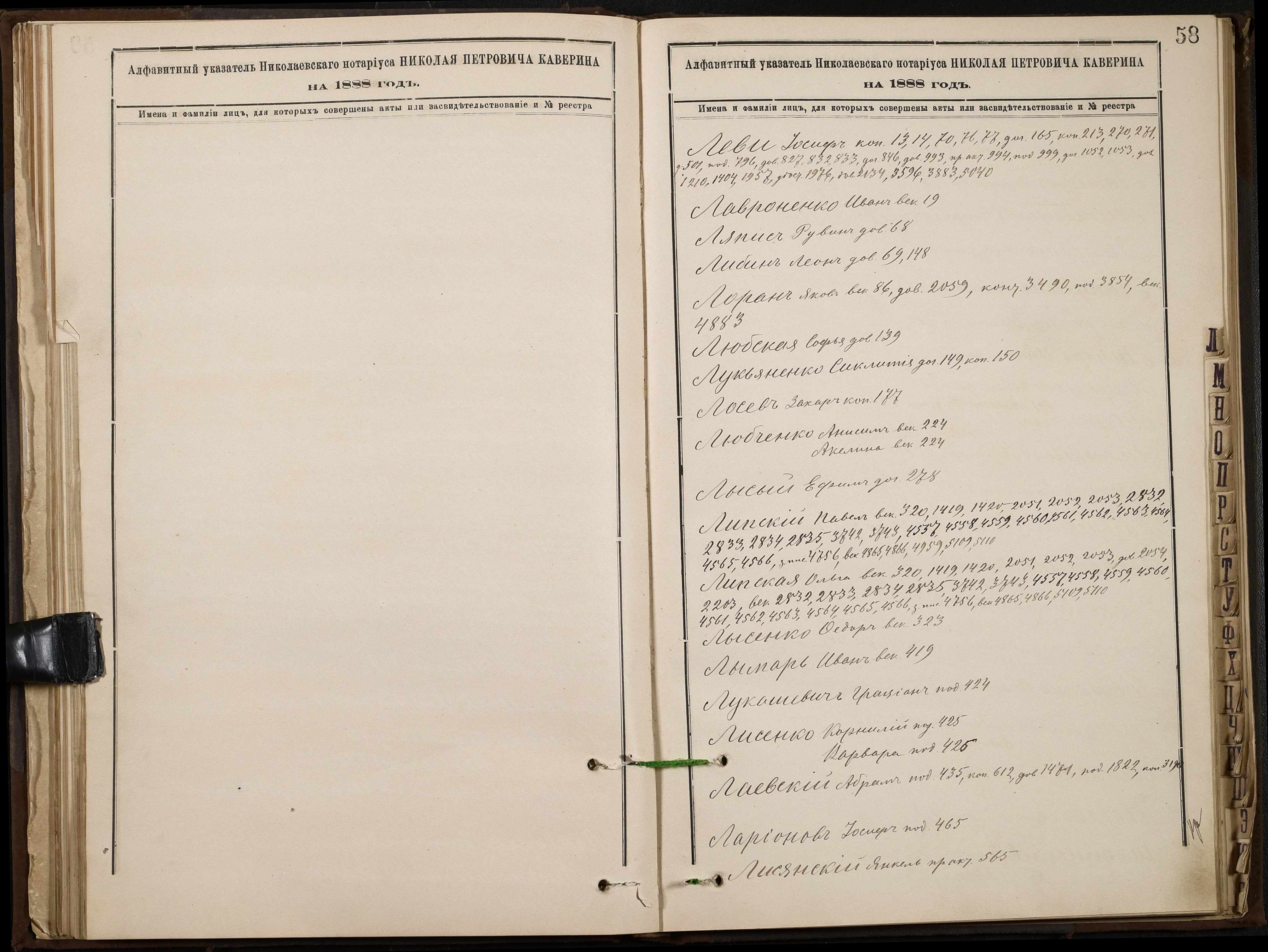 • • • • Справа № 46 “Алфавітна книга за 1888 рік”
