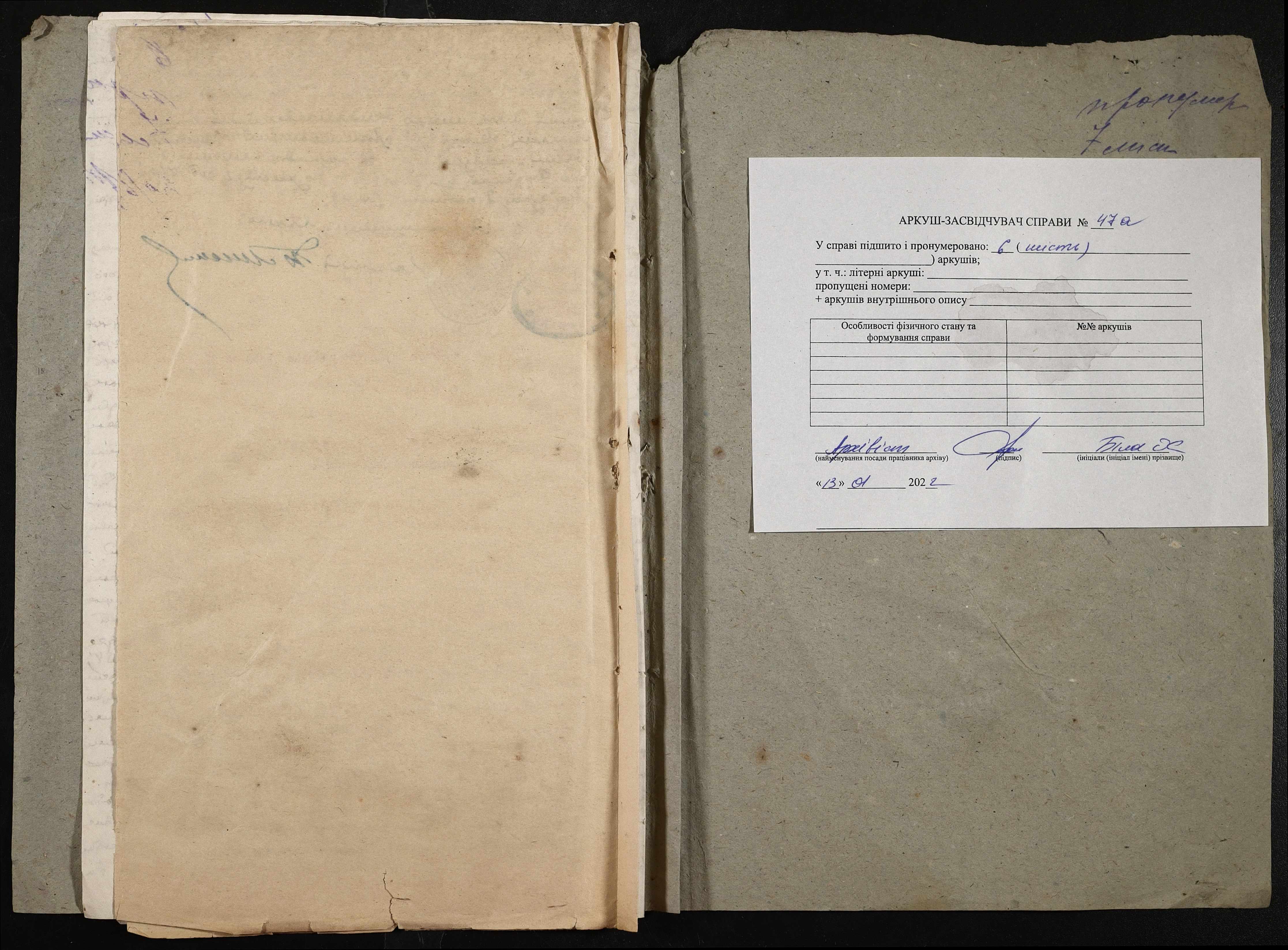 • • • • Справа № 47а “Копія акту на розподіл нерухомого майна між Фельдманом Абрамом Кельмановичем (Фельдманом Абрамом Кельмановичем) і Марголіною Ганною Кельманівною (Марголиной Анной Кельмановной)”