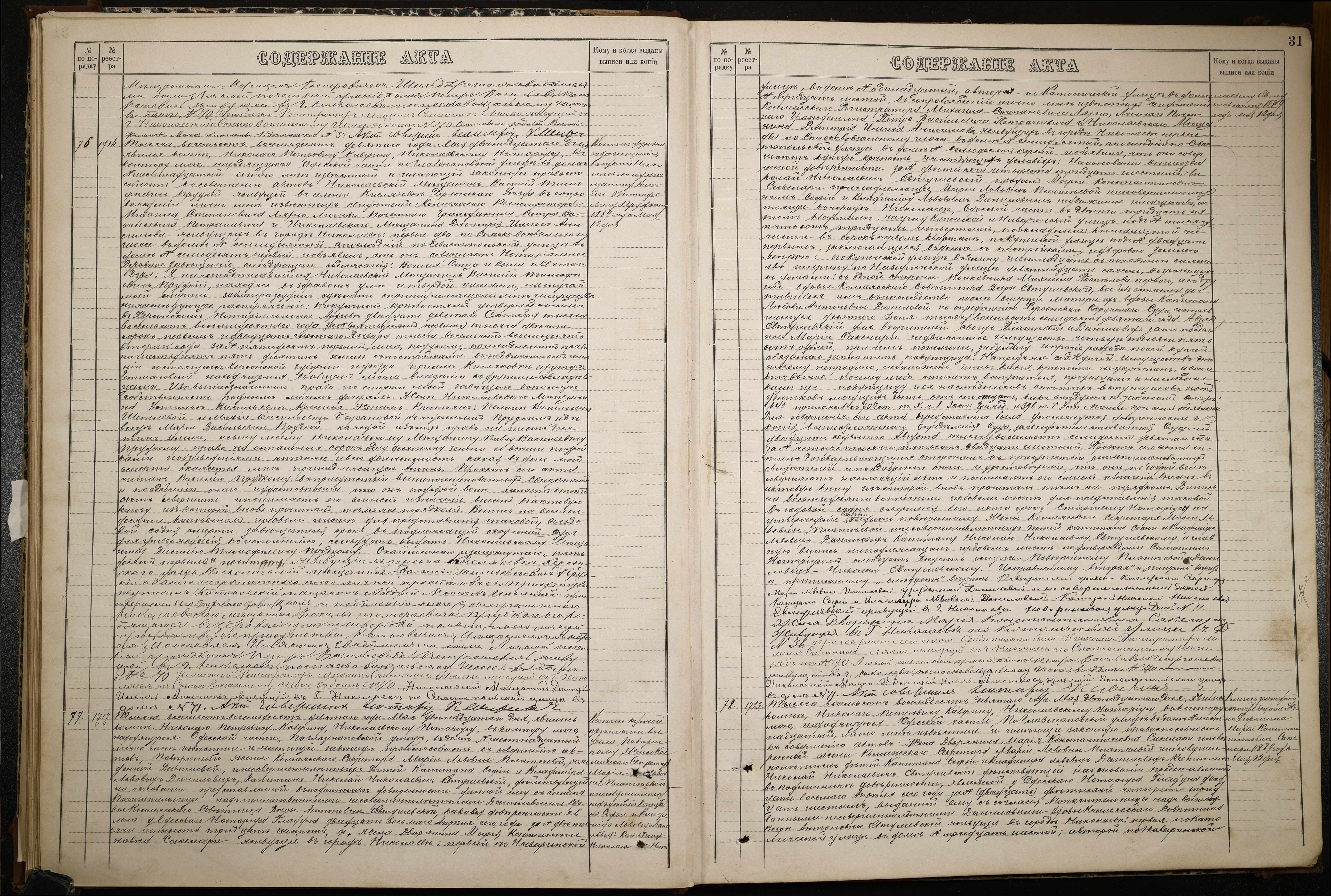 ◦ ◦ ◦ Опис № 1 справ постійного зберігання за 1873–1892 роки