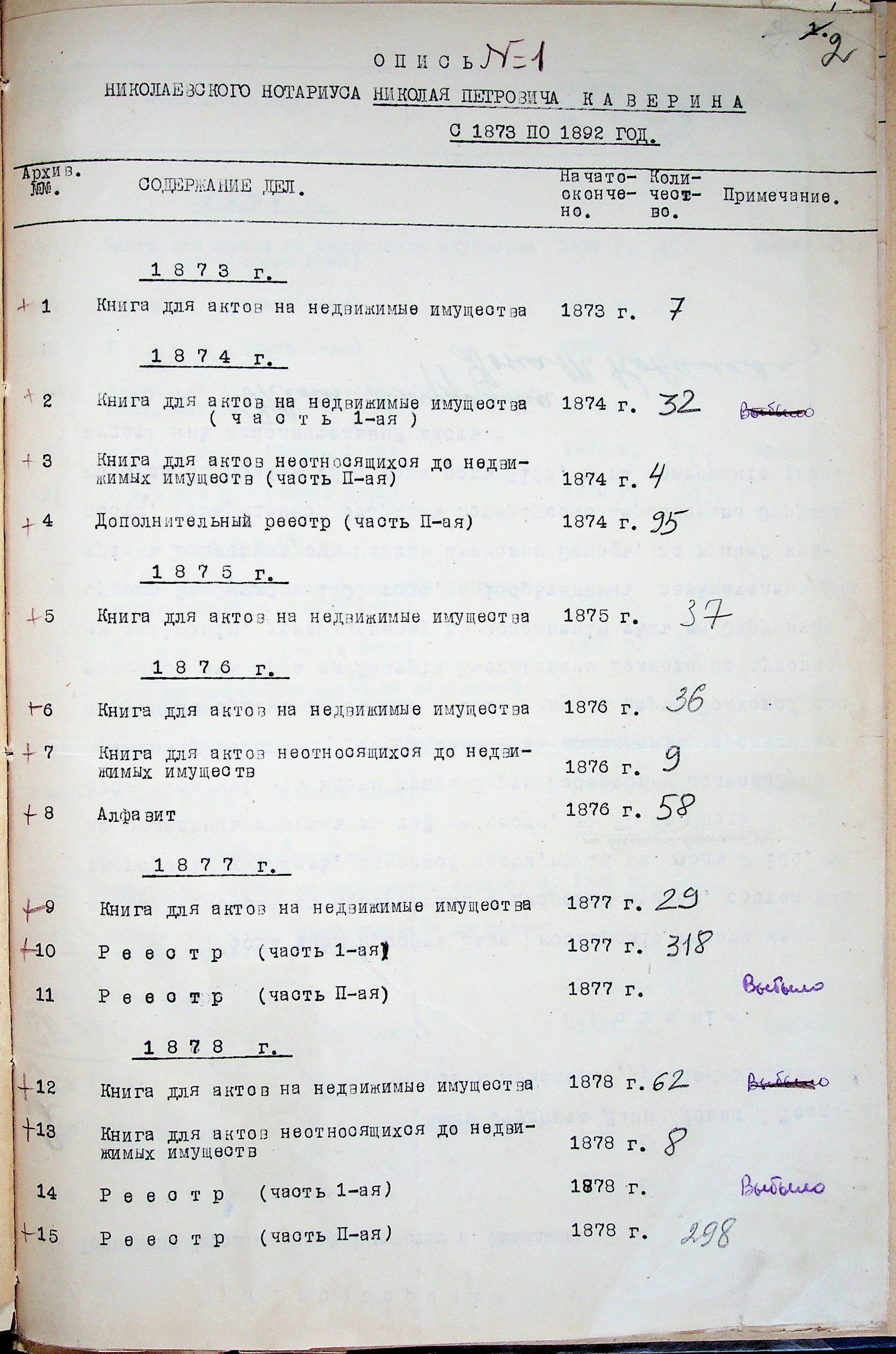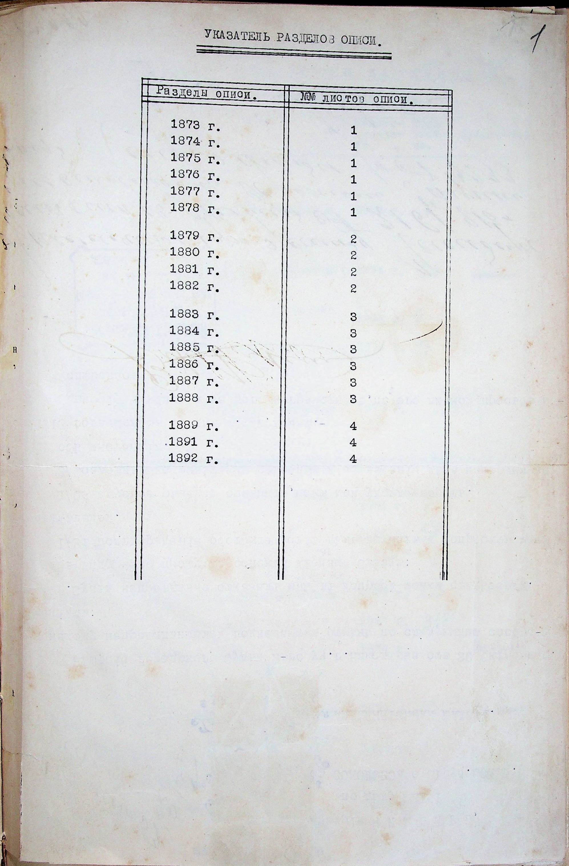 ◦ ◦ ◦ Опис № 1 справ постійного зберігання за 1873–1892 роки