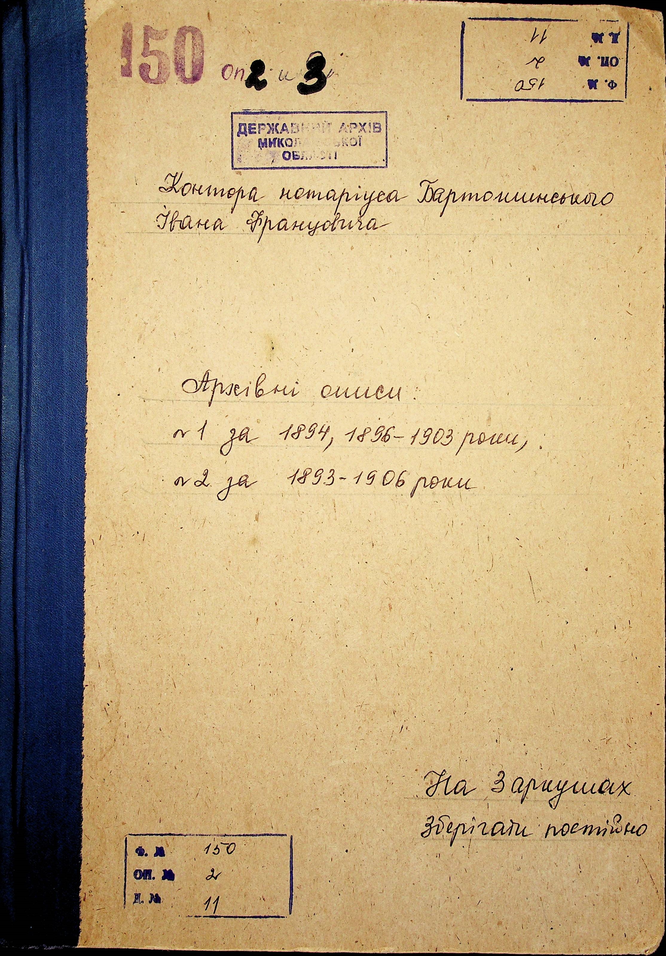 ◦ ◦ Фонд № 150 “Контора нотаріуса Бартошинського Івана Францовича”