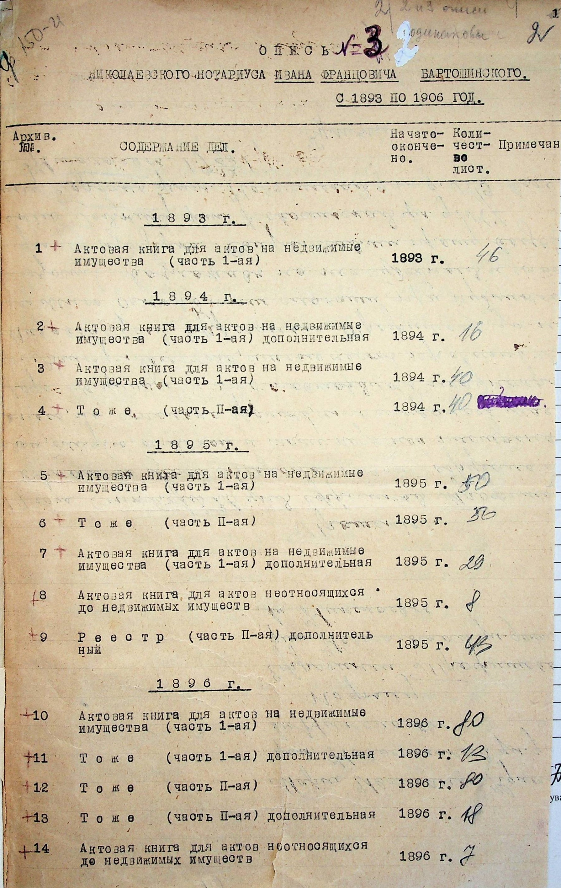 • • • • Справа № 11 “Архівні описи № 2 за 1894, 1896–1908 роки, № 3 за 1893-1906 роки”
