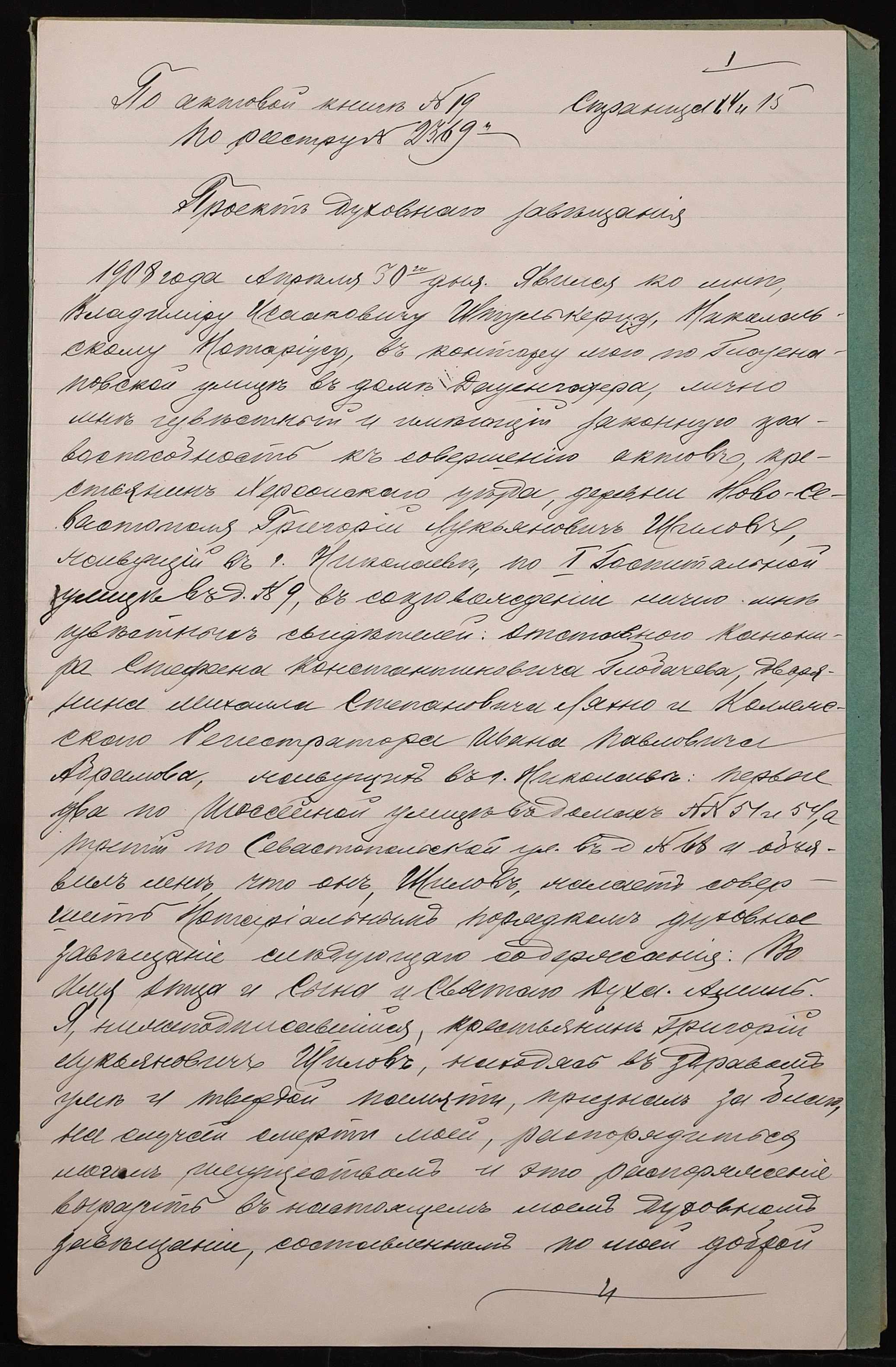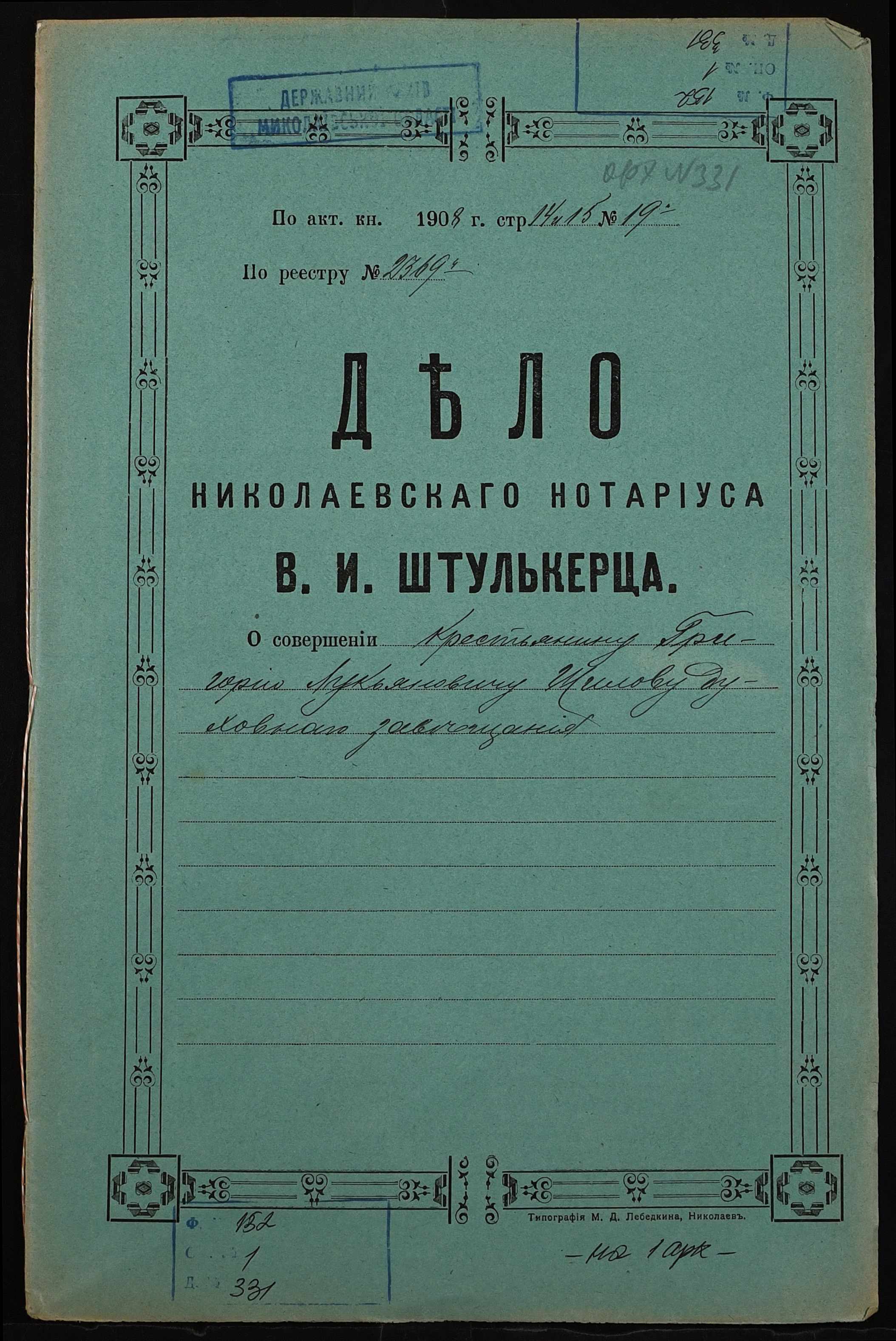• • • • Справа № 331 “Проєкт духівниці селянина Шилова Григорія Лук’яновича (Шилова Григория Лукьяновича)”