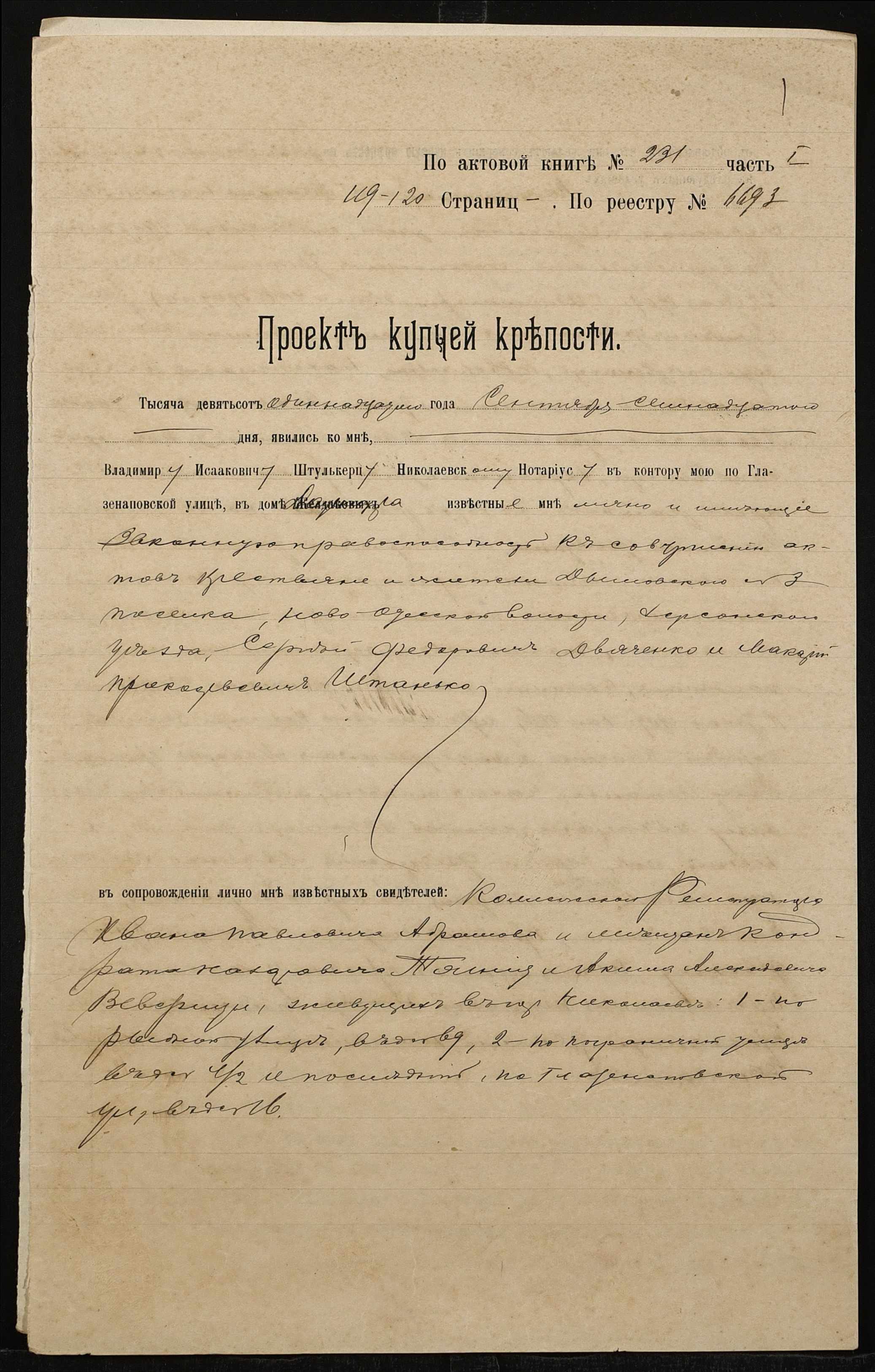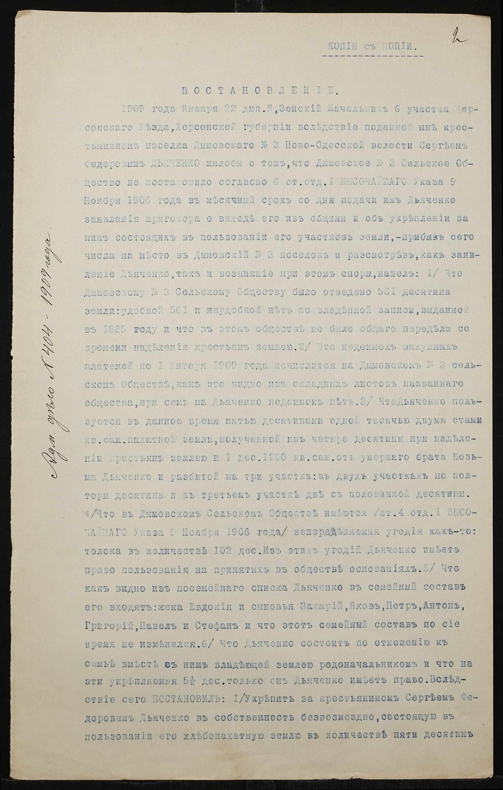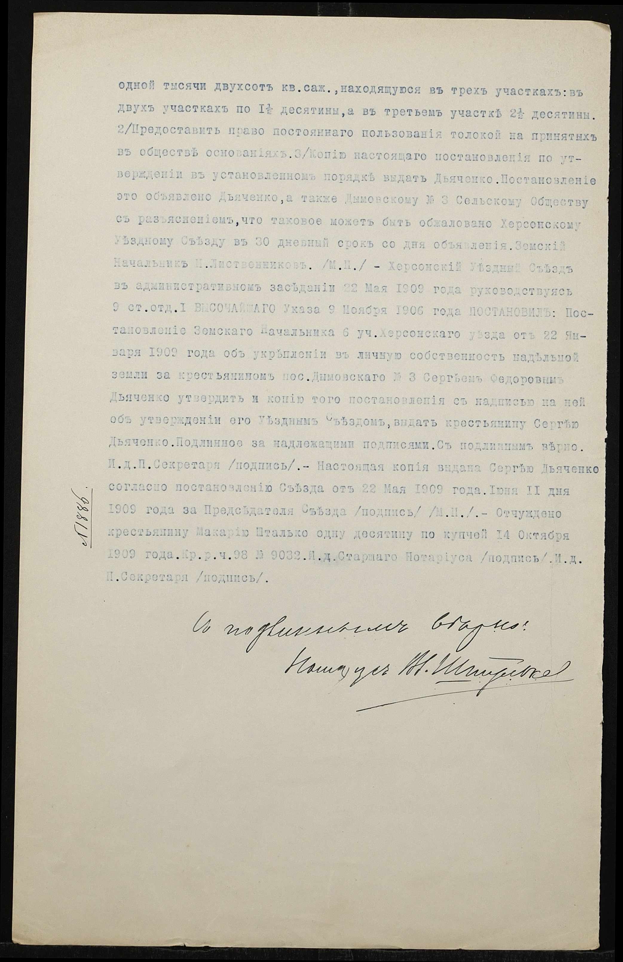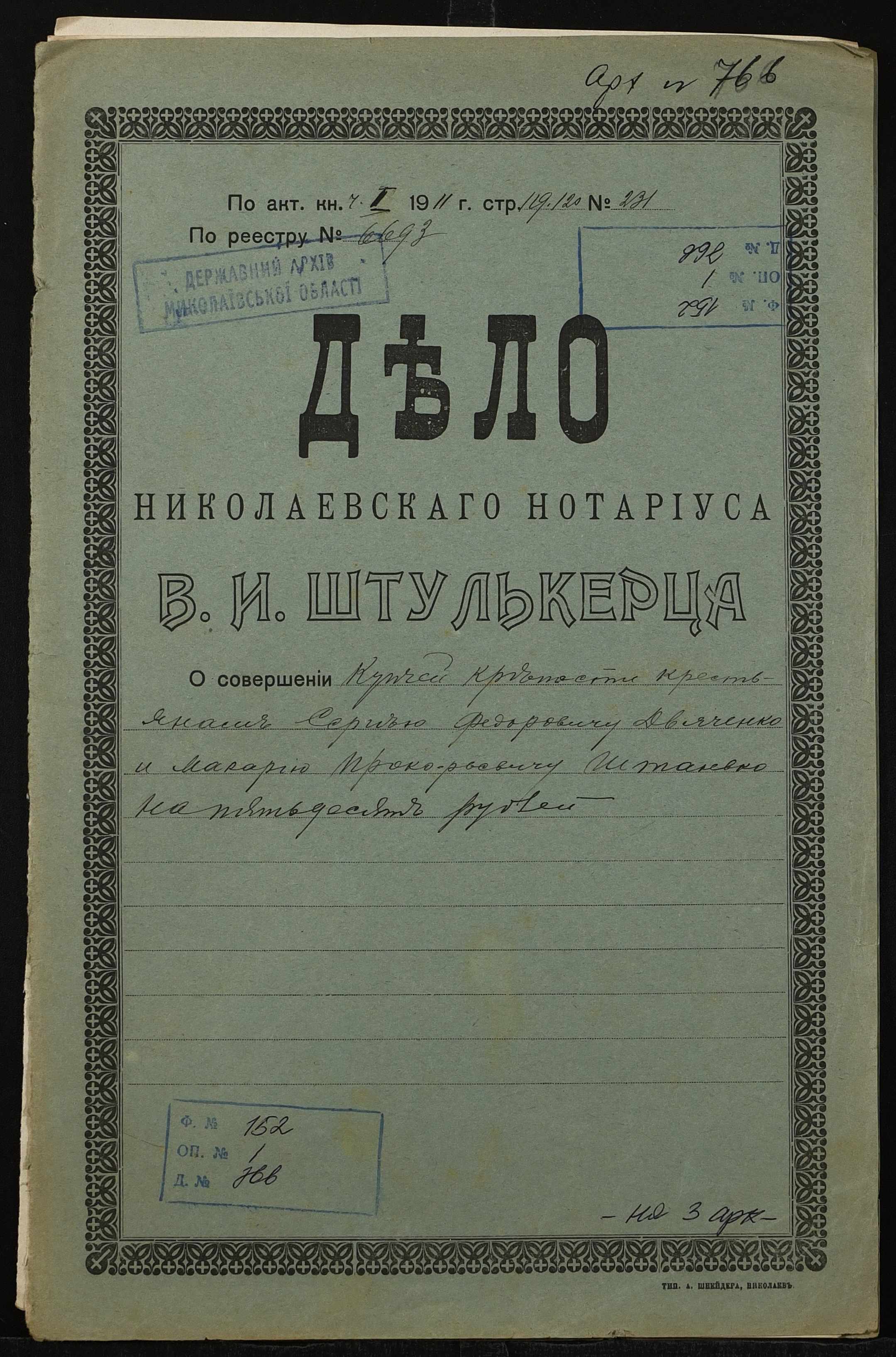 • • • • Справа № 766 “Справа про вчинення купчої про продаж нерухомого майна селянином Дьяченком Сергієм Федоровичем (Дьяченко Сергеем Федоровичем) на користь Штанька Макара Прокоповича (Штанько Макара Прокофьевича)”