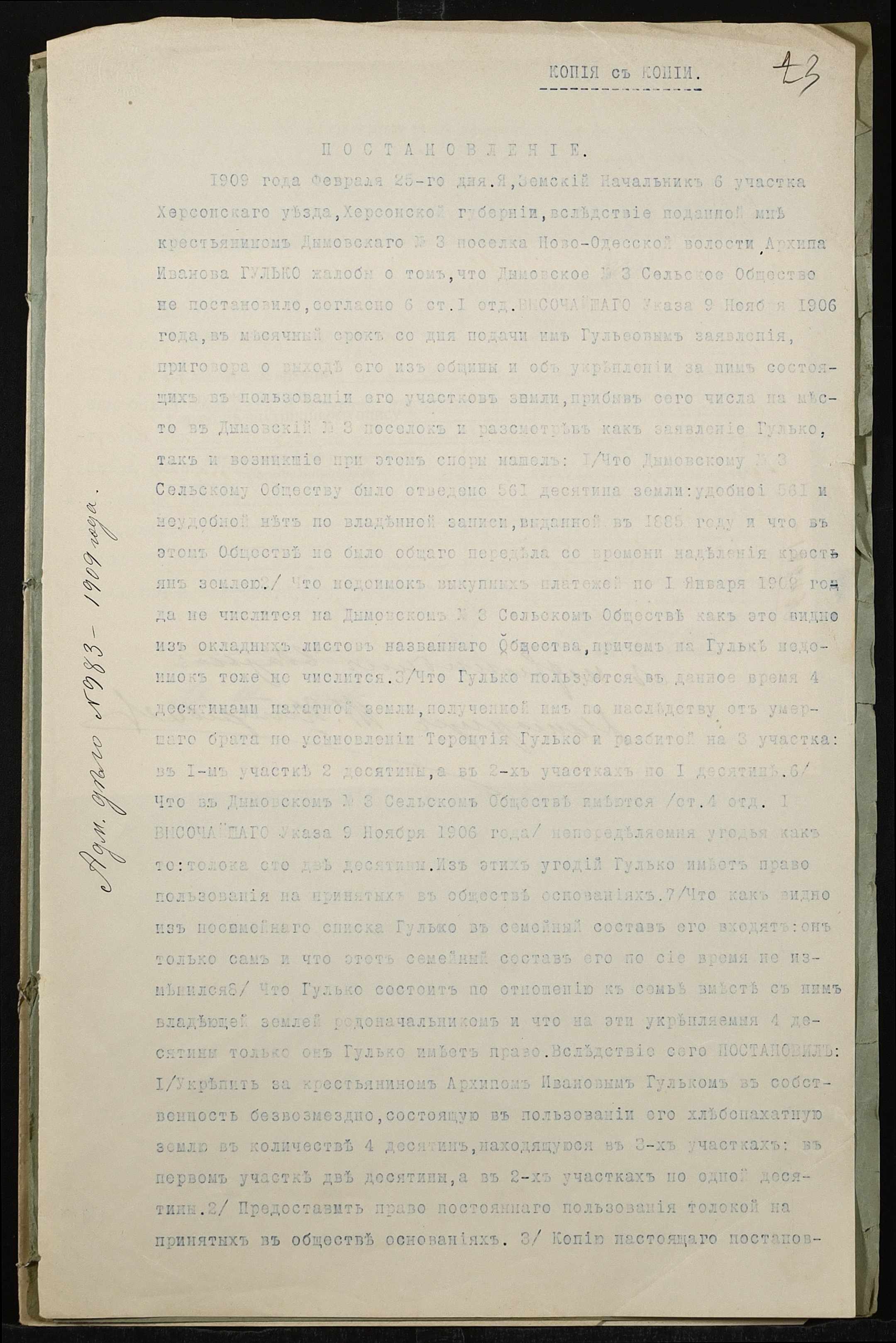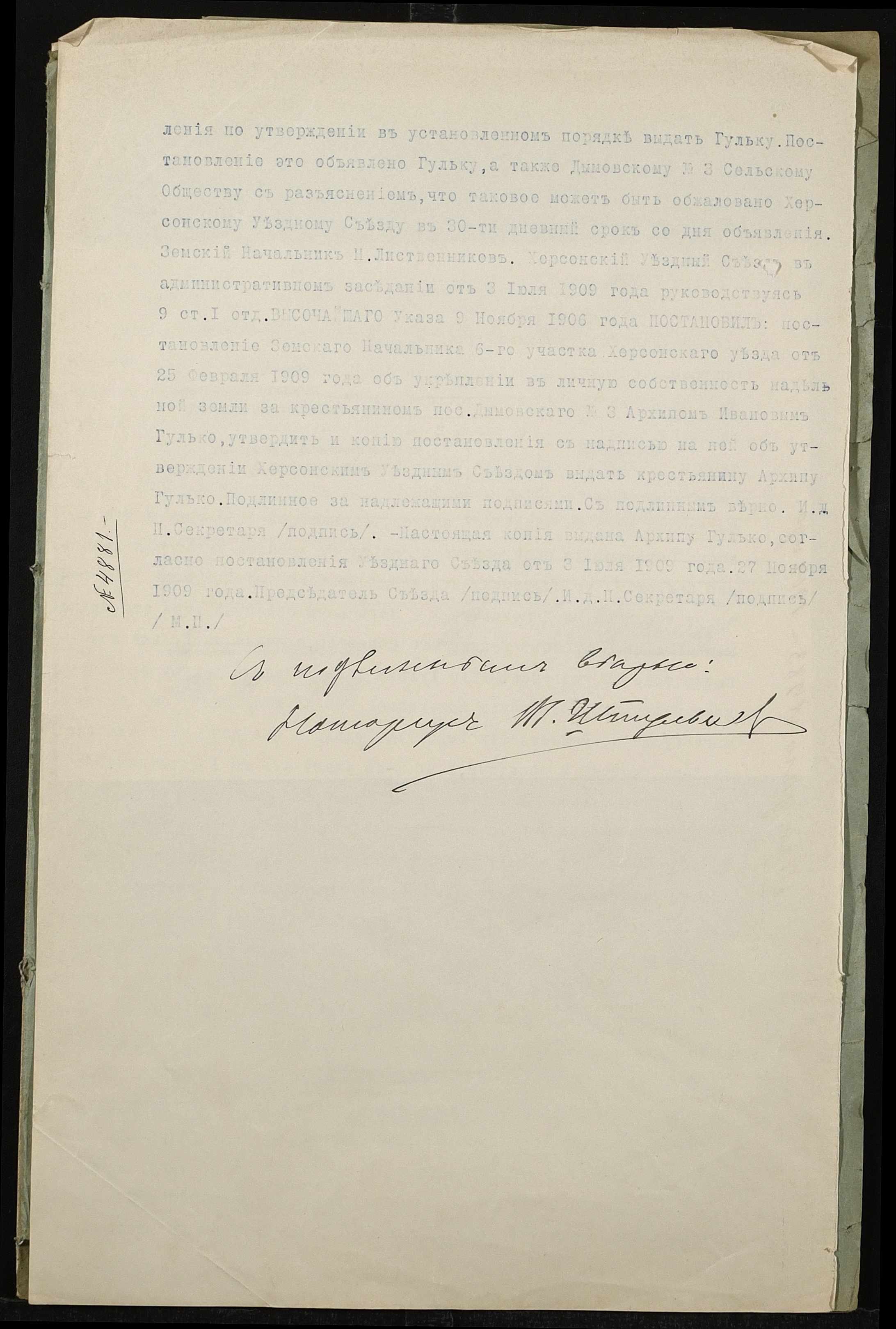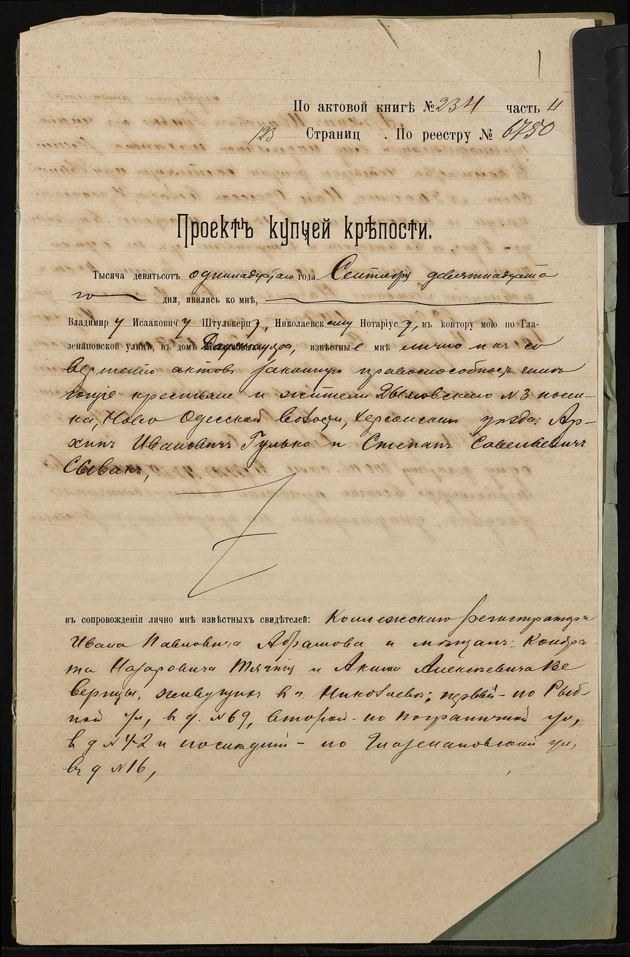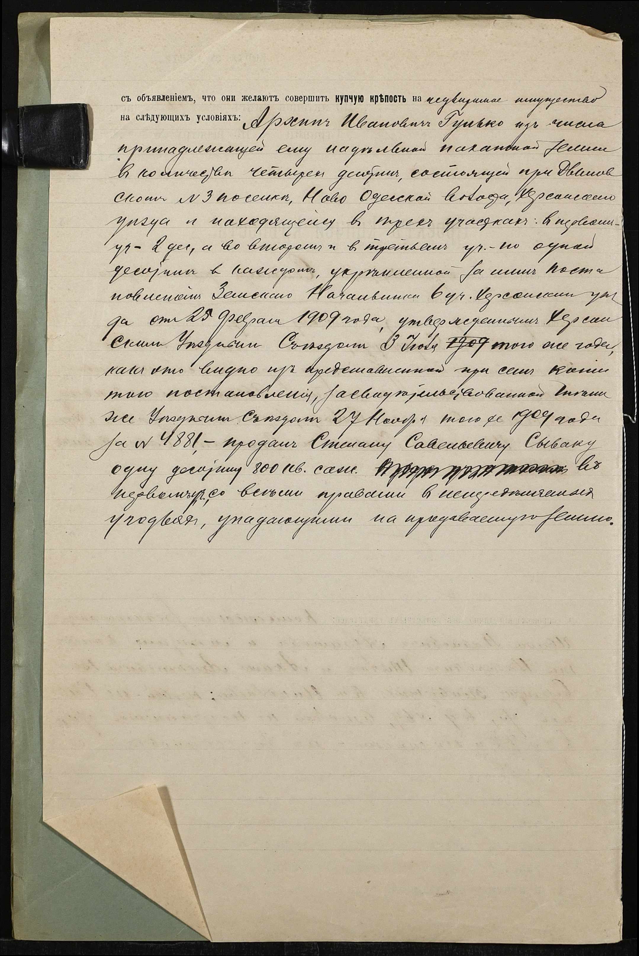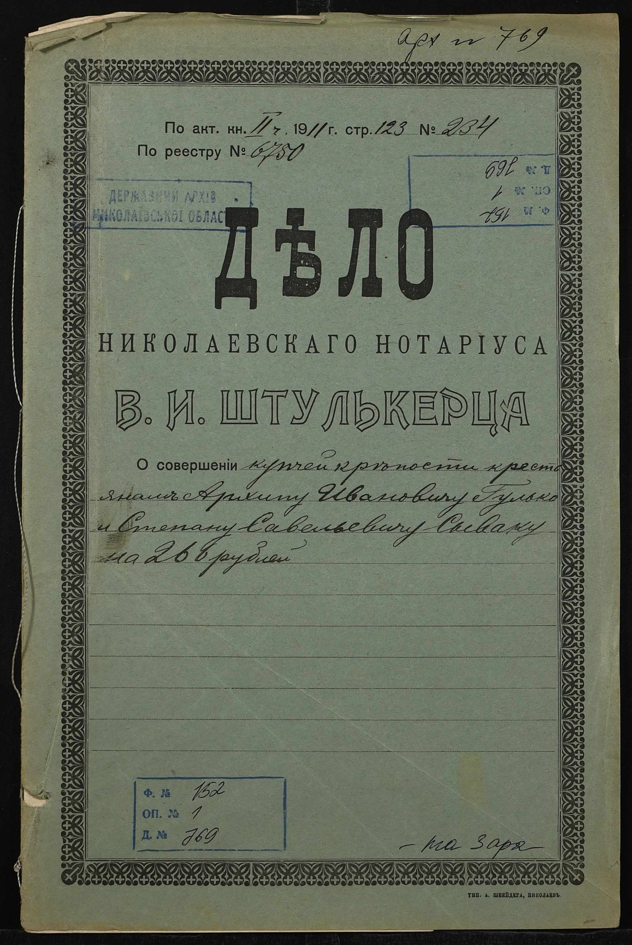 • • • • Справа № 769 “Справа про вчинення купчої про продаж нерухомого майна селянином Гульком Архипом Івановичем (Гулько Архипом Ивановичем) на користь Сивака Степана Савелійовича (Сивака Степана Савельевича)”