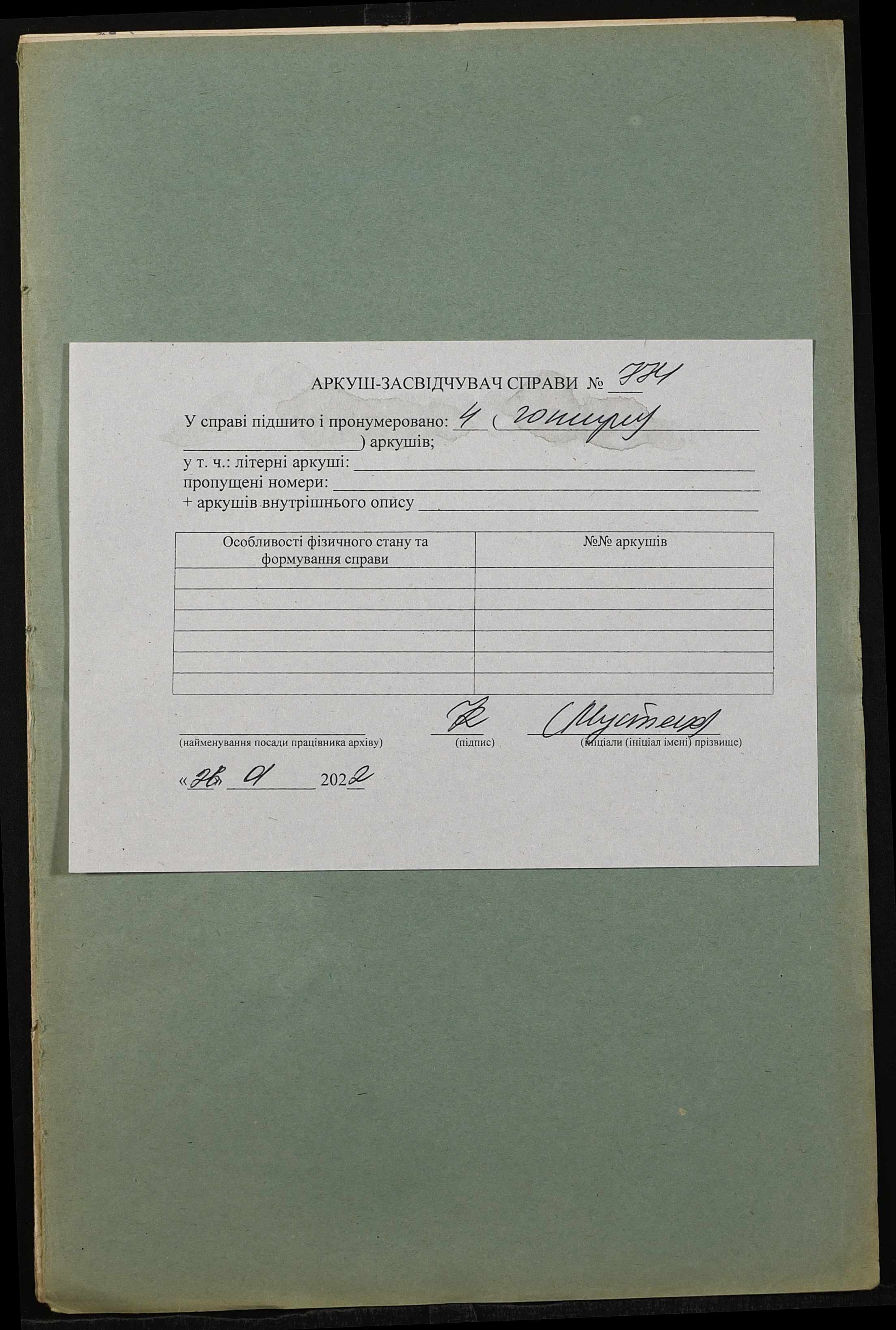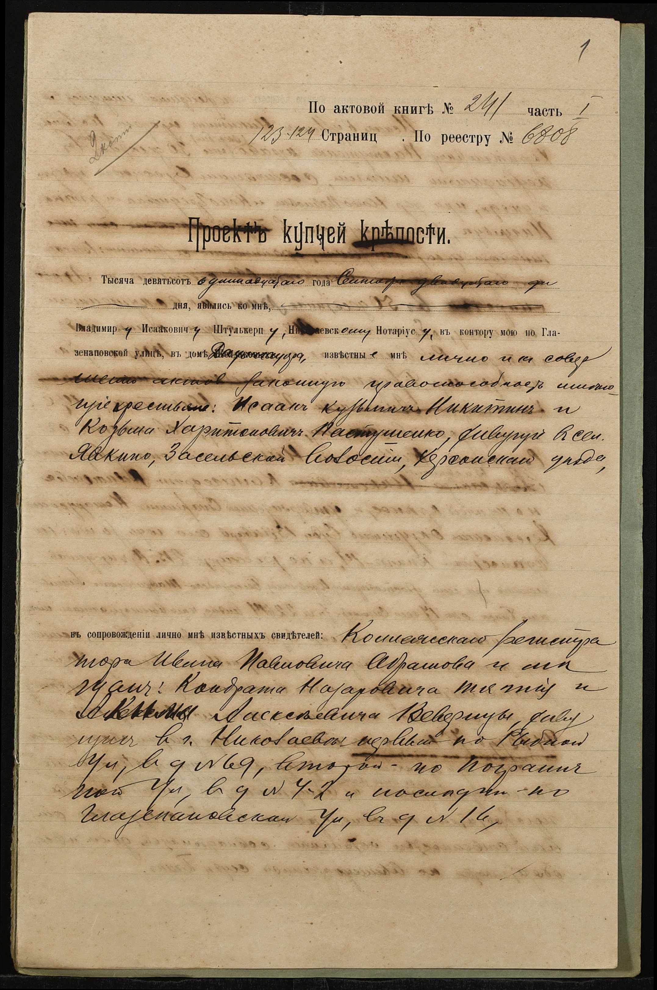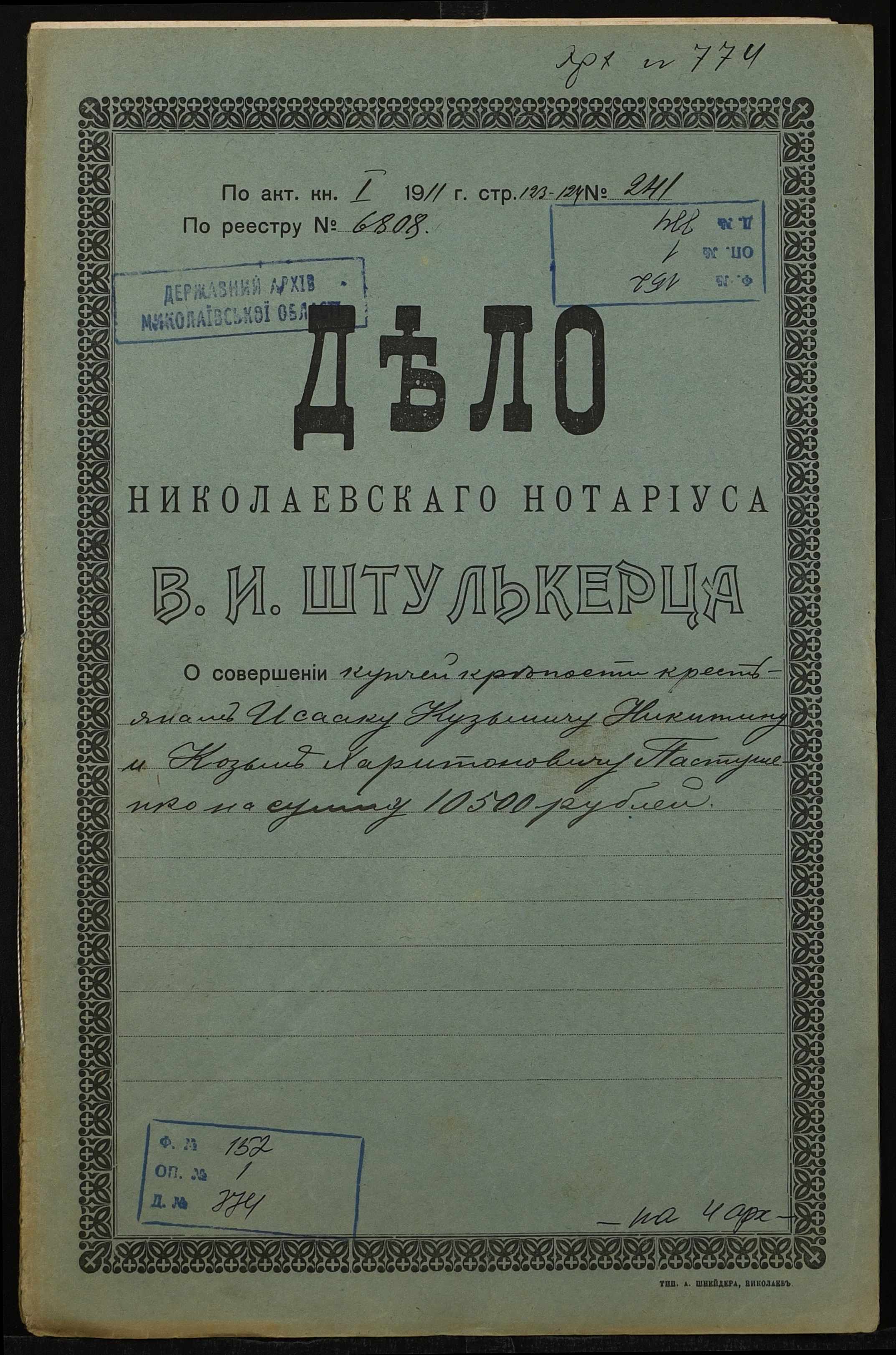 • • • • Справа № 774 “Справа про вчинення купчої про продаж нерухомого майна селянином Нікітіним Ісааком Кузьмичем (Никитиным Исааком Кузьмичем) на користь селянина Пастушенка Кузьми Харитоновича (Пастушенко Кузьмы Харитоновича)”