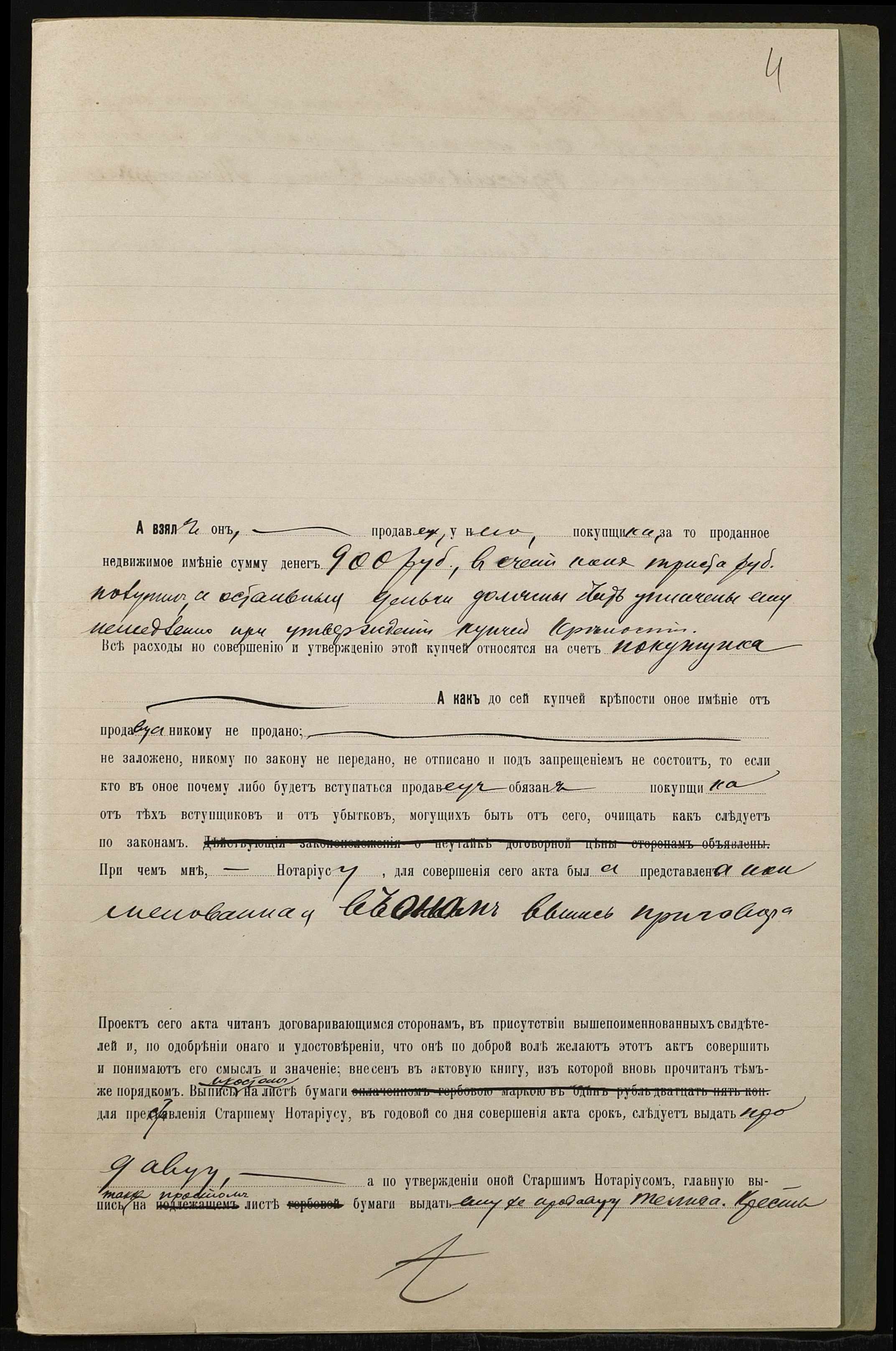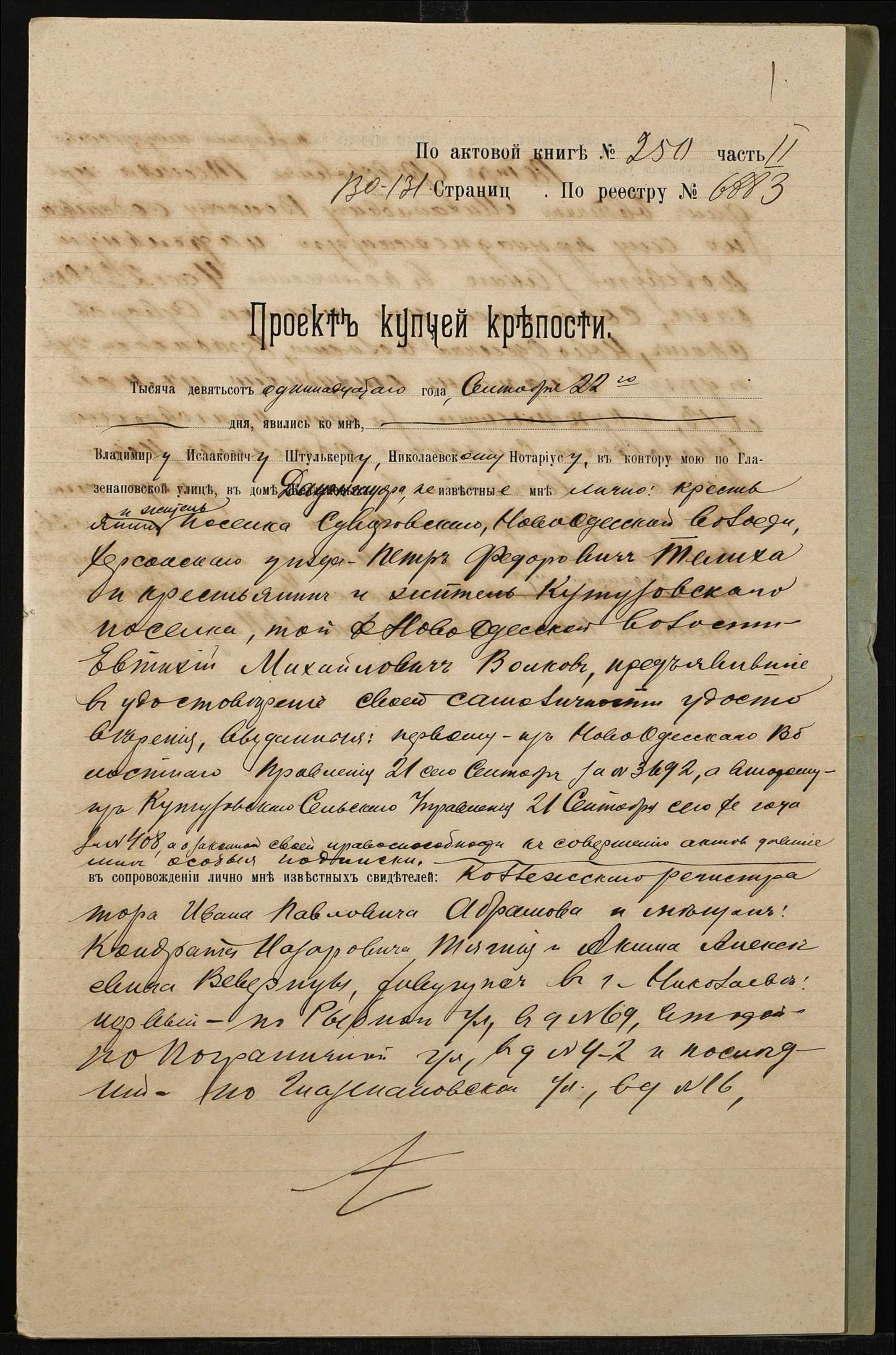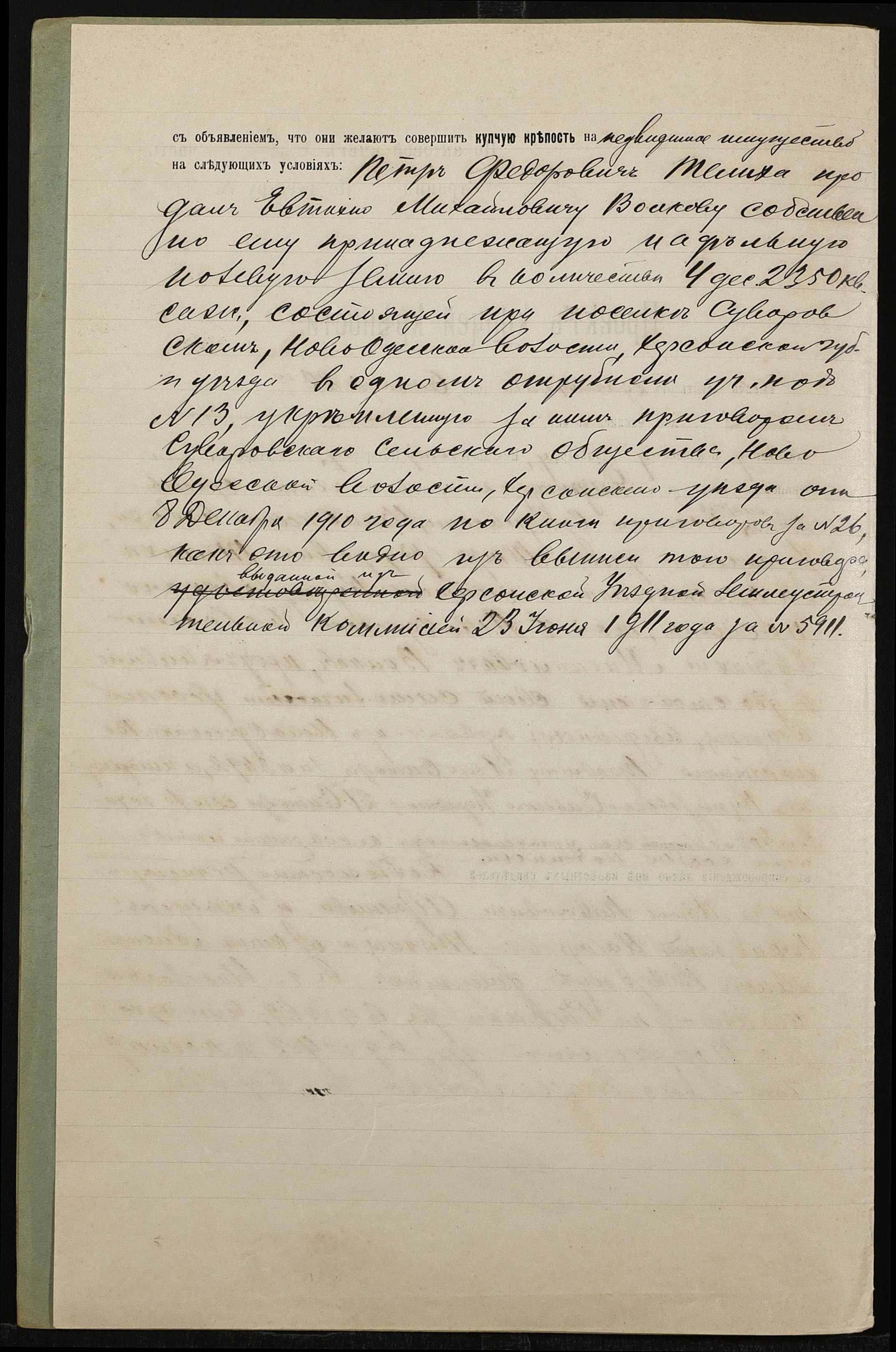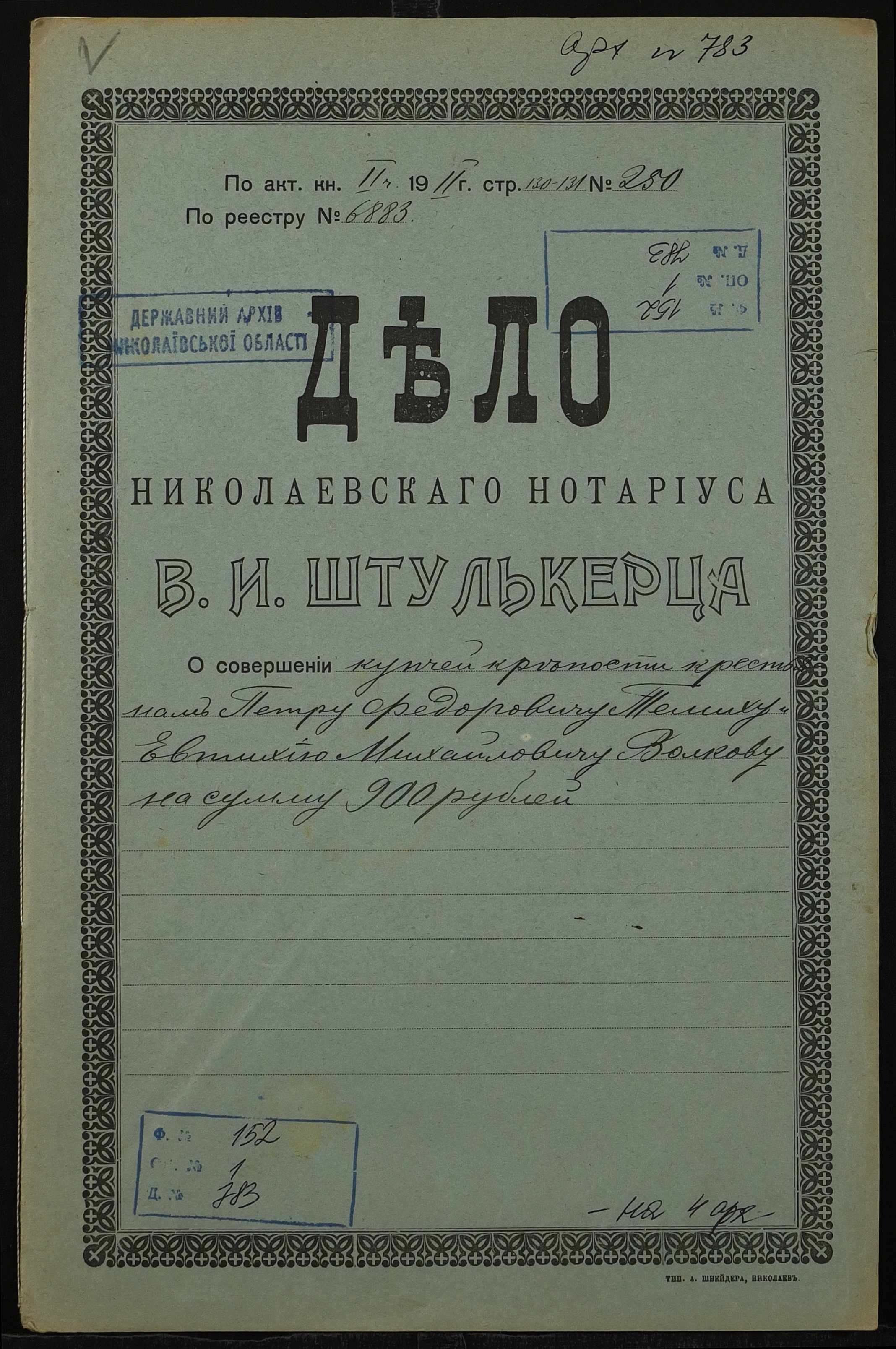 • • • • Справа № 783 “Справа про вчинення купчої про продаж нерухомого майна селянином Теміхом Петром Федоровичем (Темихом Петром Федоровичем) на користь селянина Волкова Євтихія Михайловича (Волкова Евтихия Михайловича)”
