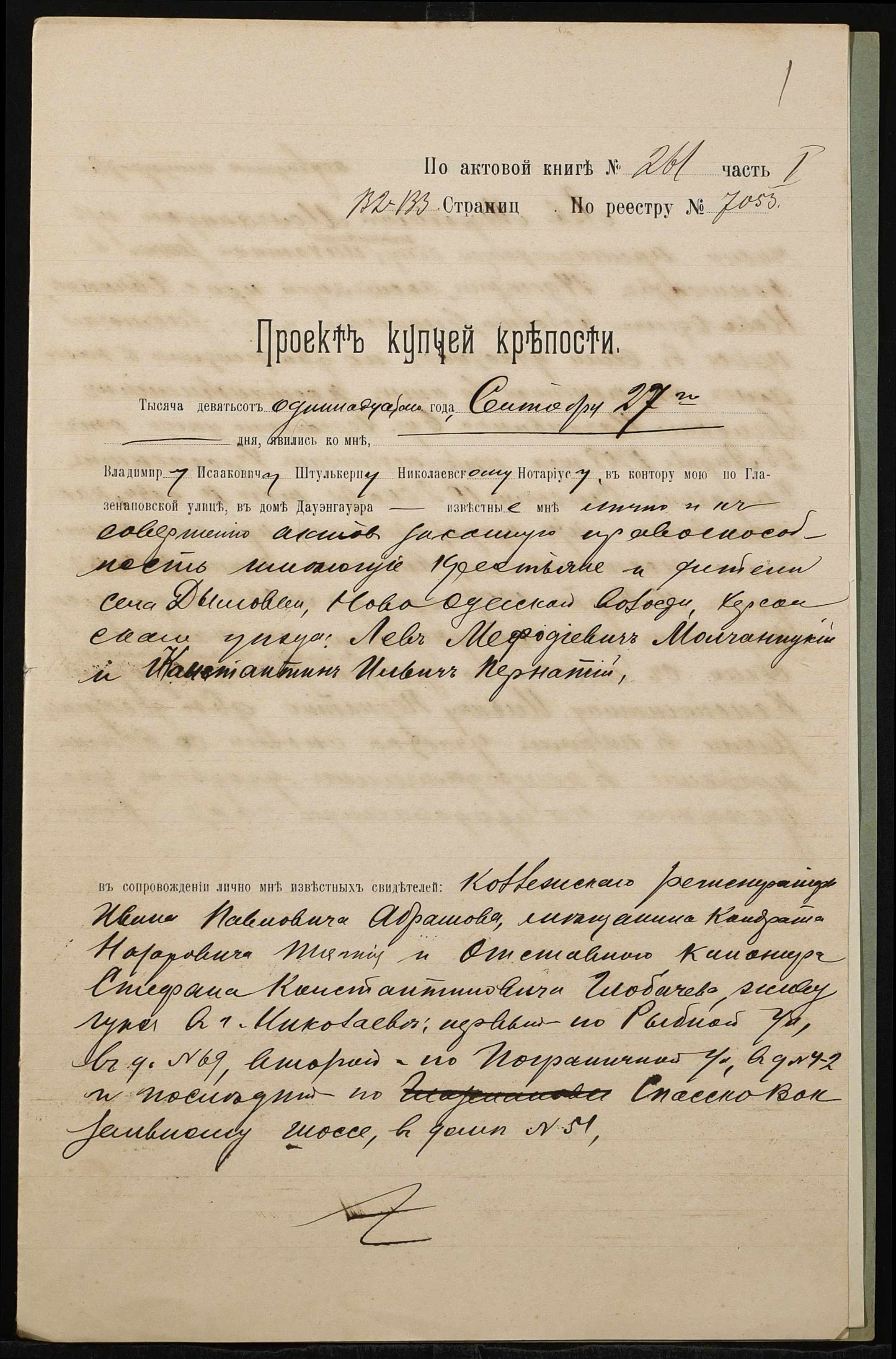 ◦ ◦ Фонд № 152 “Контора миколаївського нотаріуса Херсонського окружного суду Штулькерца Володимира Ісааковича”