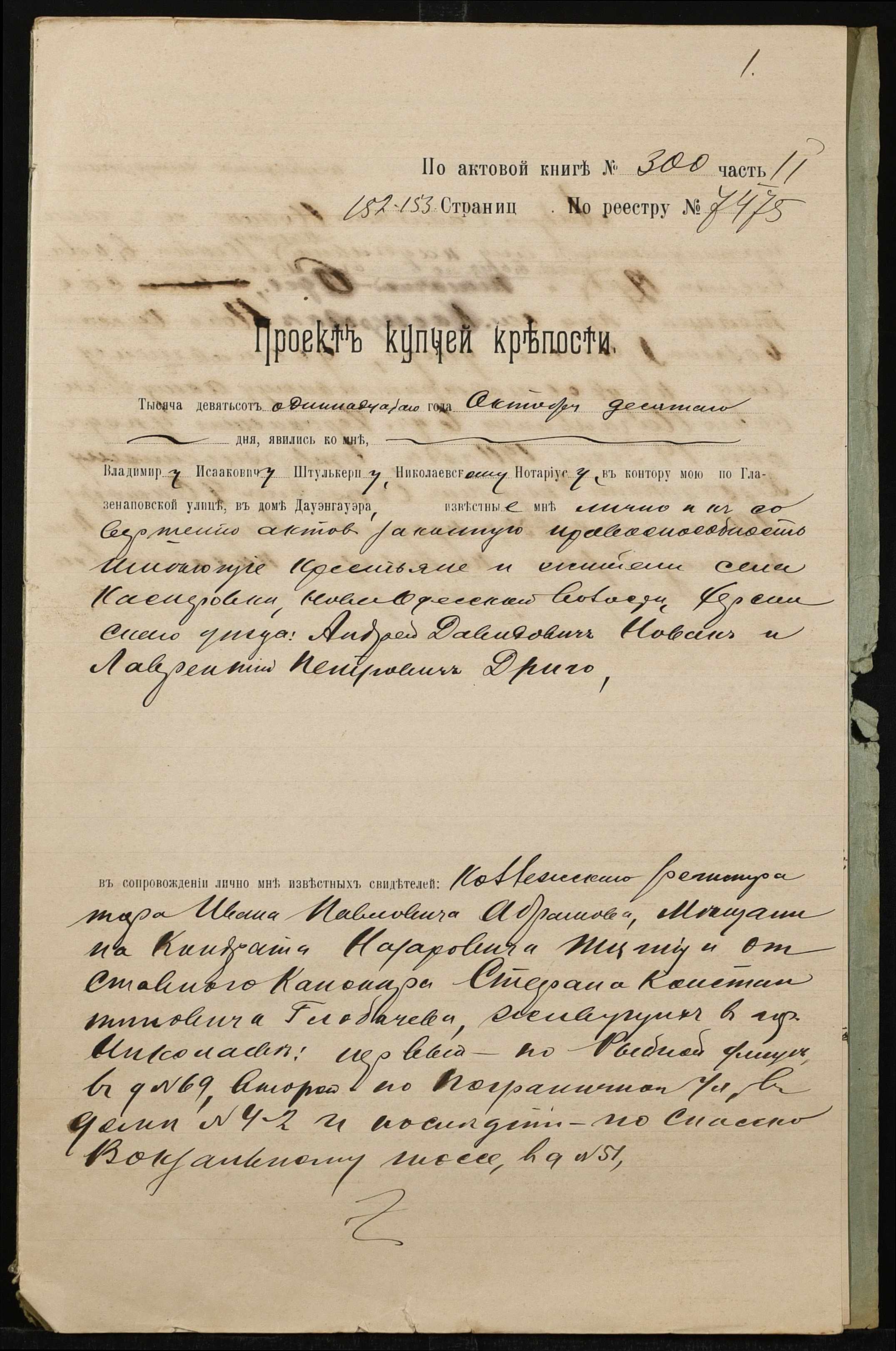 ◦ ◦ Фонд № 152 “Контора миколаївського нотаріуса Херсонського окружного суду Штулькерца Володимира Ісааковича”