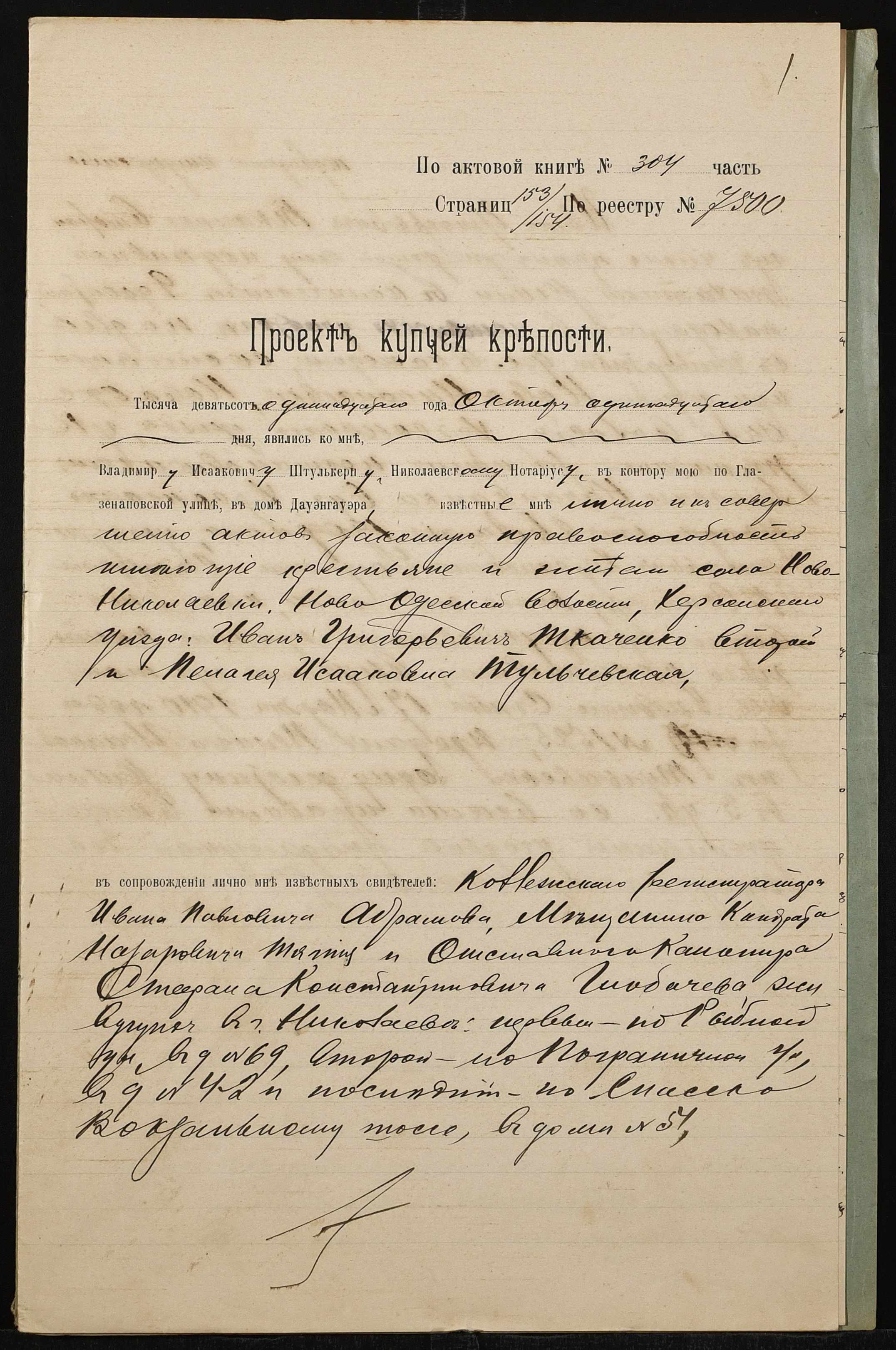 ◦ ◦ Фонд № 152 “Контора миколаївського нотаріуса Херсонського окружного суду Штулькерца Володимира Ісааковича”