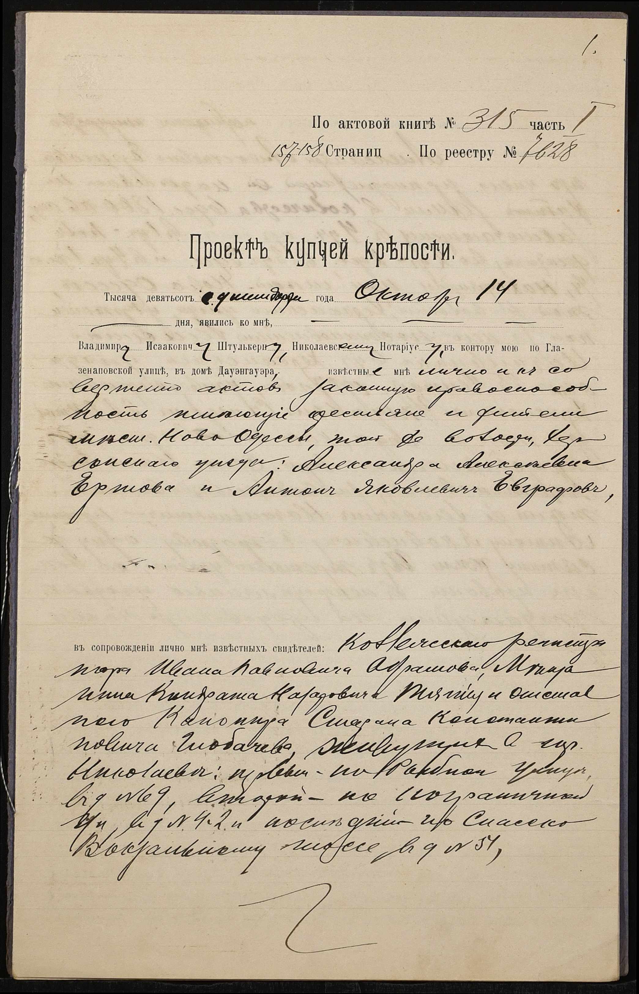 ◦ ◦ Фонд № 152 “Контора миколаївського нотаріуса Херсонського окружного суду Штулькерца Володимира Ісааковича”