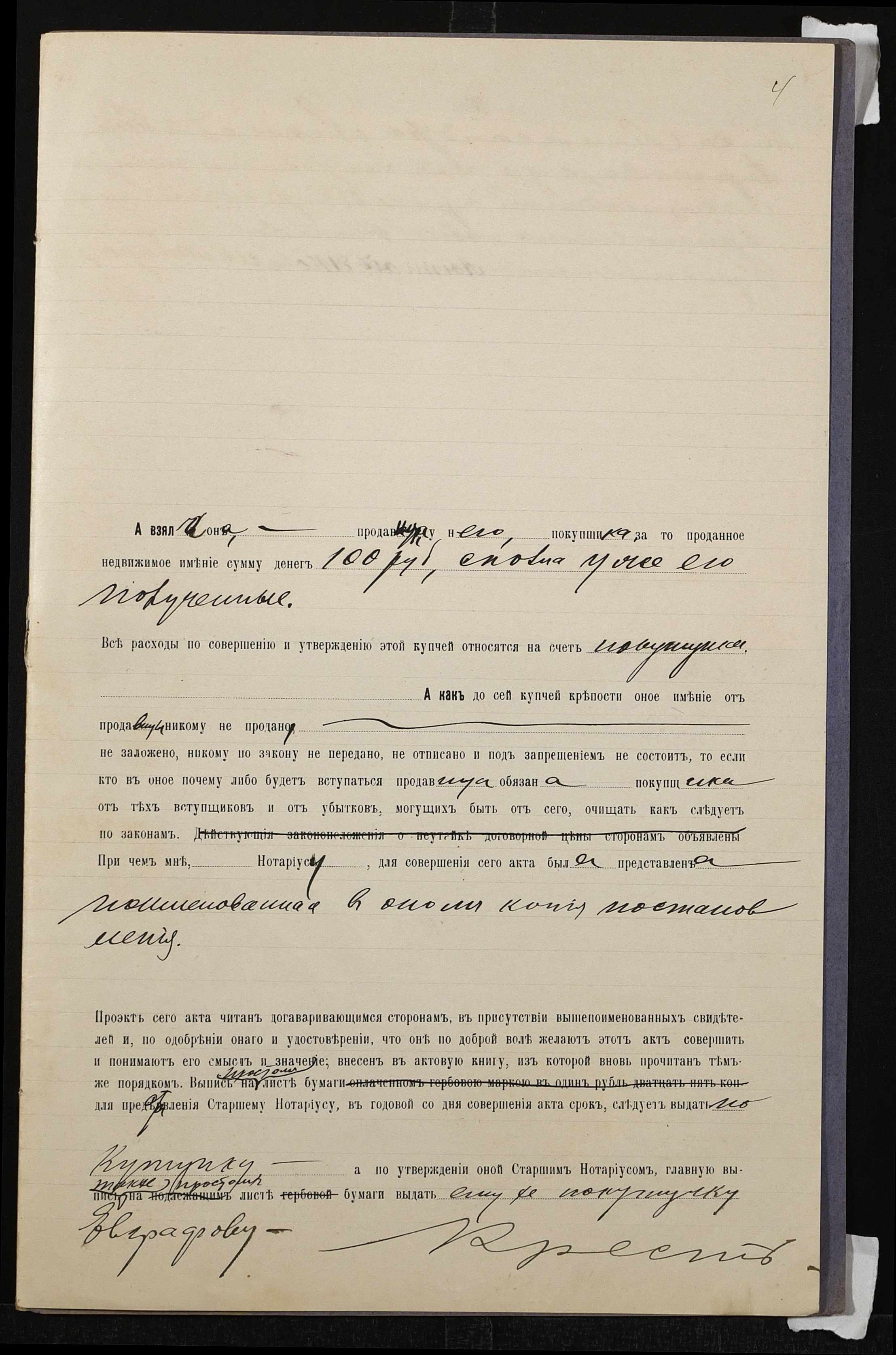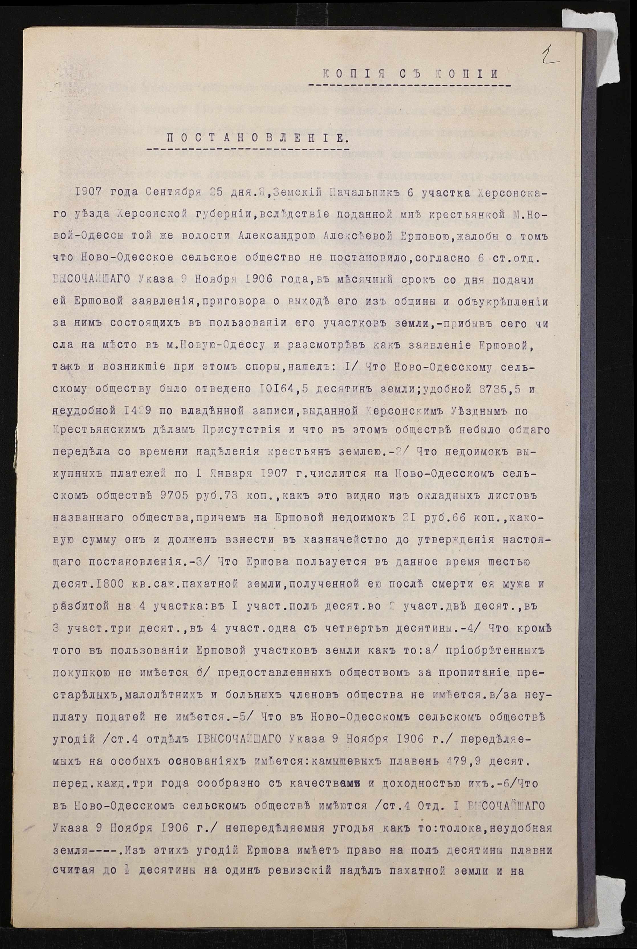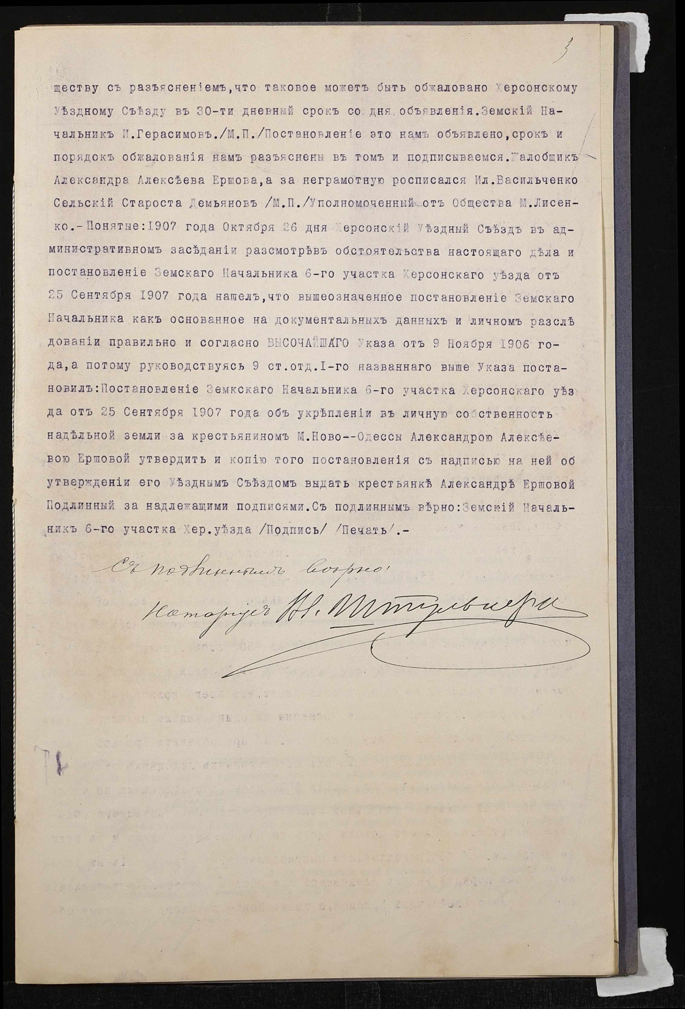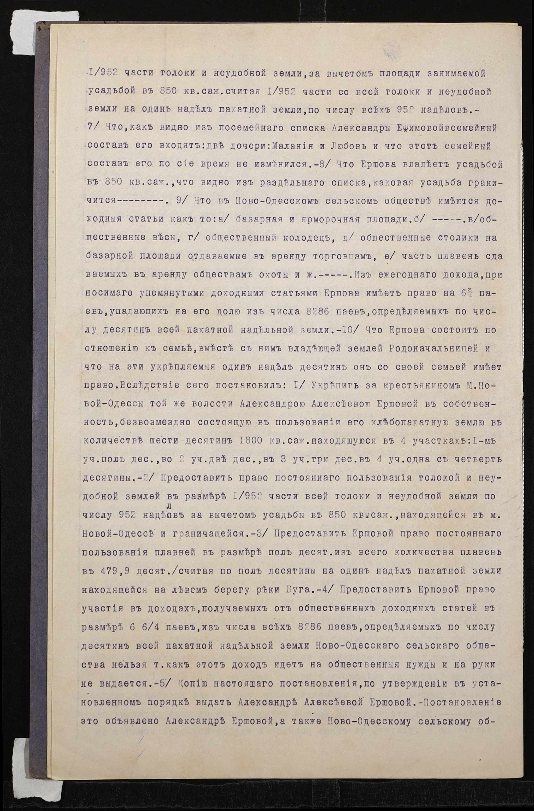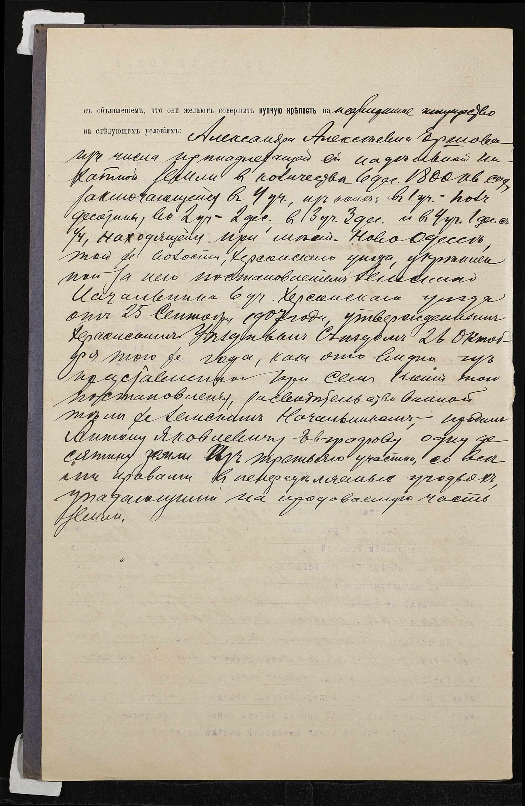 • • • • Справа № 809 “Справа про вчинення купчої про продаж нерухомого майна селянкою Єршовою Олександрою Олексіївною (Ершовой Александрой Алексеевной) на користь селянина Євграфова Антона Яковича (Евграфова Антона Яковлевича)”