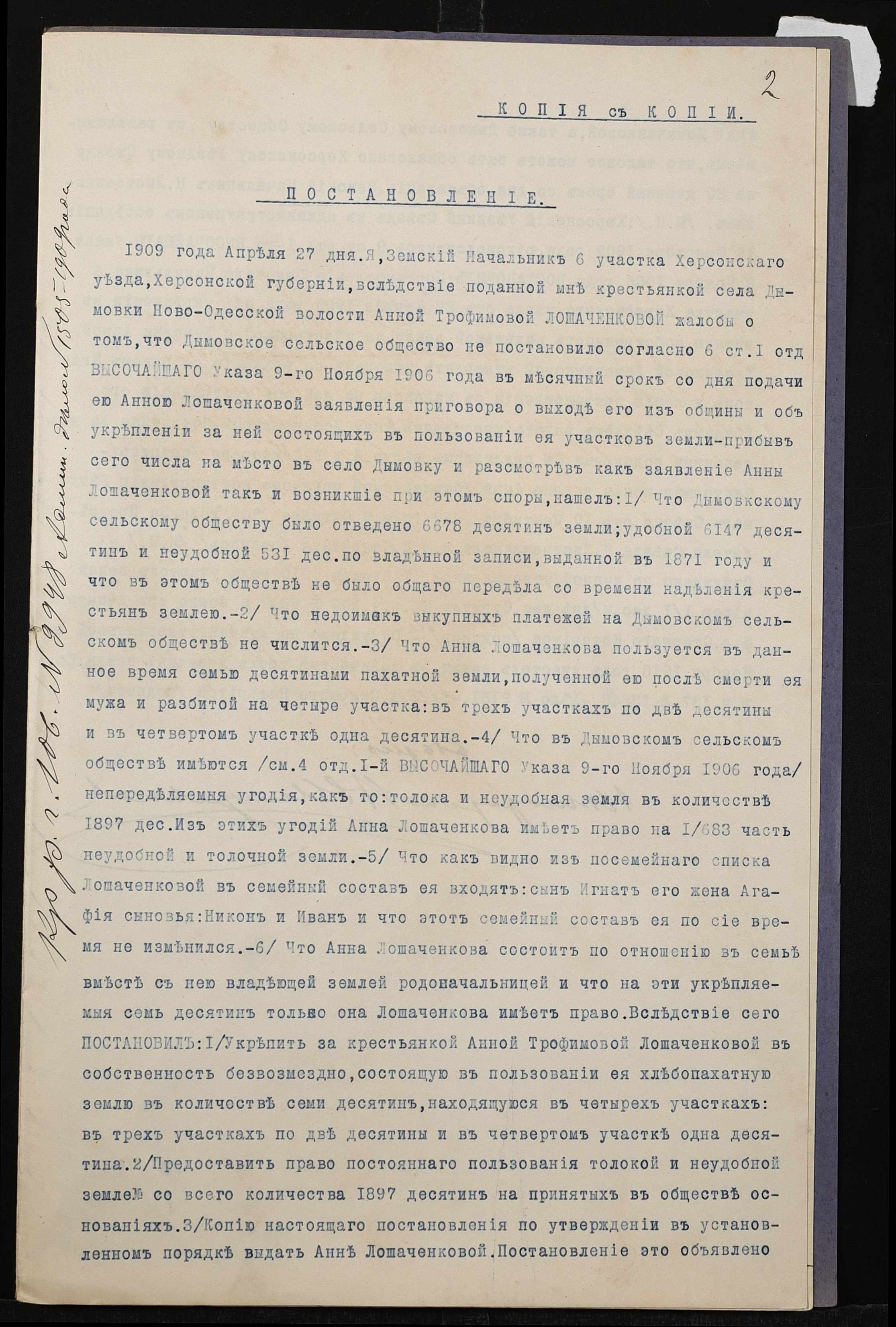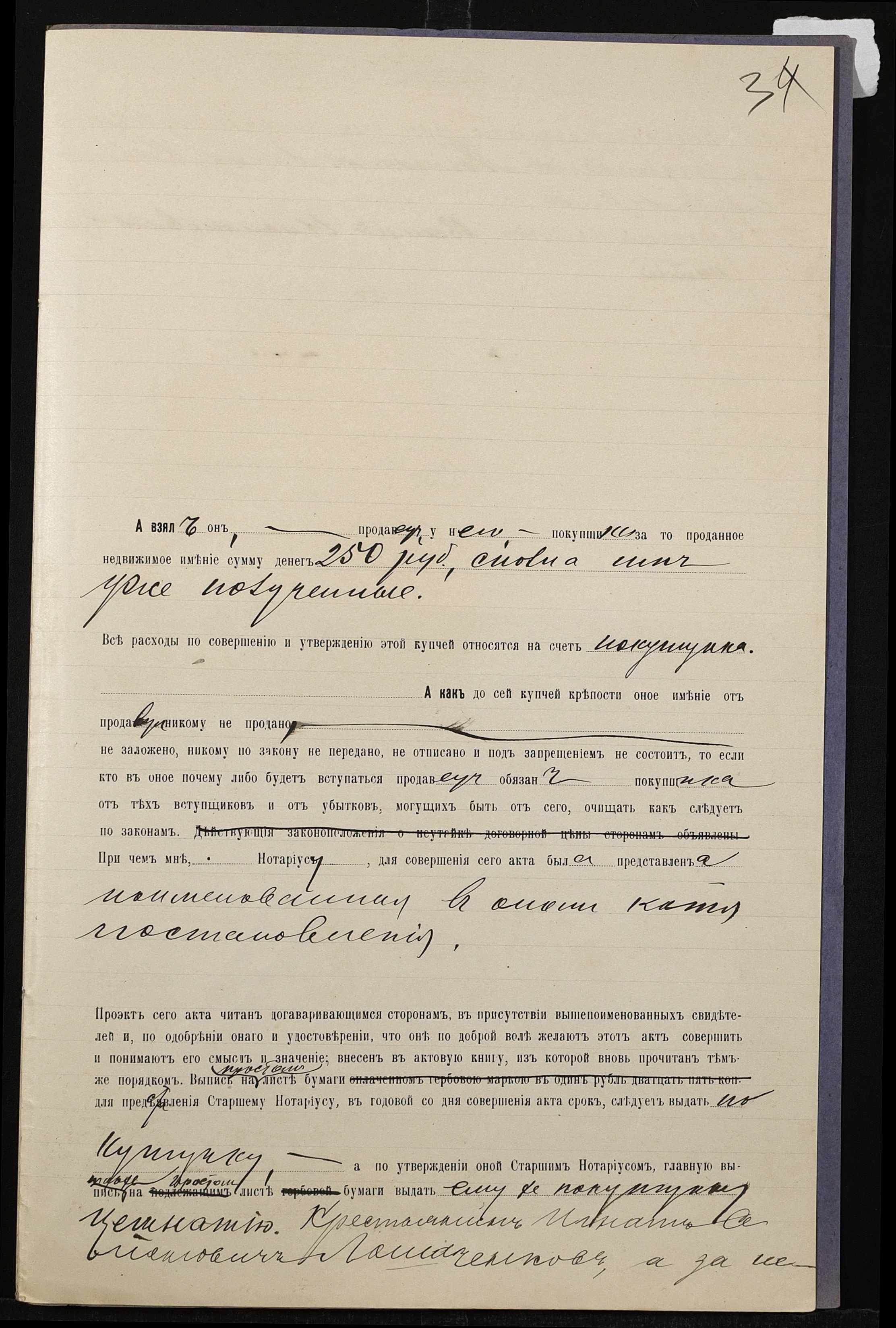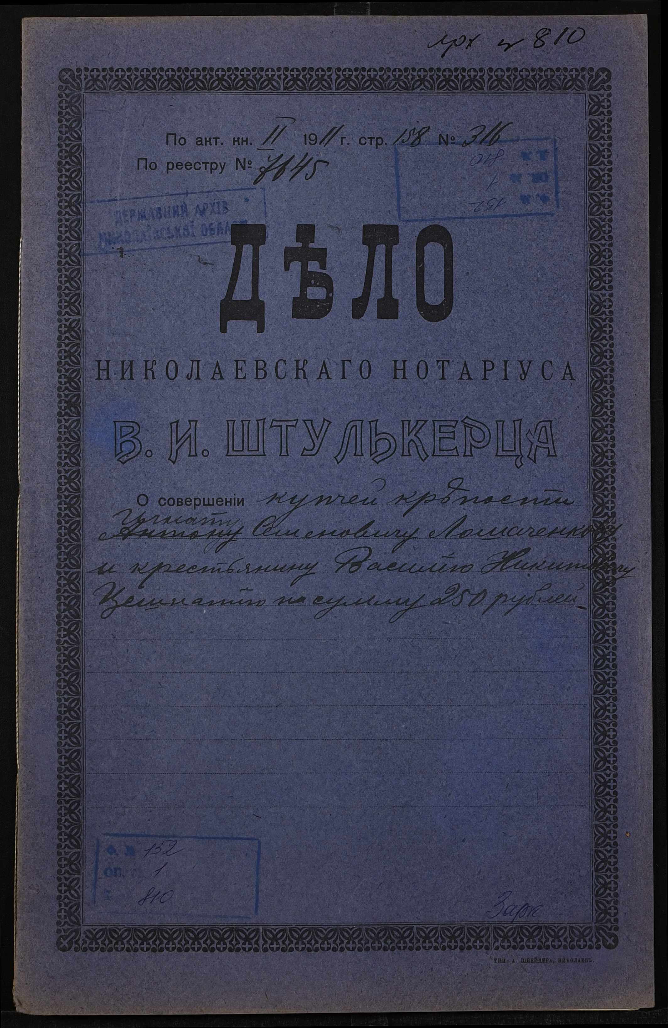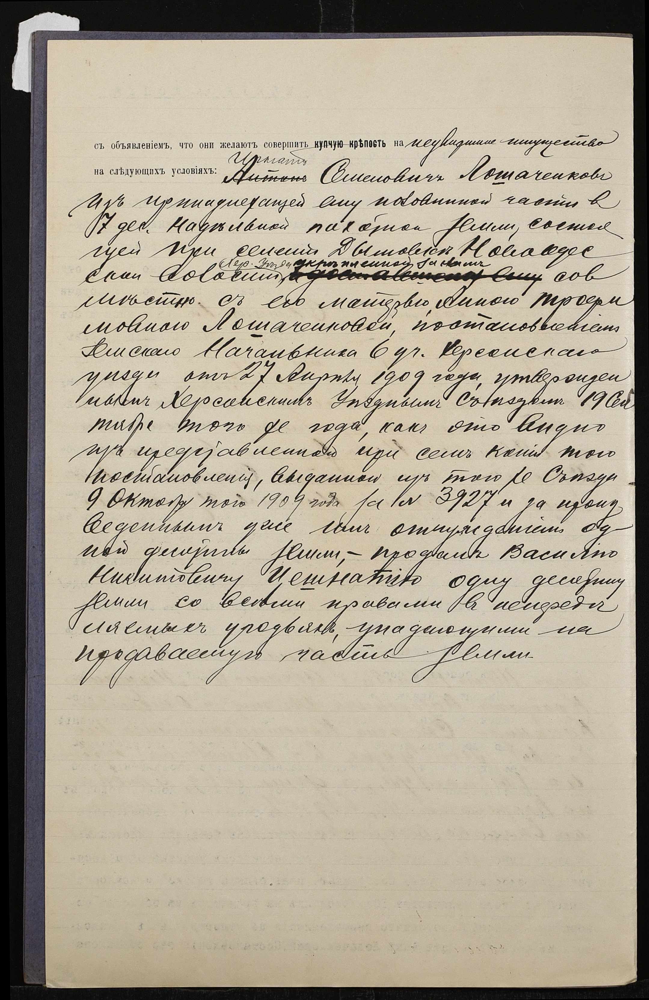 • • • • Справа № 810 “Справа про вчинення купчої про продаж нерухомого майна селянином Лошаченком Гнатом Семеновичем (Лошаченко Игнатом Семеновичем) на користь селянина Цешнатія Василя Микитовича (Цешнатия Василия Никитовича)”