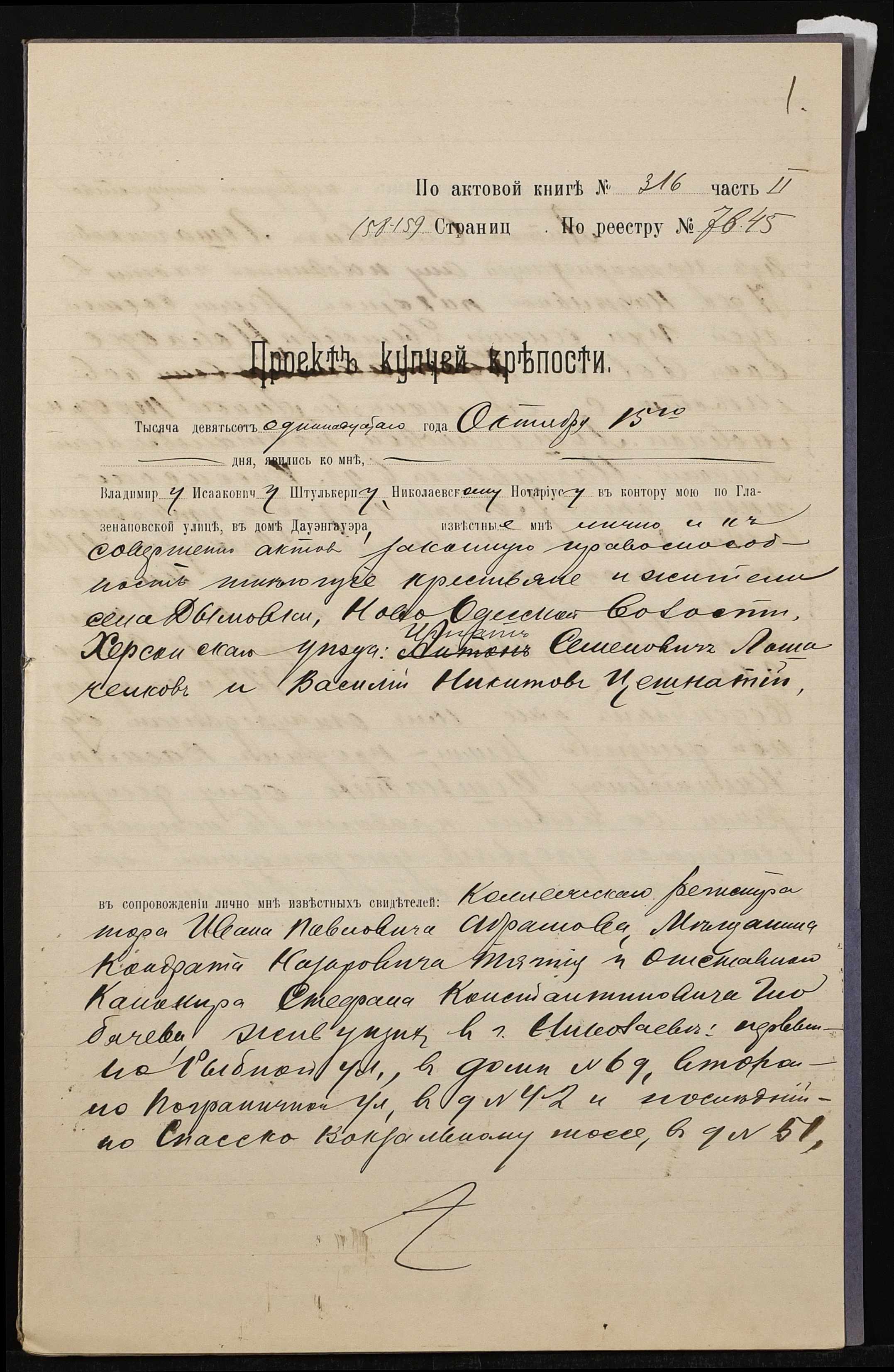 ◦ ◦ Фонд № 152 “Контора миколаївського нотаріуса Херсонського окружного суду Штулькерца Володимира Ісааковича”