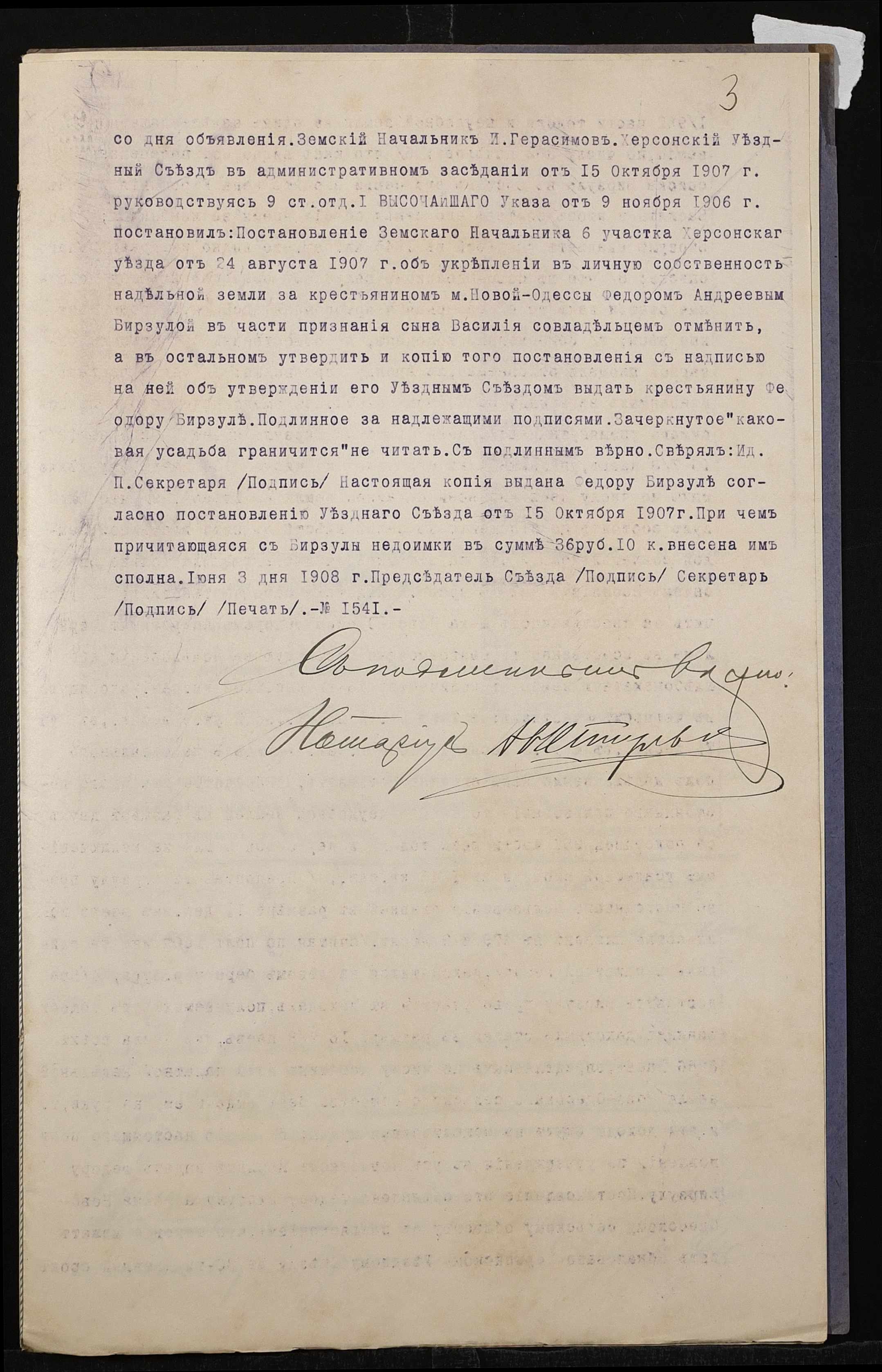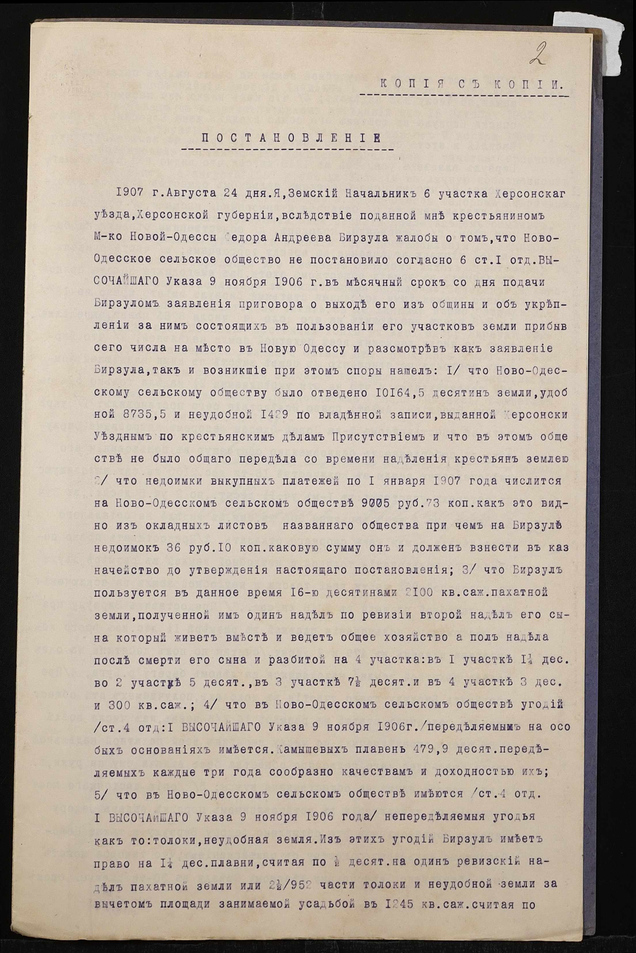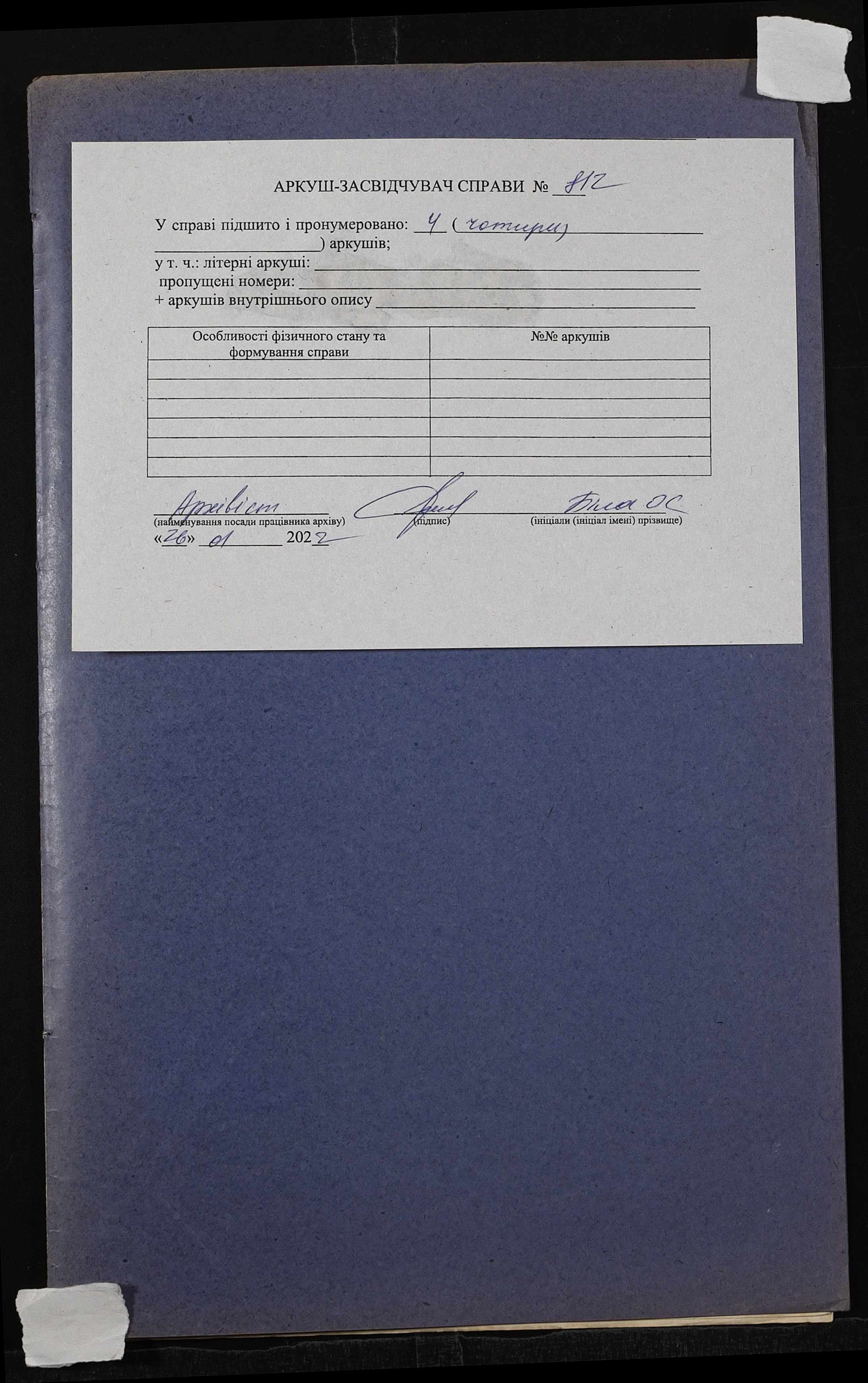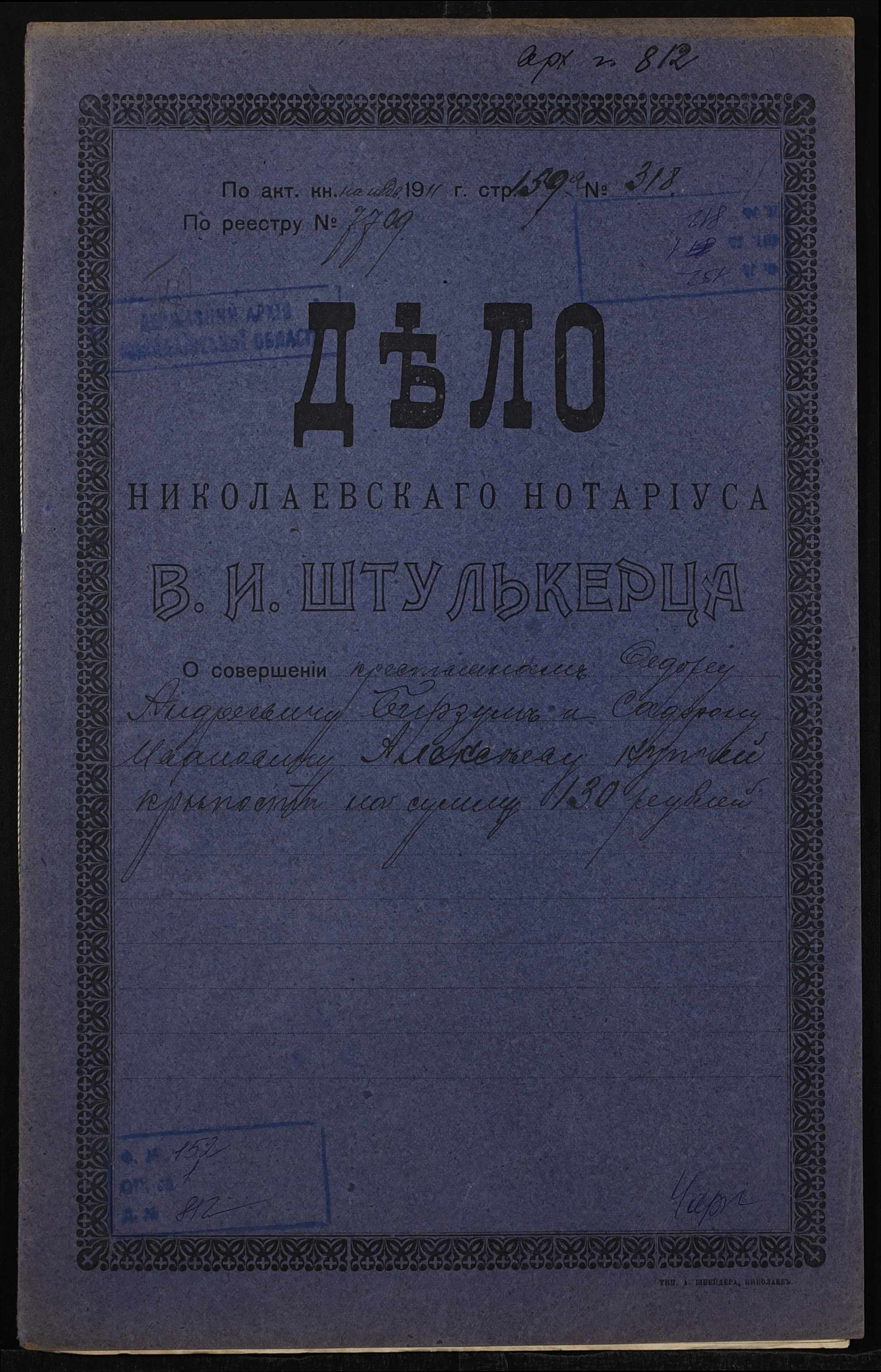 • • • • Справа № 812 “Справа про вчинення купчої про продаж нерухомого майна селянином Бірзулом Федором Андрійовичем (Бирзулом Федором Андреевичем) на користь селянина Алексєєва Софрона Івановича (Алексеева Сафрона Ивановича)”