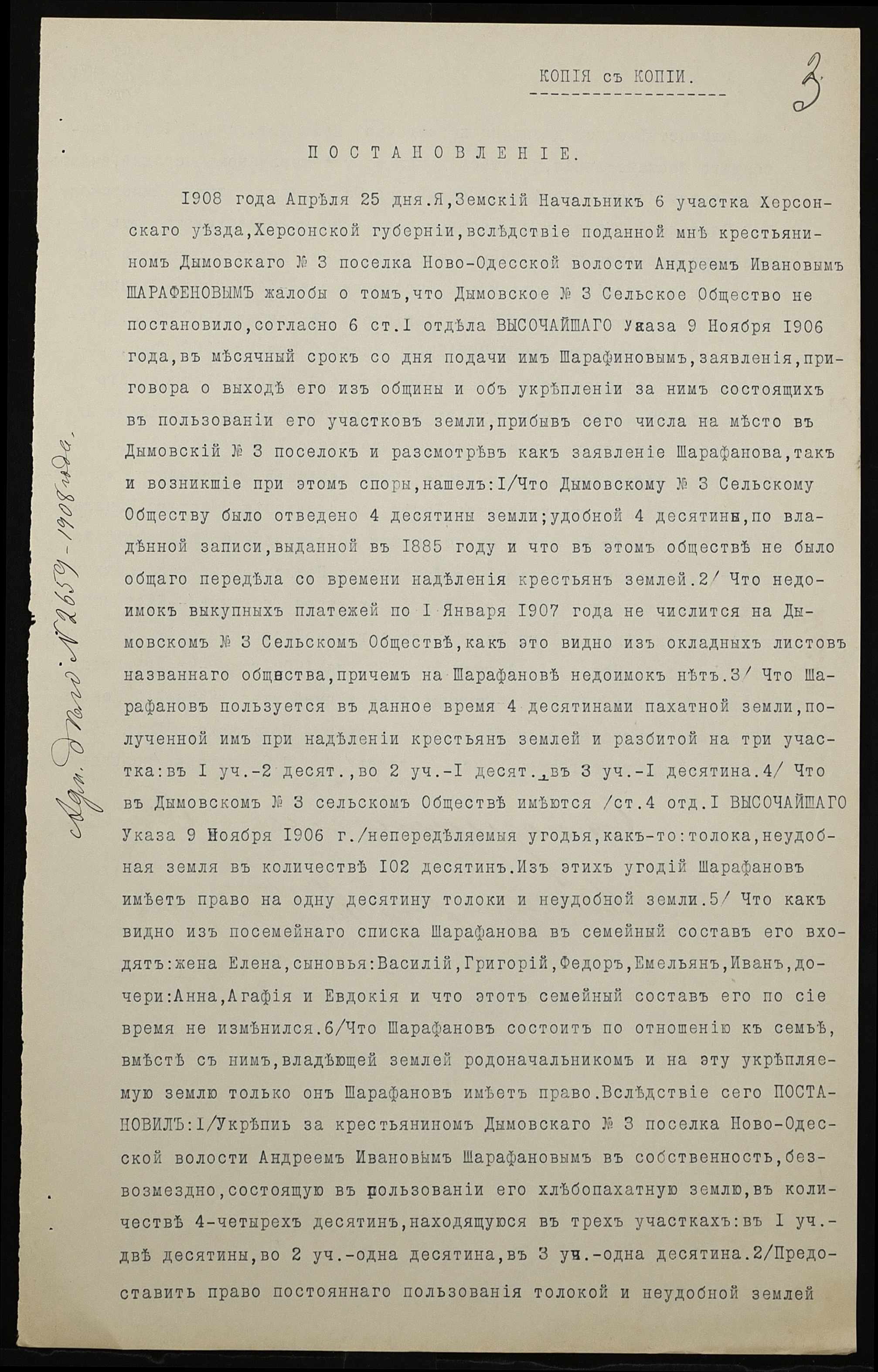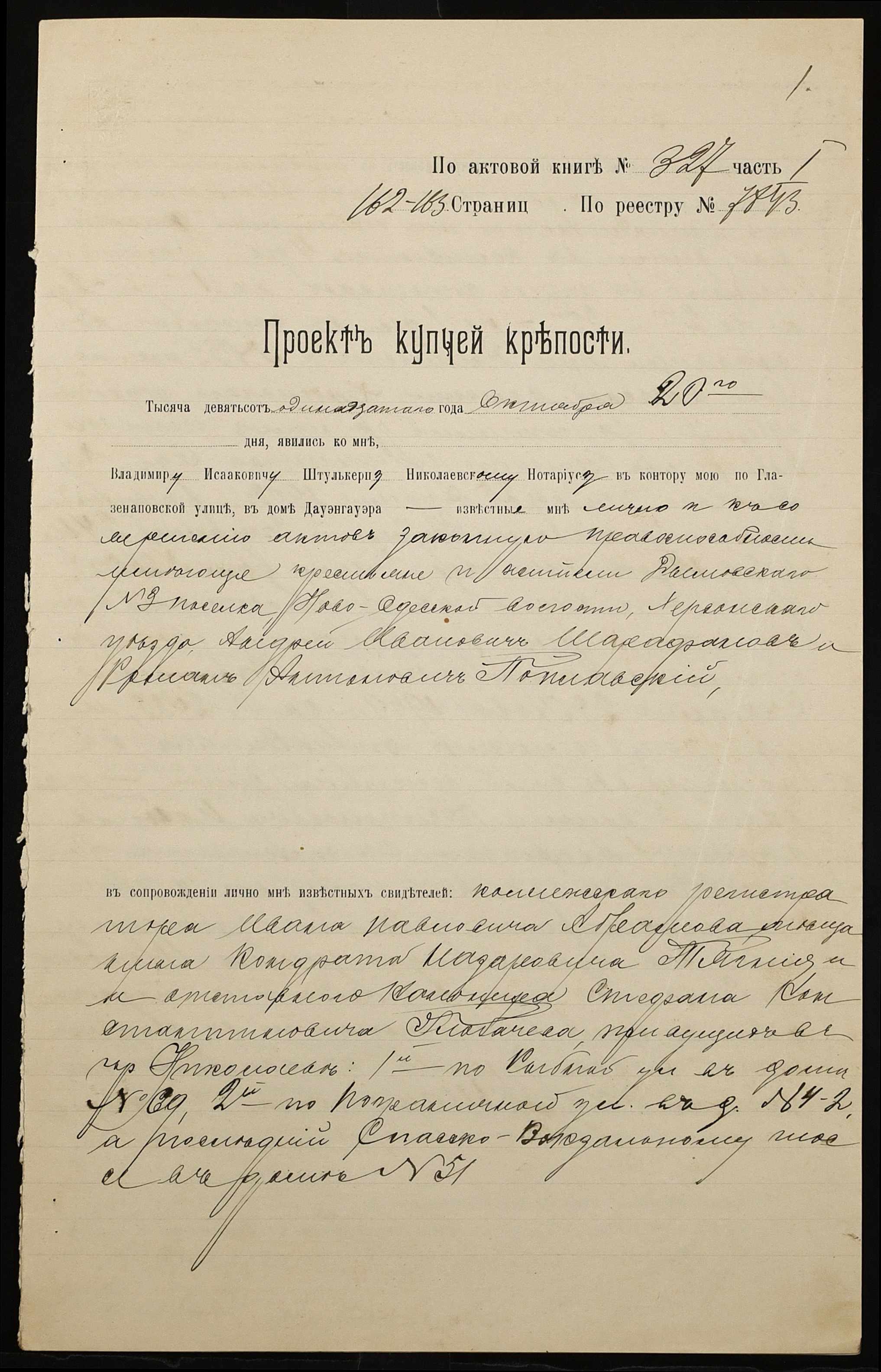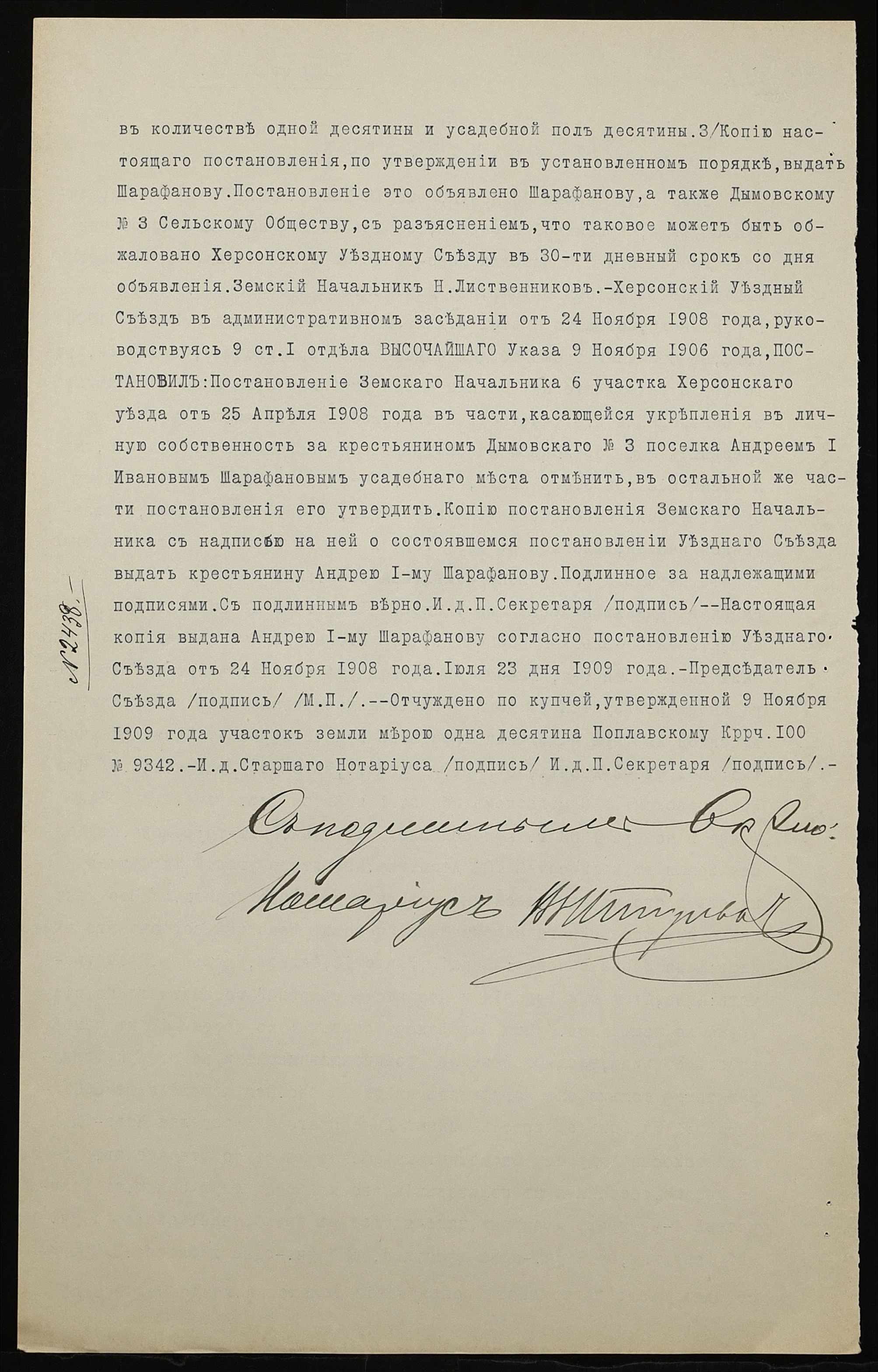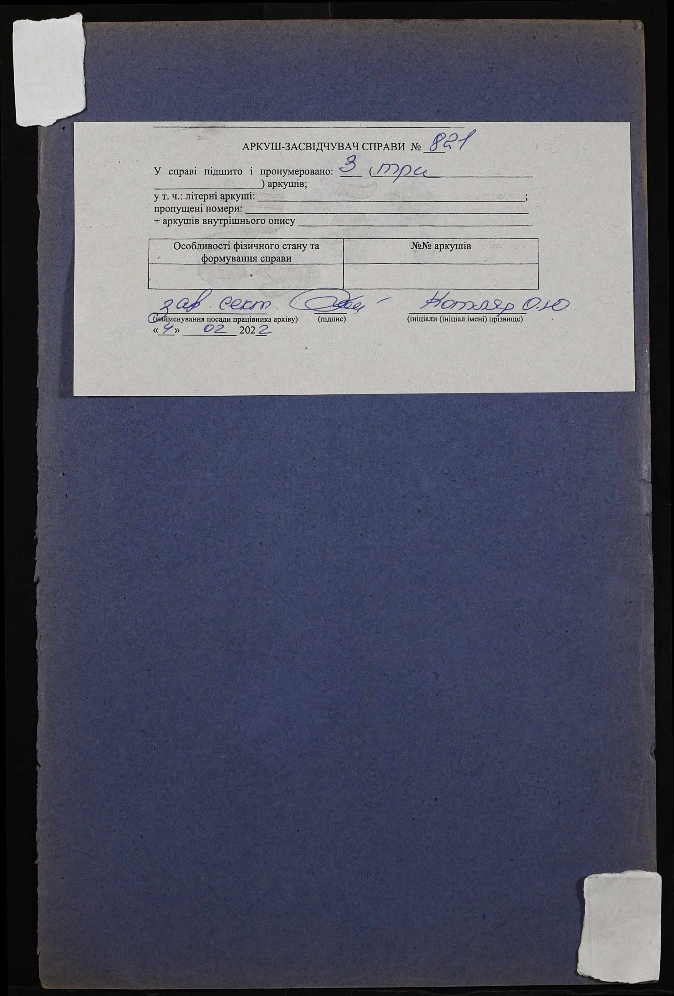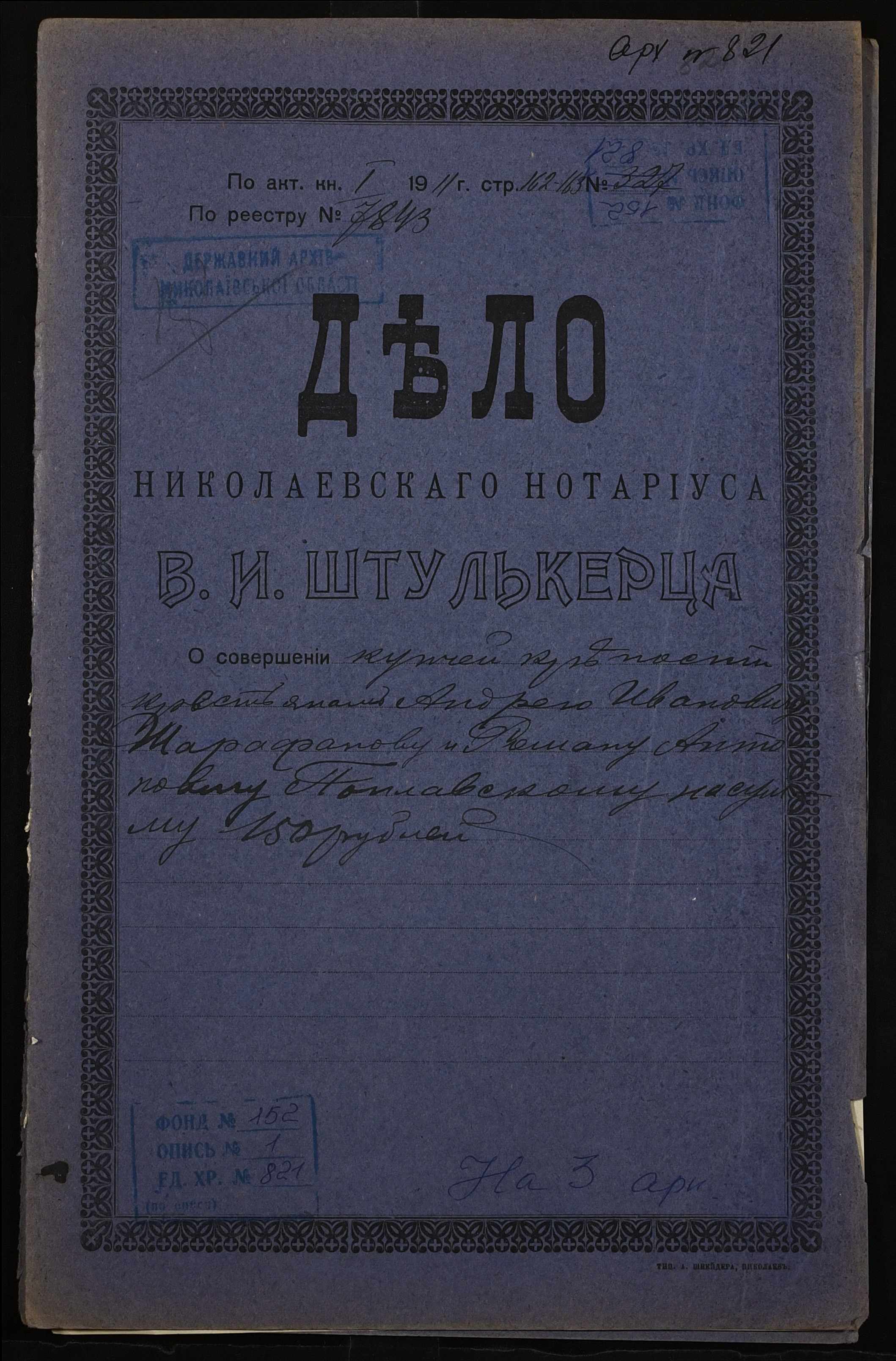 • • • • Справа № 821 “Справа про вчинення купчої про продаж нерухомого майна селянином Шарафановим Андрієм Івановичем (Шарафановым Андреем Ивановичем) на користь селянина Поплавського Романа Антоновича (Поплавского Романа Антоновича)”