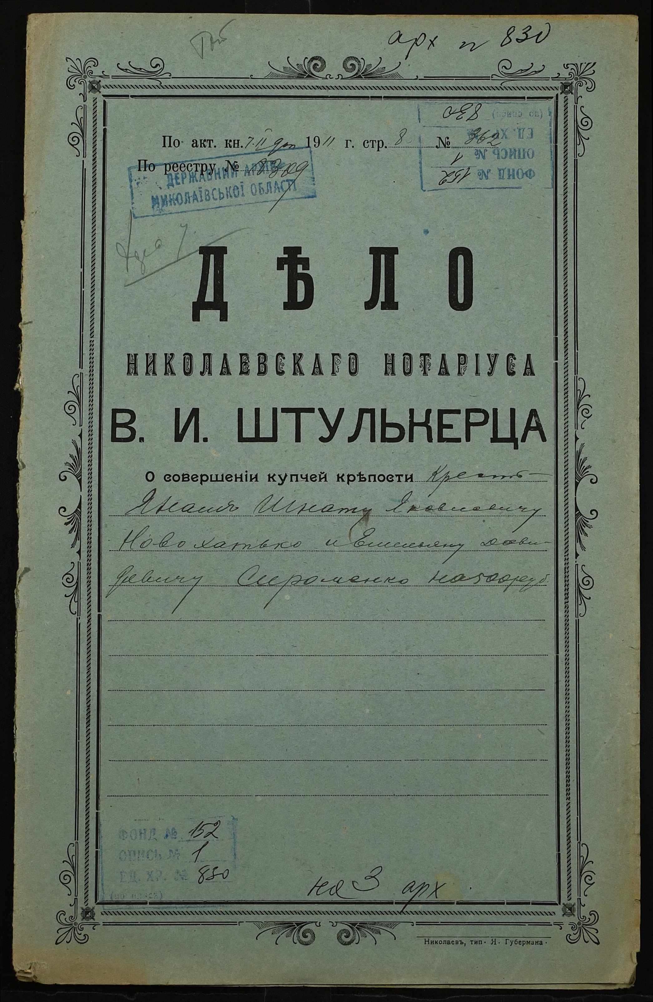 ◦ ◦ Фонд № 152 “Контора миколаївського нотаріуса Херсонського окружного суду Штулькерца Володимира Ісааковича”