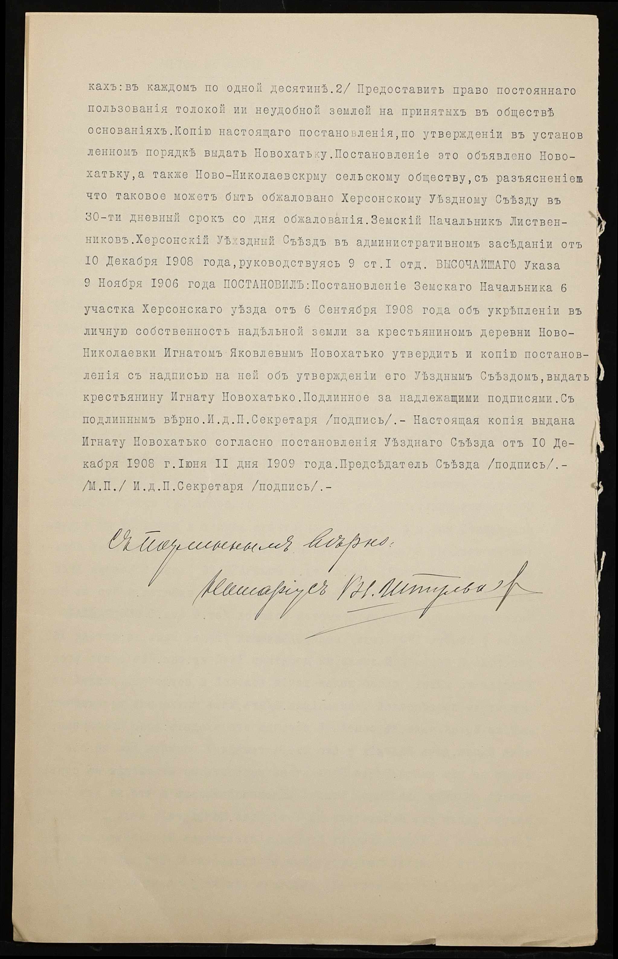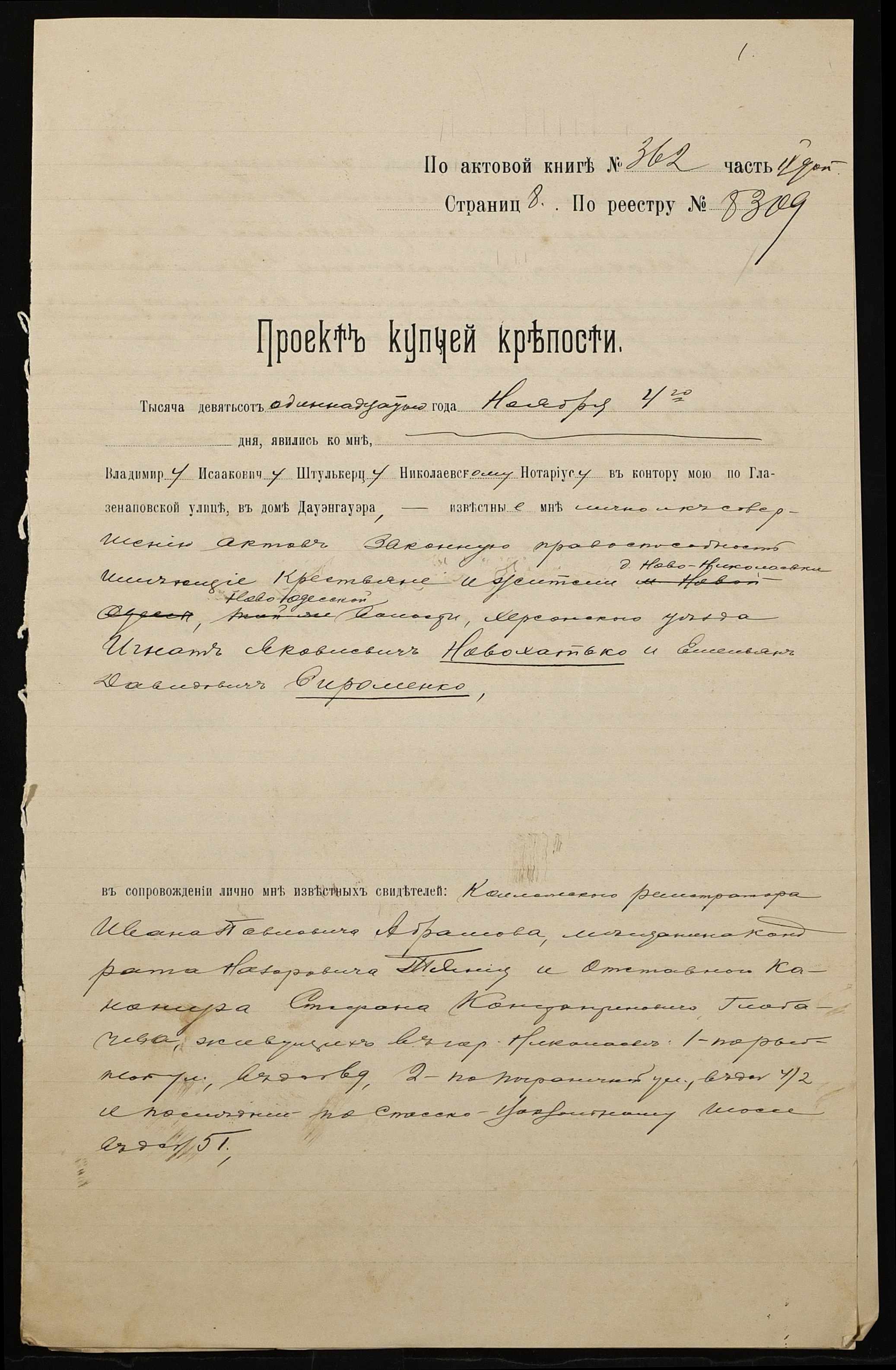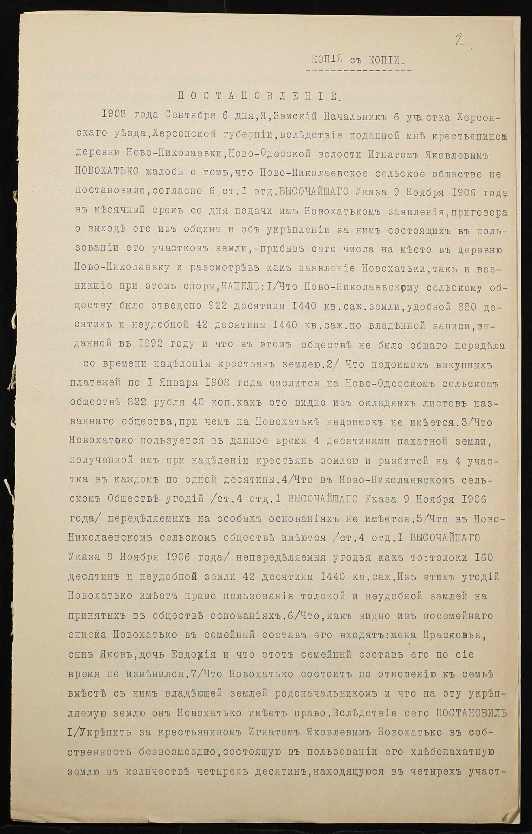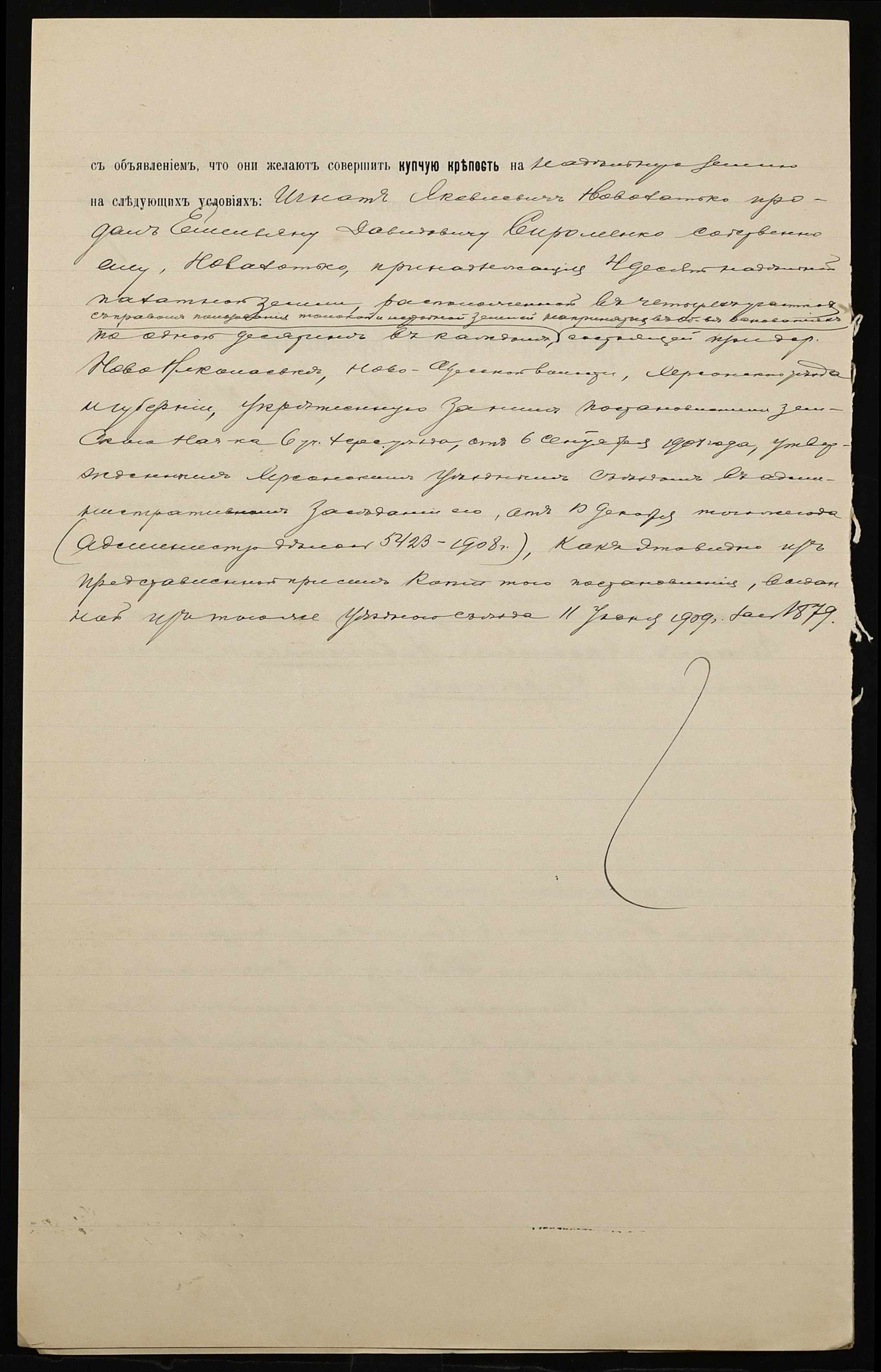 • • • • Справа № 830 “Справа про вчинення купчої про продаж землі селянином Новохатьком Гнатом Яковичем (Новохатько Игнатом Яковлевичем) на користь селянина Сіроменка Омеляна Давидовича (Сироменко Емельяна Давидовича)”