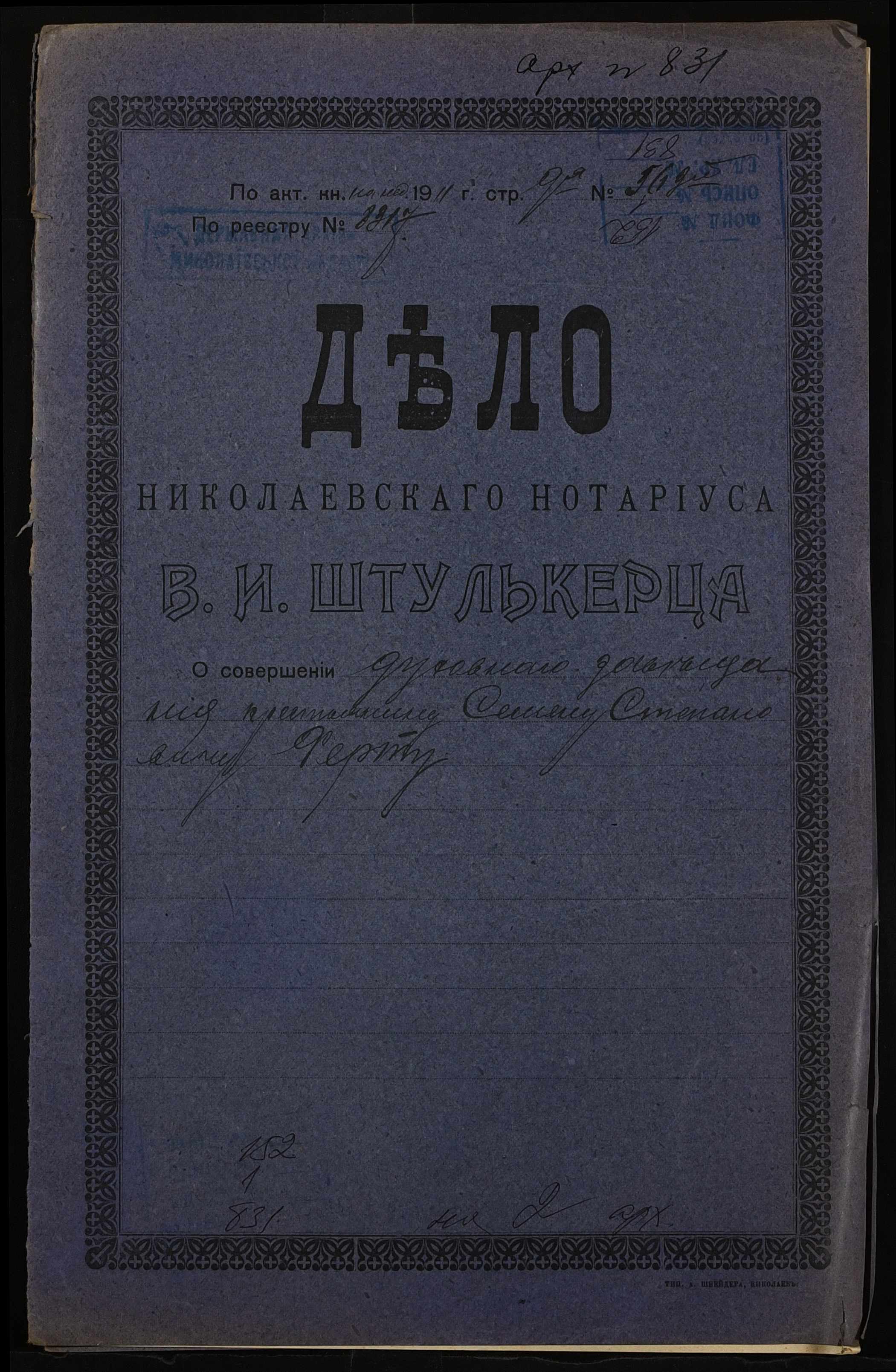 ◦ ◦ Фонд № 152 “Контора миколаївського нотаріуса Херсонського окружного суду Штулькерца Володимира Ісааковича”