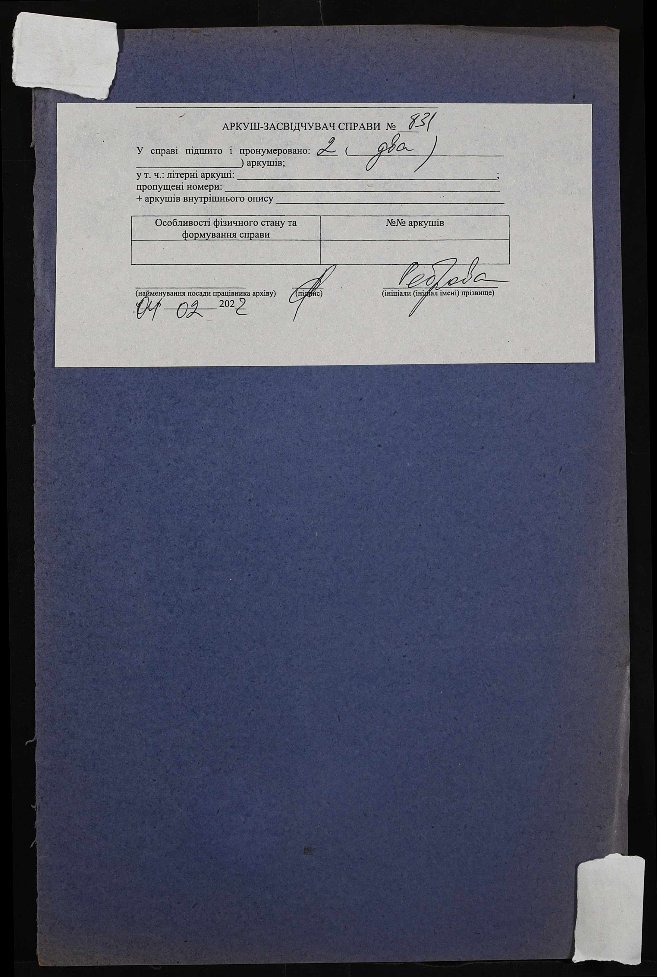 Фонд 152 / Опис 1 / Справа 0831