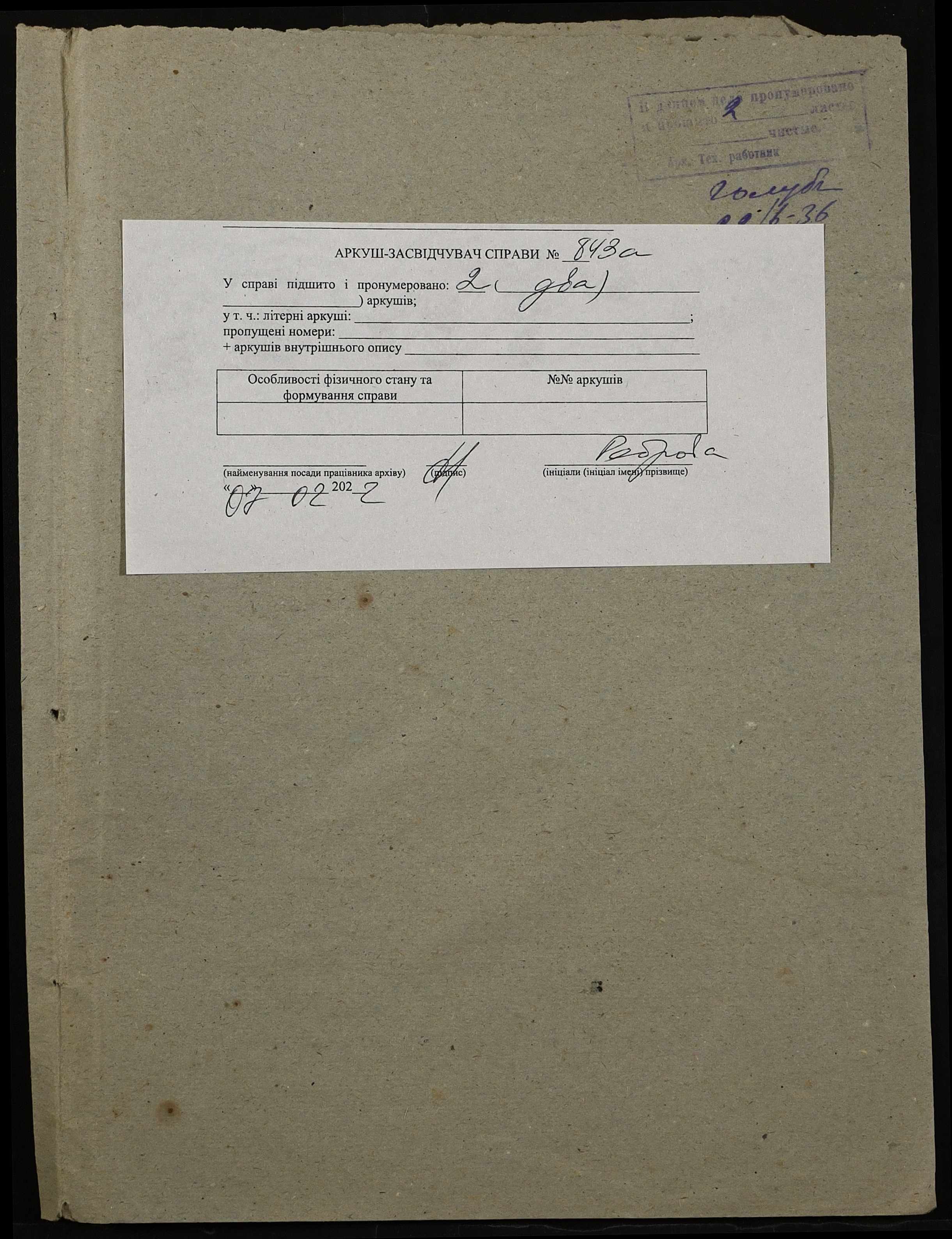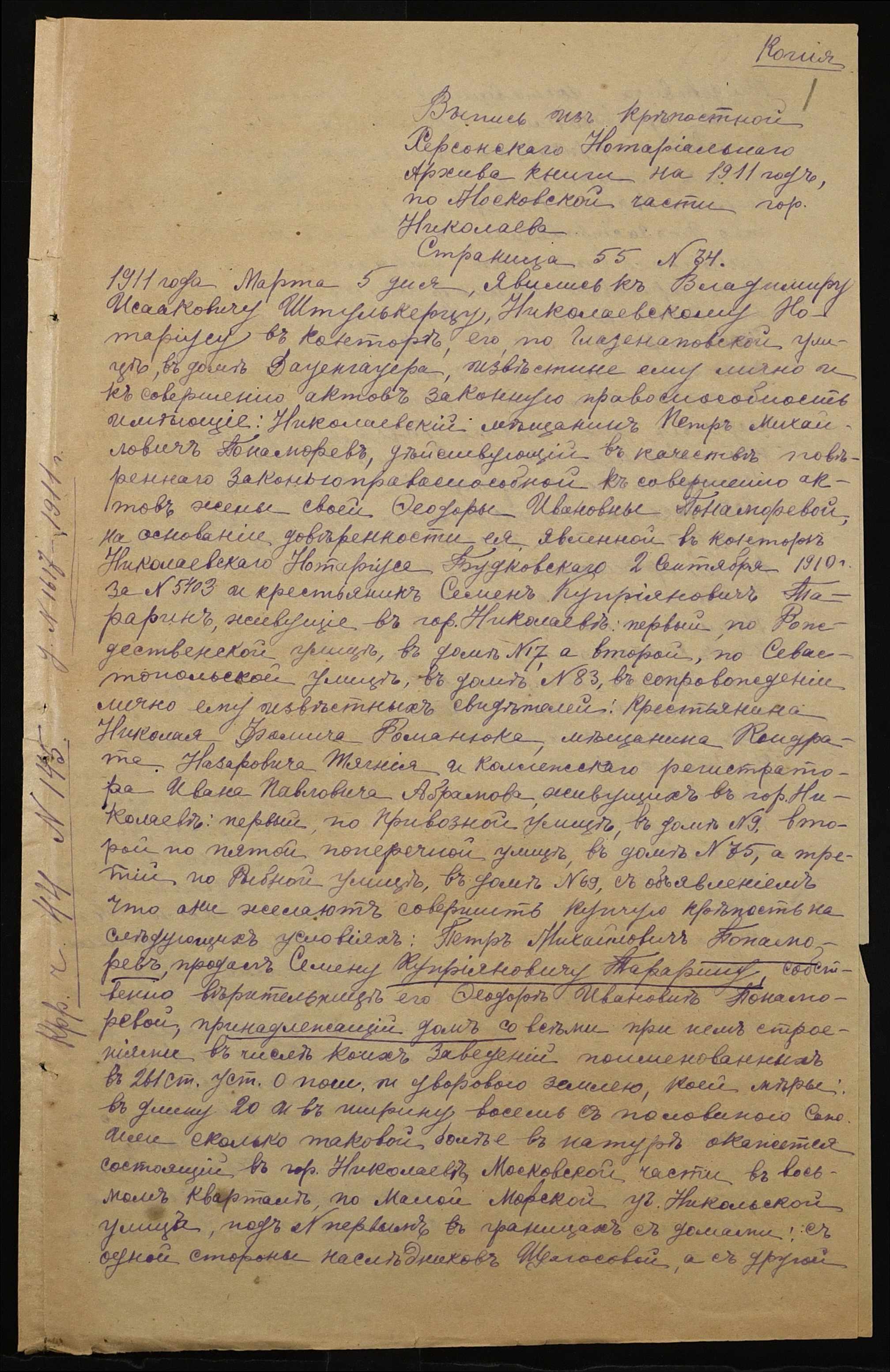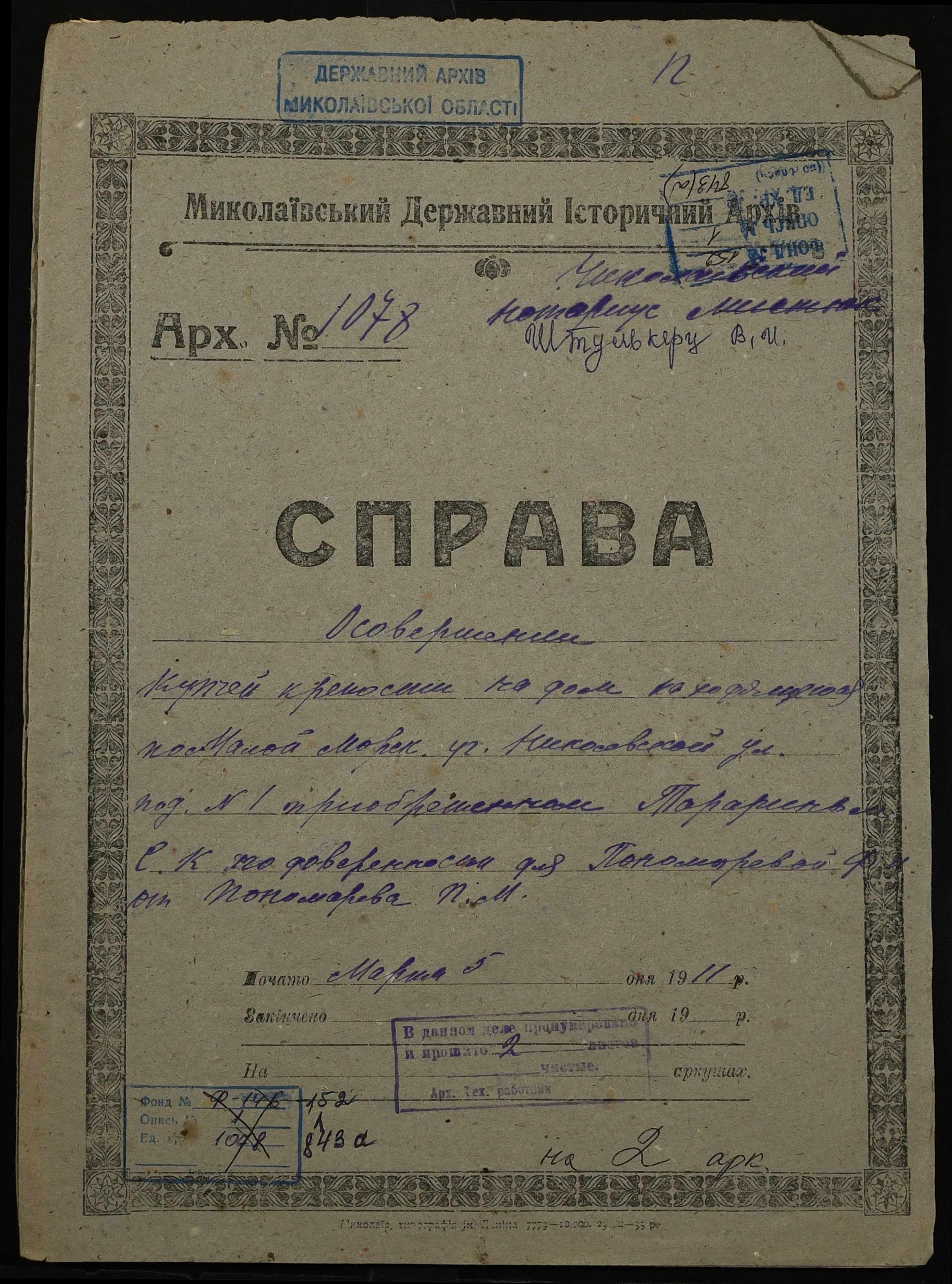 • • • • Справа № 843а “Справа про вчинення купчої про продаж будинку у м. Миколаїв на вул. Малій Морській, 1 (на розі вул. Нікольської) Пономарьовим Петром Михайловичем (Пономарёвым Петром Михайловичем) на користь Тарарина Семена Купріяновича (Тарарина Семена Куприяновича)”
