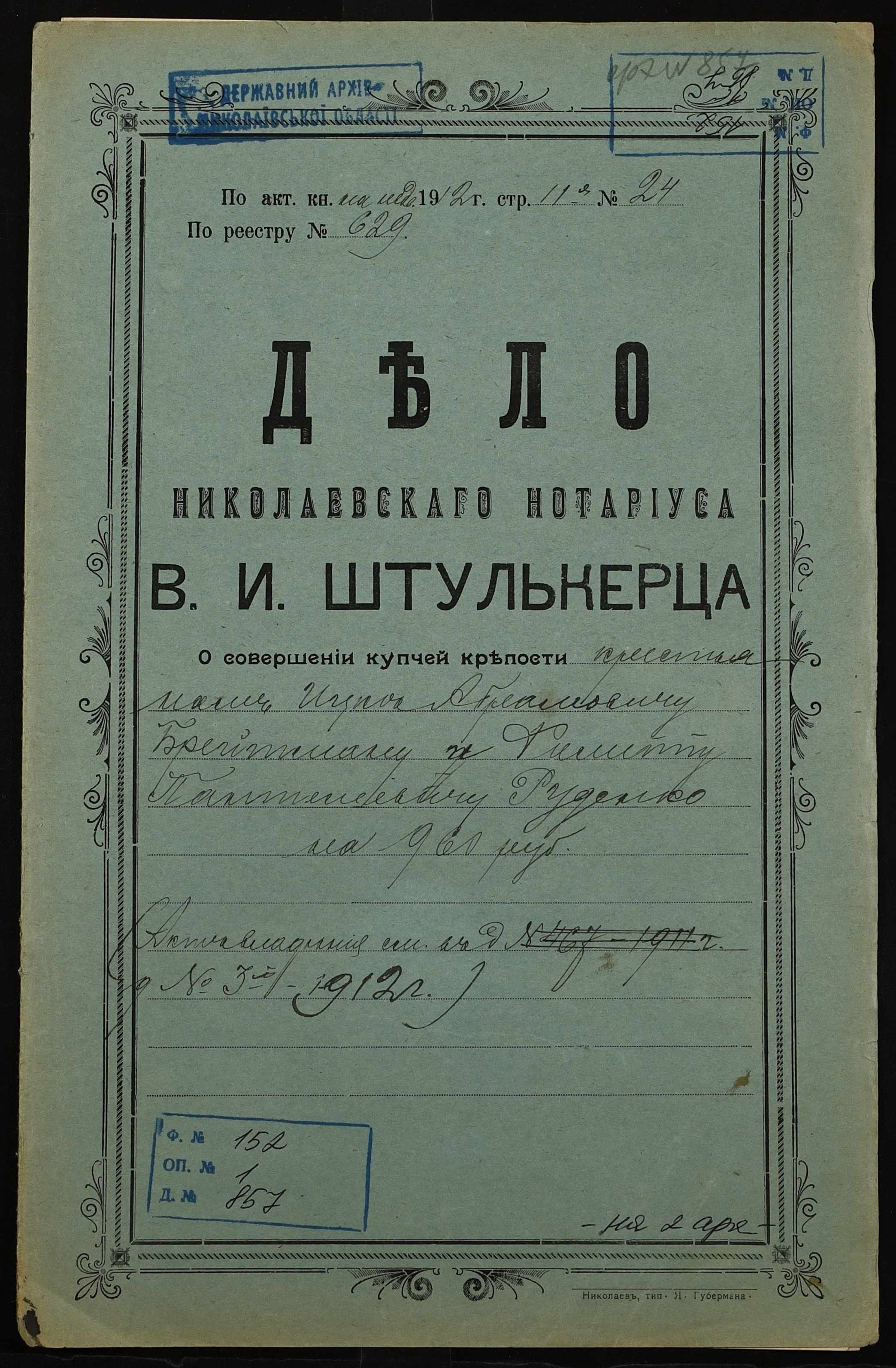 ◦ ◦ Фонд № 152 “Контора миколаївського нотаріуса Херсонського окружного суду Штулькерца Володимира Ісааковича”
