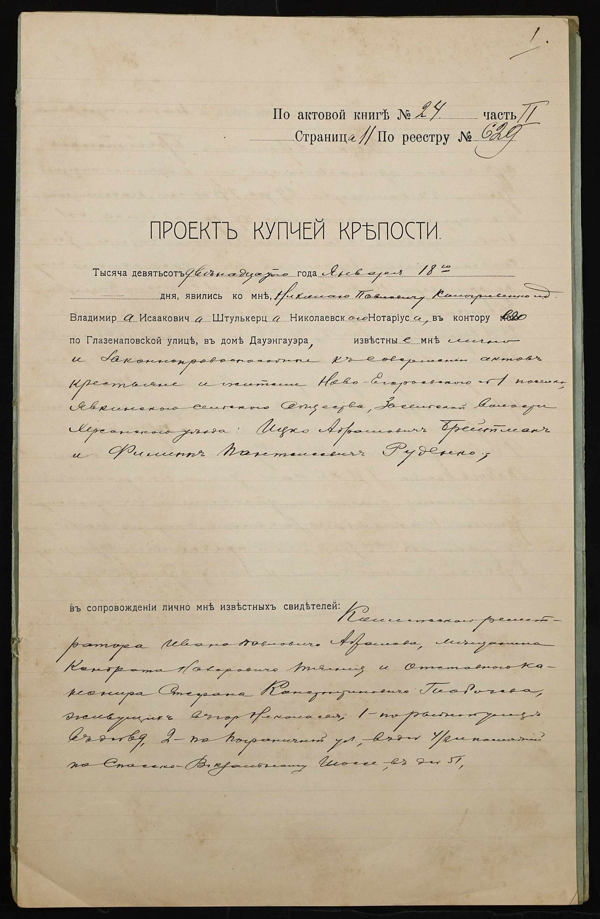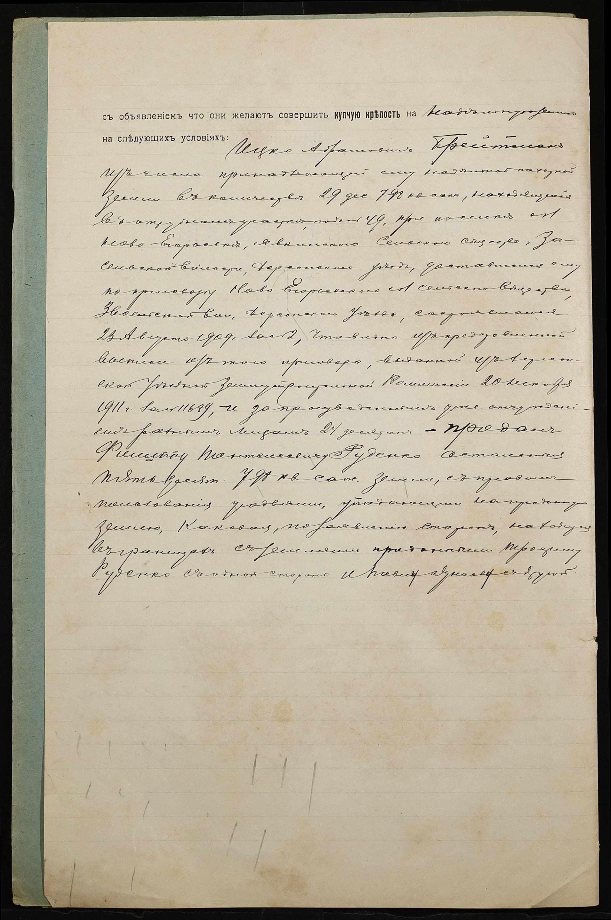 • • • • Справа № 857 “Справа про вчинення купчої про продаж землі селянином Брейтманом Іцком Абрамовичем (Брейтманом Ицком Абрамовичем) на користь селянина Руденка Пилипа Пантелійовича (Руденко Филиппа Пантелеевича)”