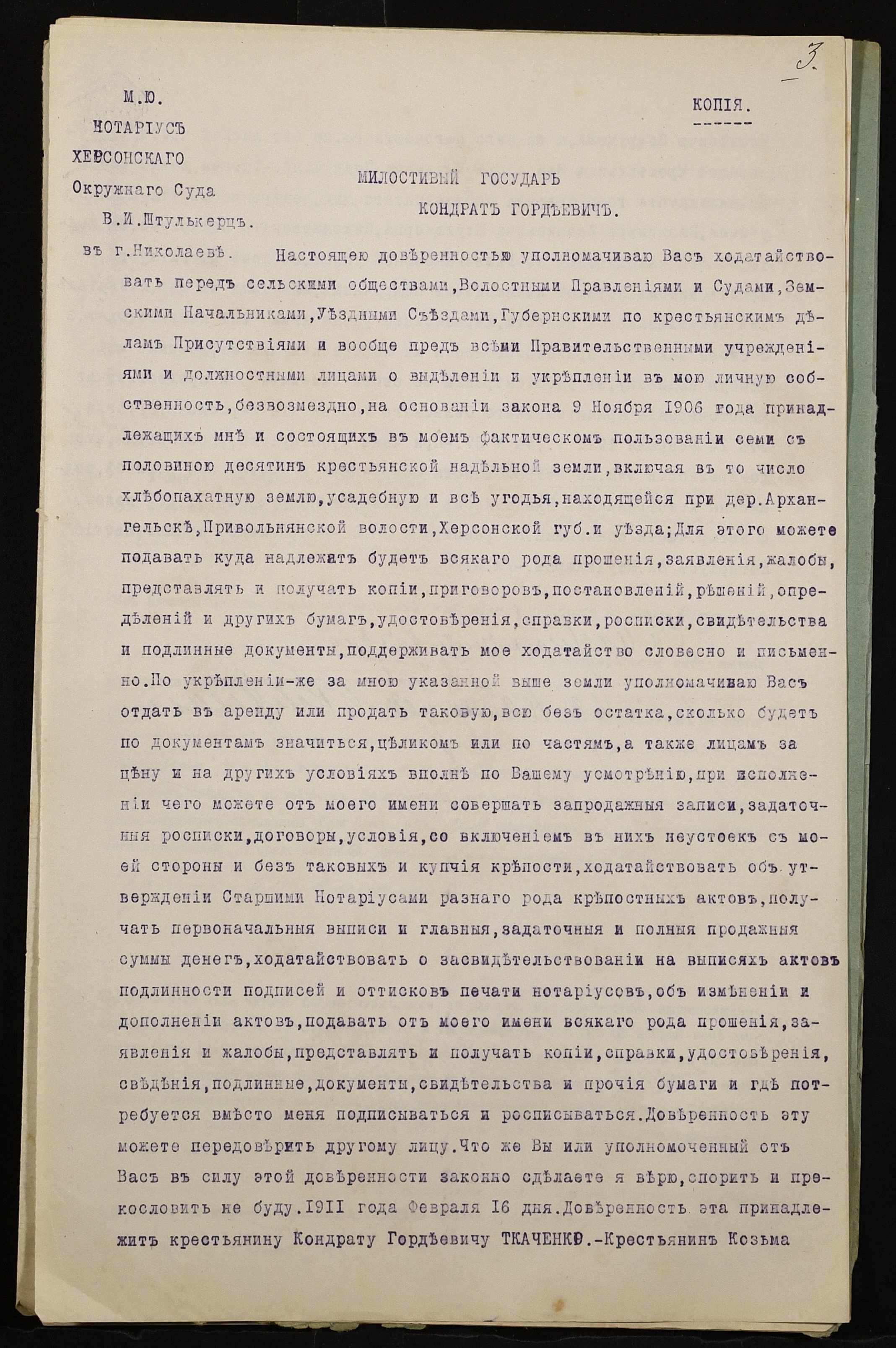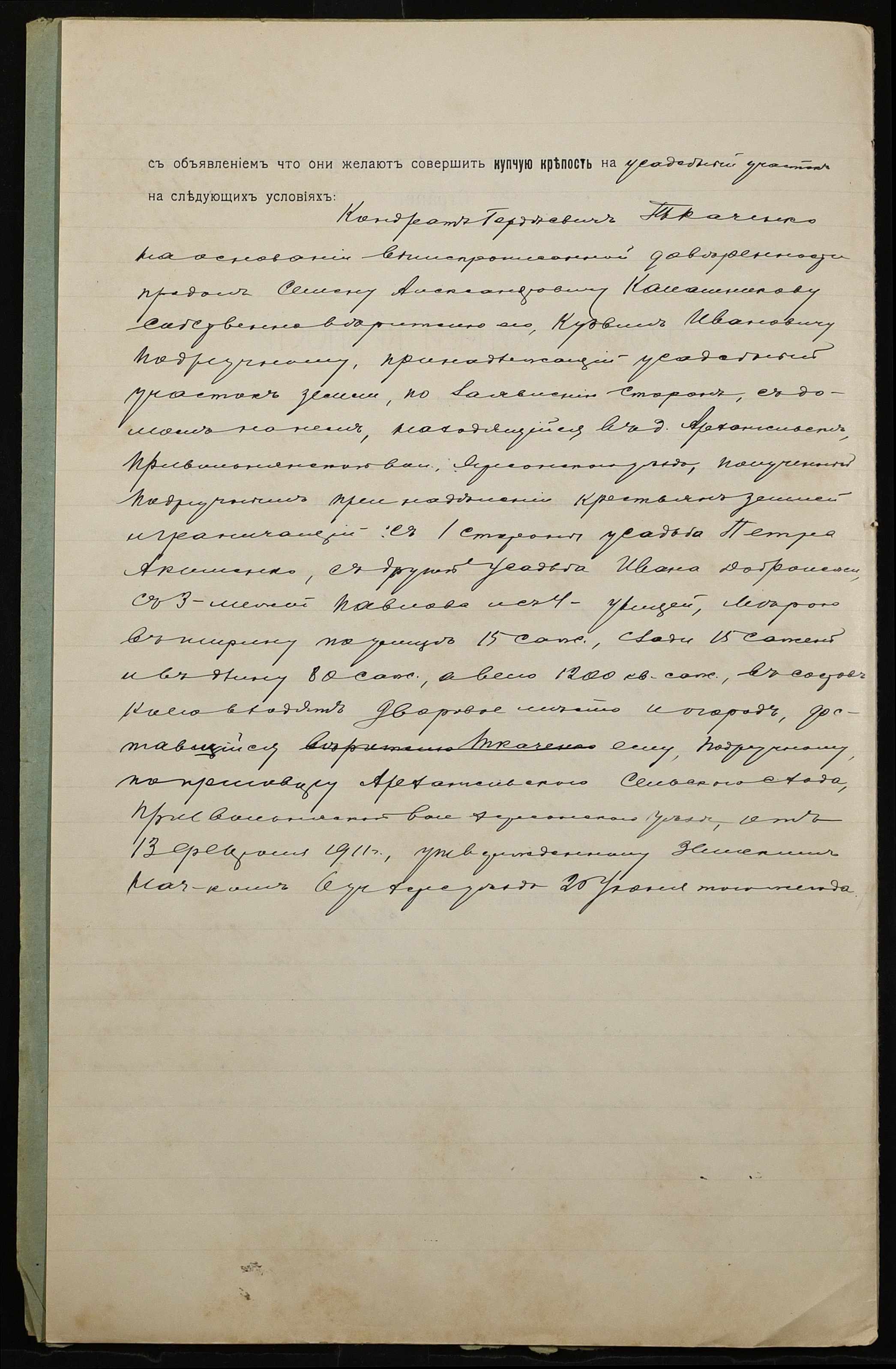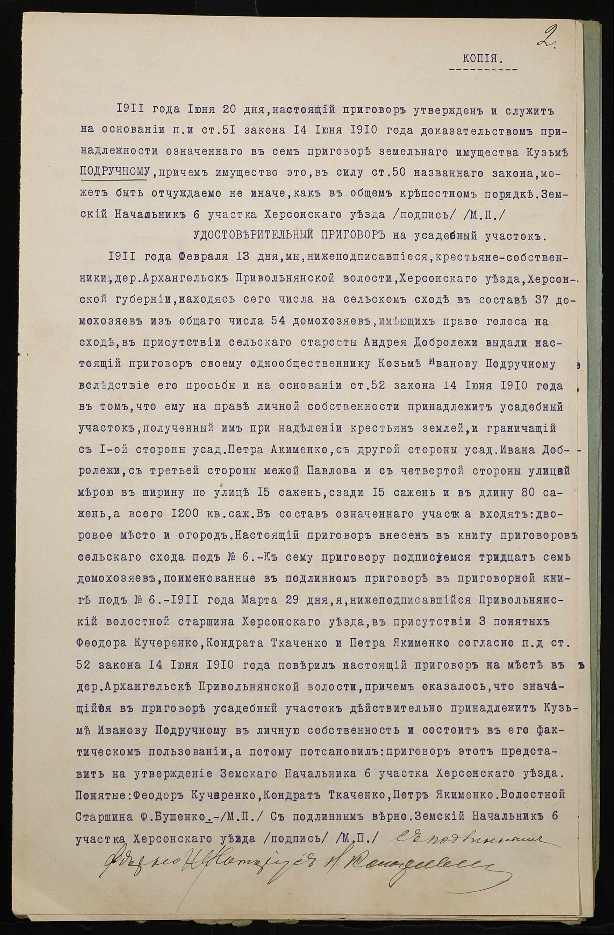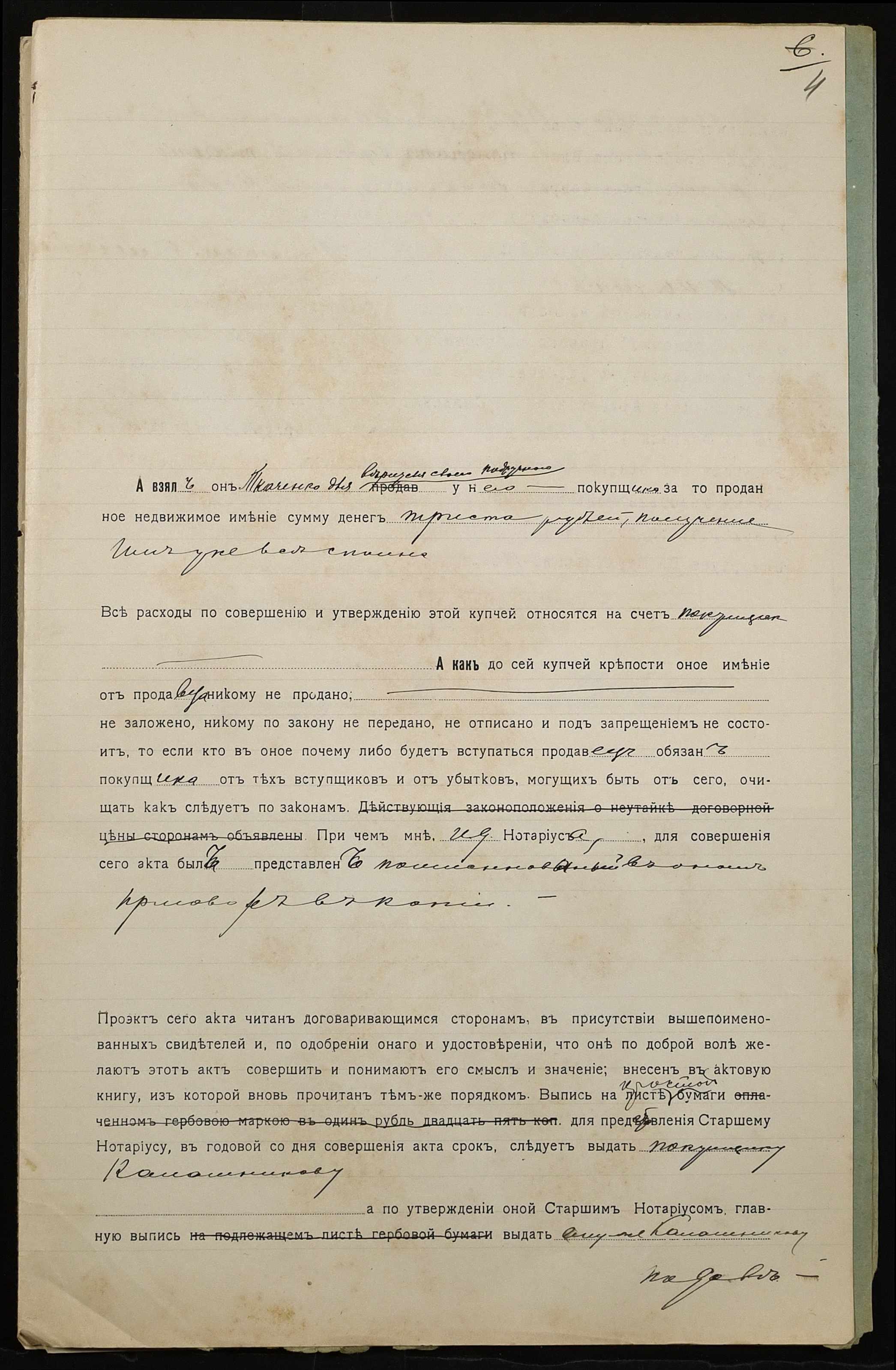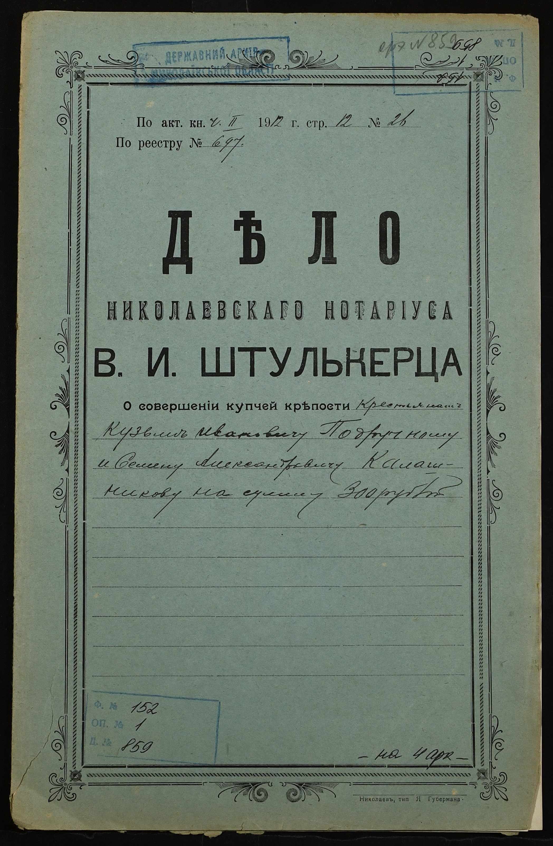 • • • • Справа № 859 “Справа про вчинення купчої про продаж землі селянином Подручним Кузьмою Івановичем (Подручным Кузьмой Ивановичем) на користь селянина Калашникова Семена Олександровича (Калашникова Семена Александровича)”