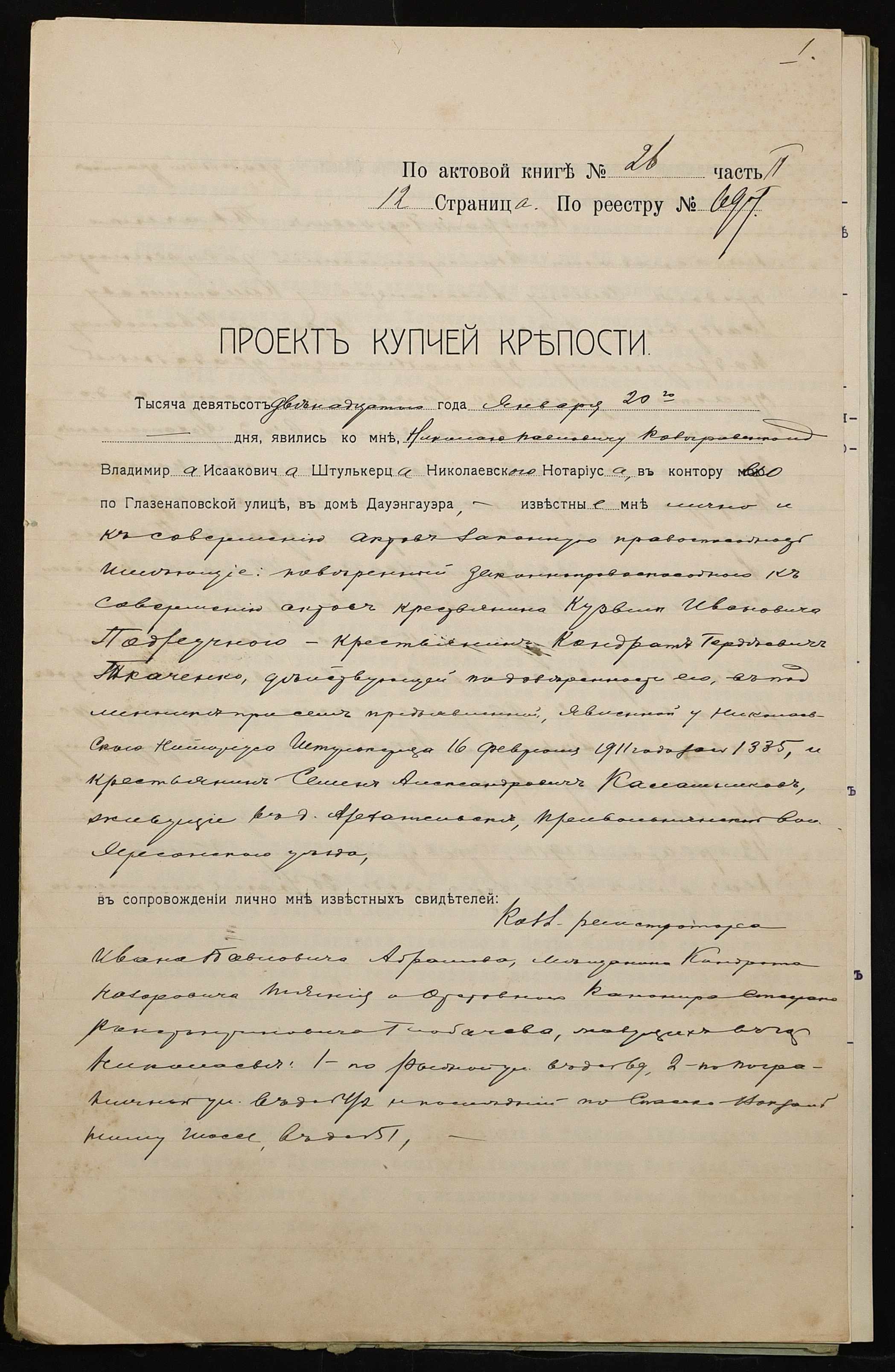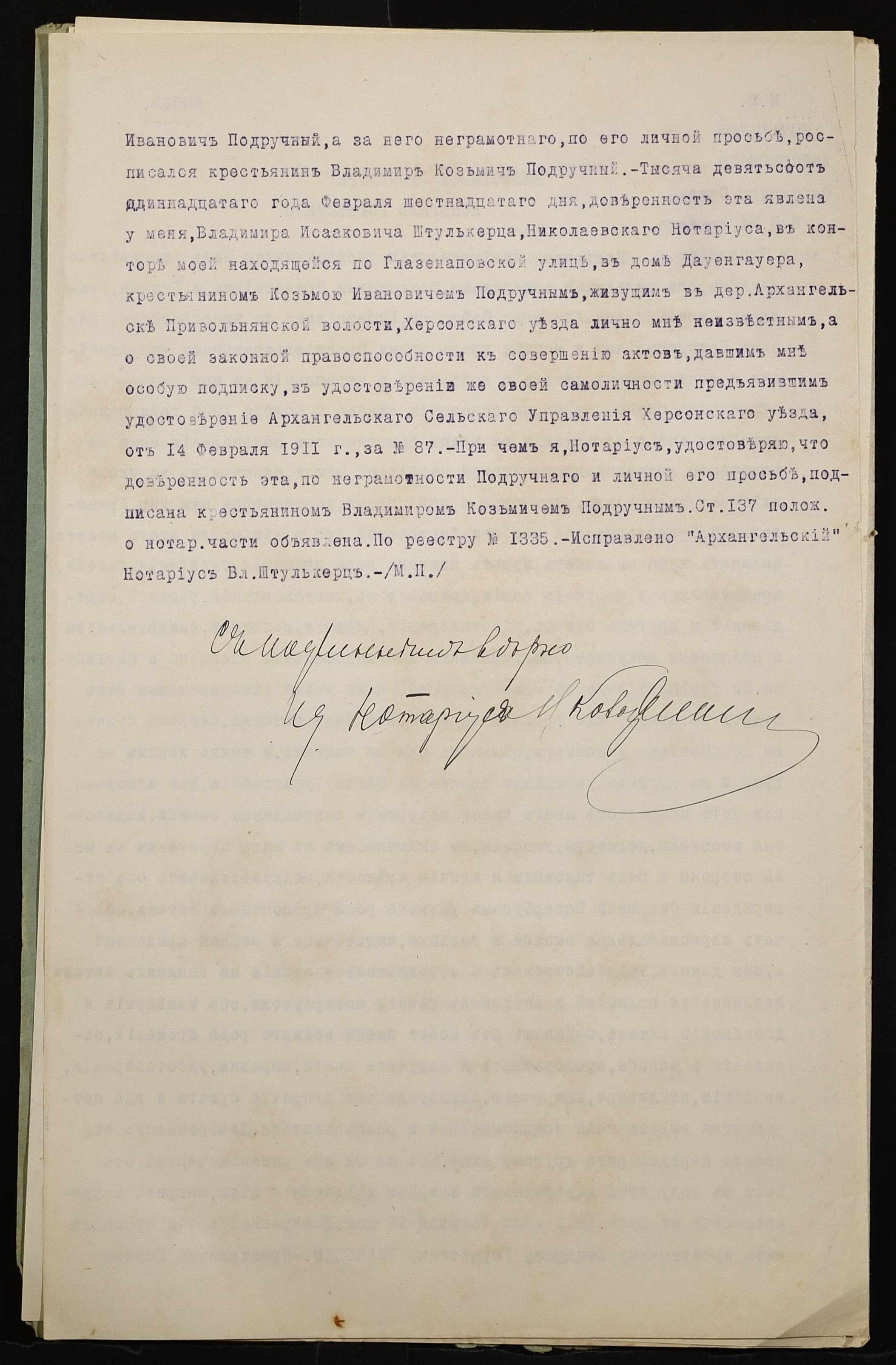 ◦ ◦ Фонд № 152 “Контора миколаївського нотаріуса Херсонського окружного суду Штулькерца Володимира Ісааковича”