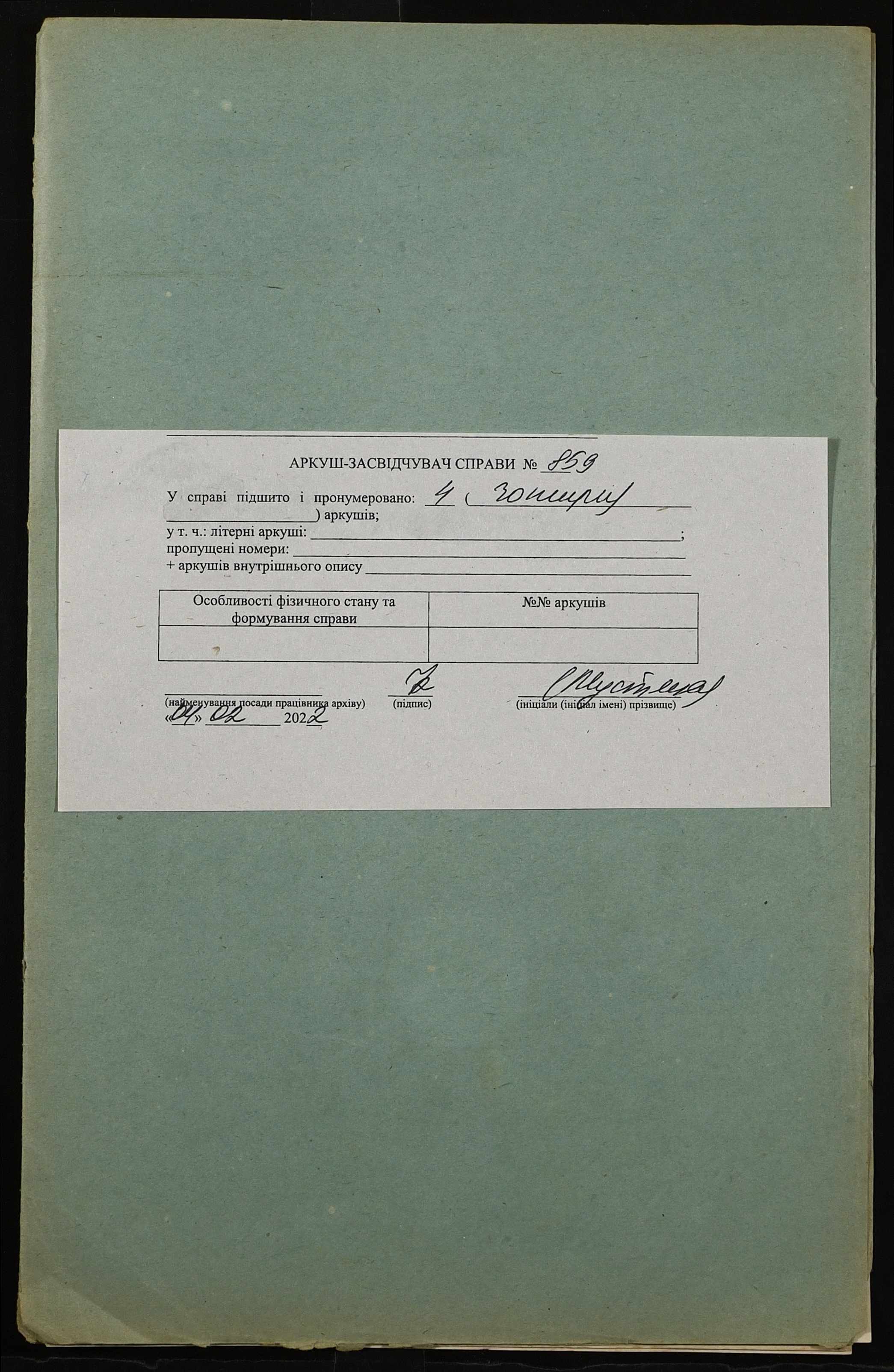 Фонд 152 / Опис 1 / Справа 0859