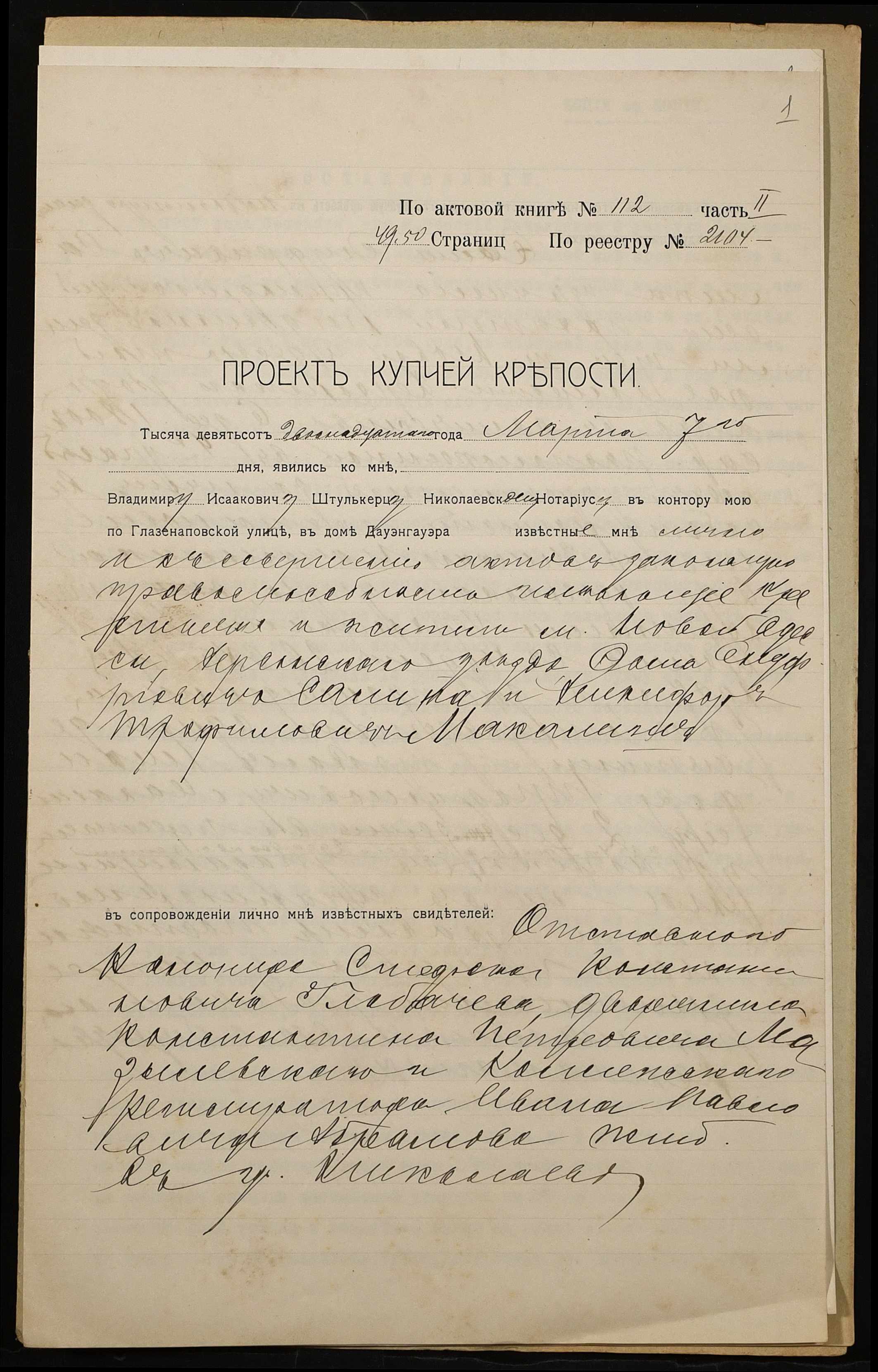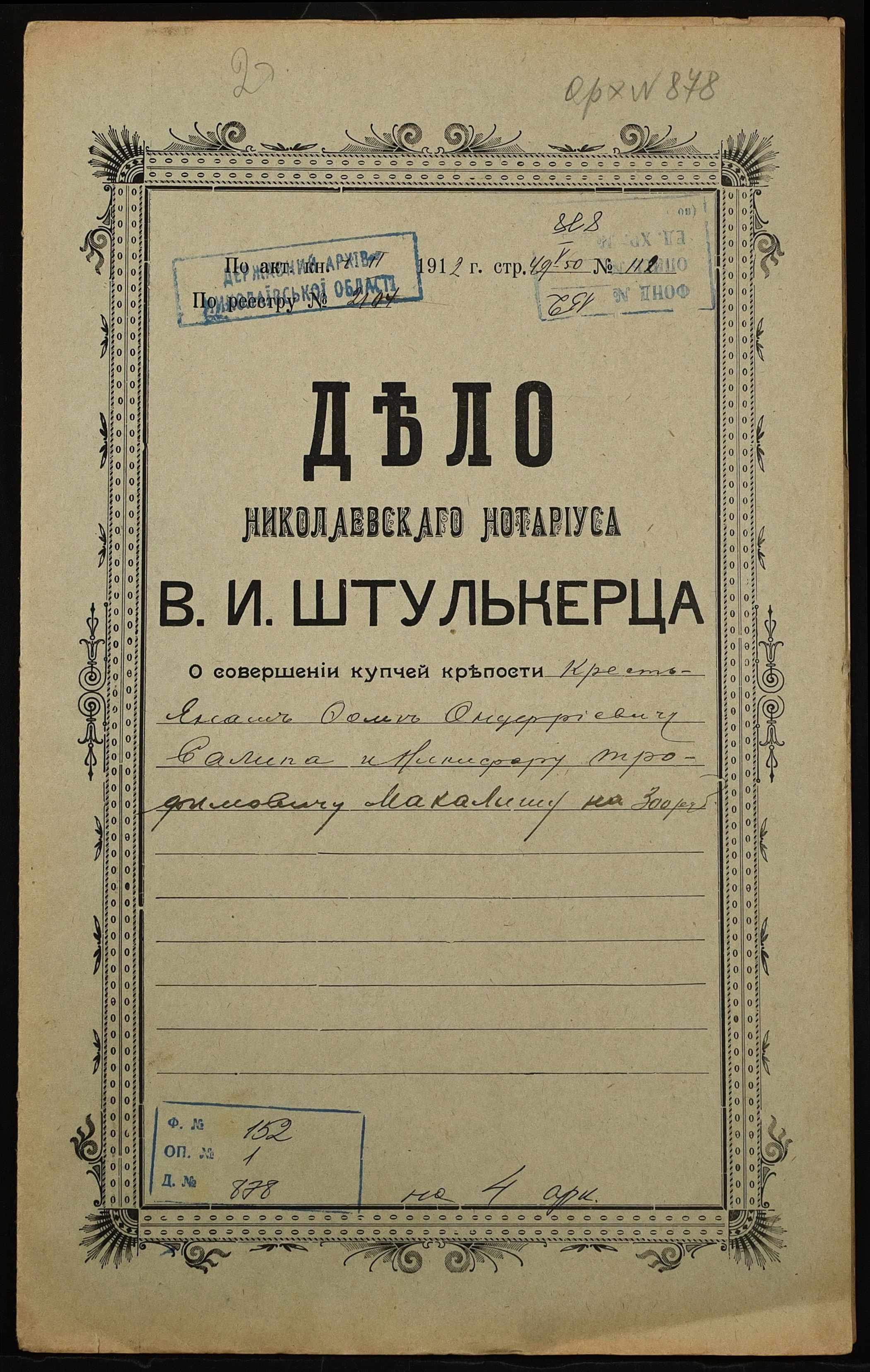 ◦ ◦ Фонд № 152 “Контора миколаївського нотаріуса Херсонського окружного суду Штулькерца Володимира Ісааковича”