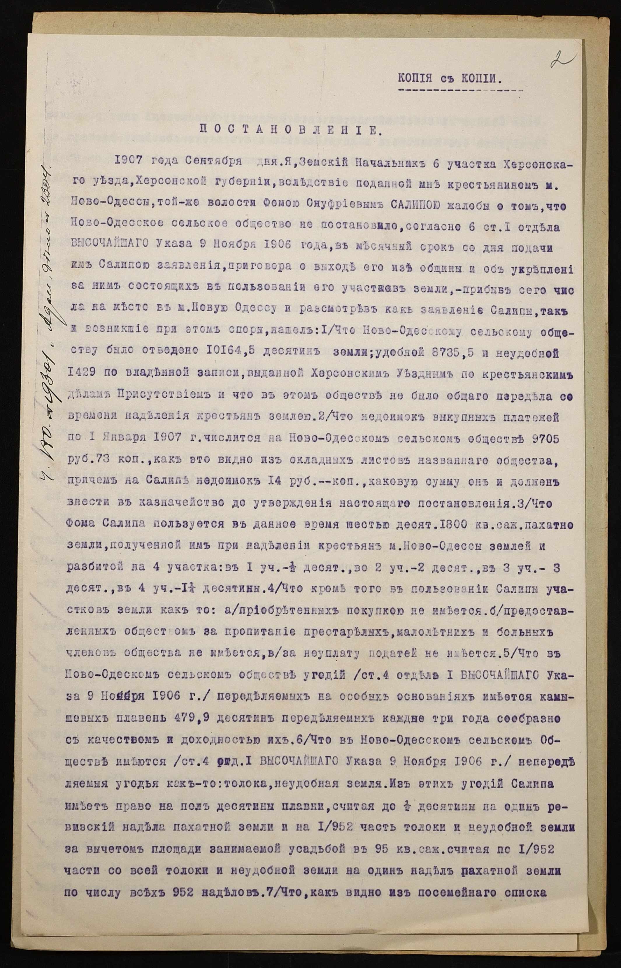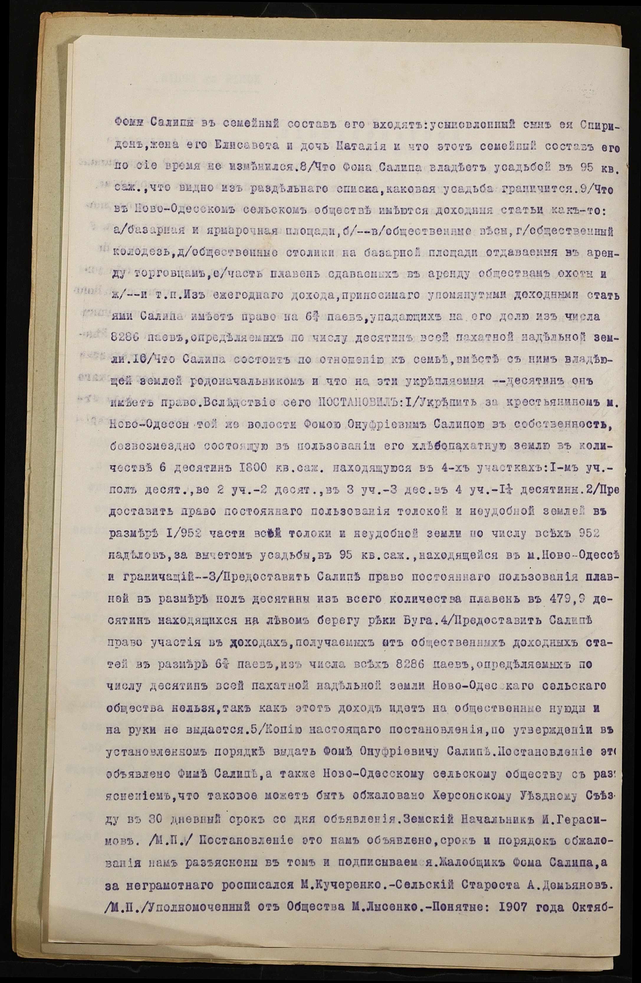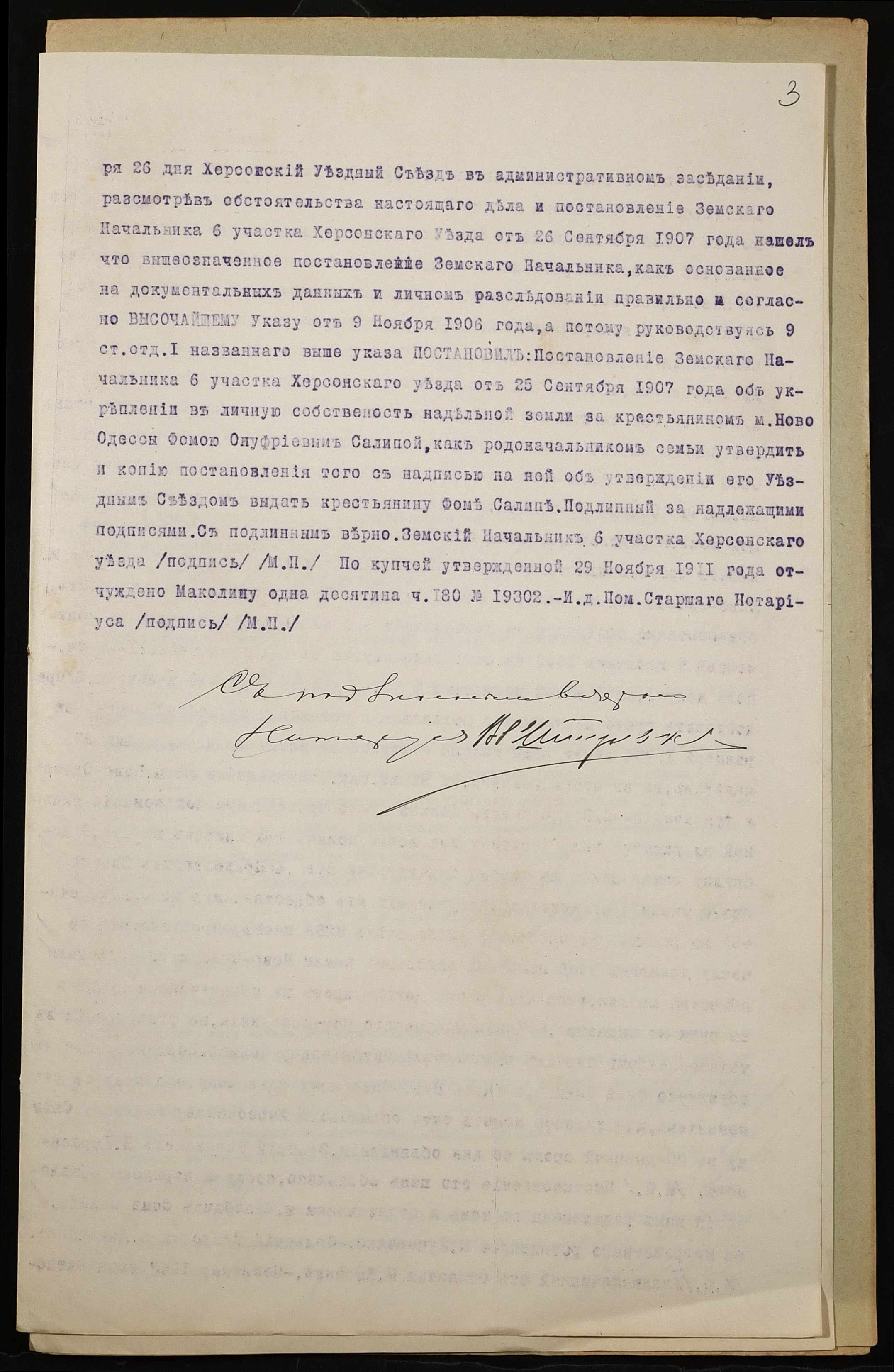 • • • • Справа № 878 “Справа про вчинення купчої про продаж землі селянином Саліпою Хомою Онуфрійовичем (Салипой Фомой Онуфриевичем) на користь селянина Макаліша Никифора Трохимовича (Макалиша Никифора Трофимовича)”