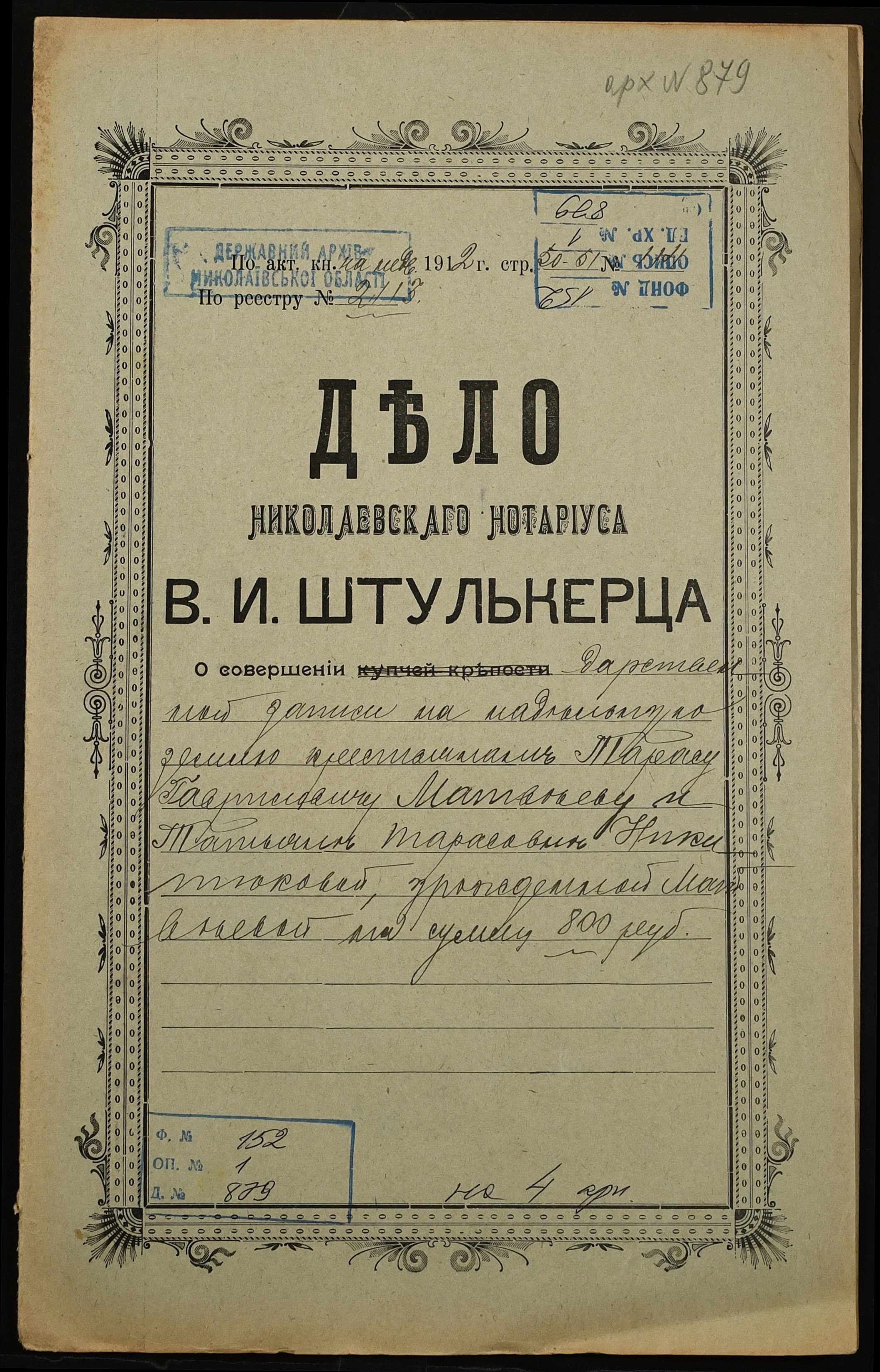 ◦ ◦ Фонд № 152 “Контора миколаївського нотаріуса Херсонського окружного суду Штулькерца Володимира Ісааковича”