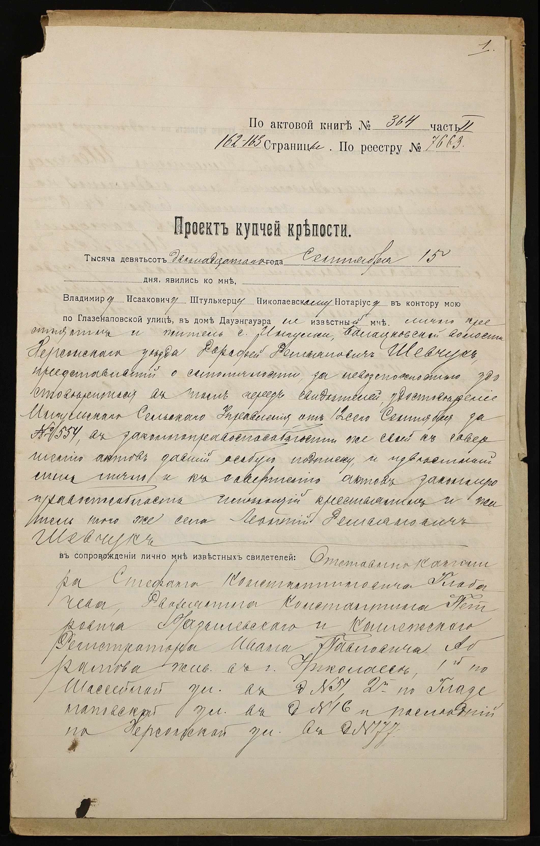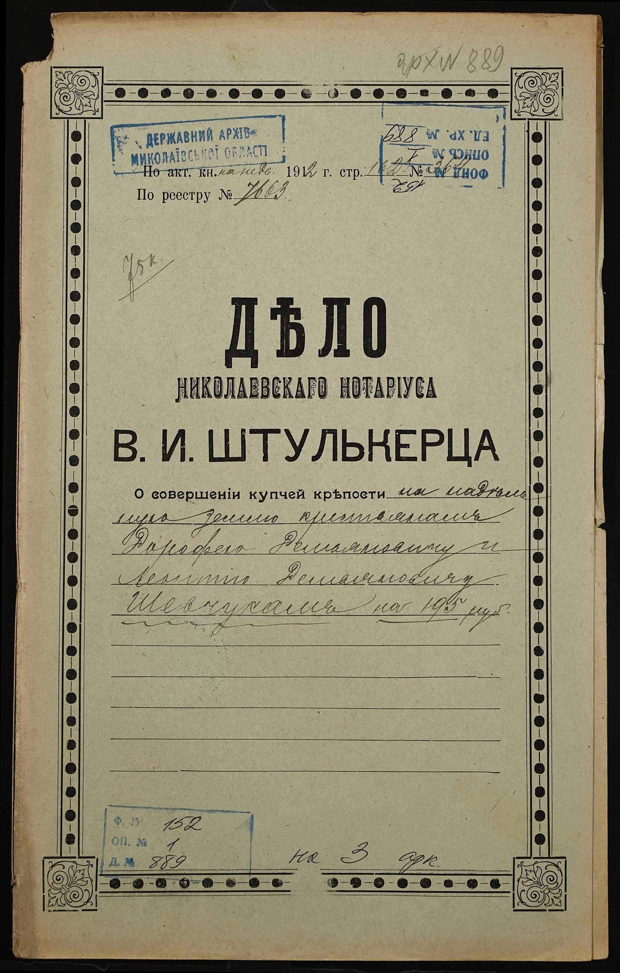 ◦ ◦ Фонд № 152 “Контора миколаївського нотаріуса Херсонського окружного суду Штулькерца Володимира Ісааковича”