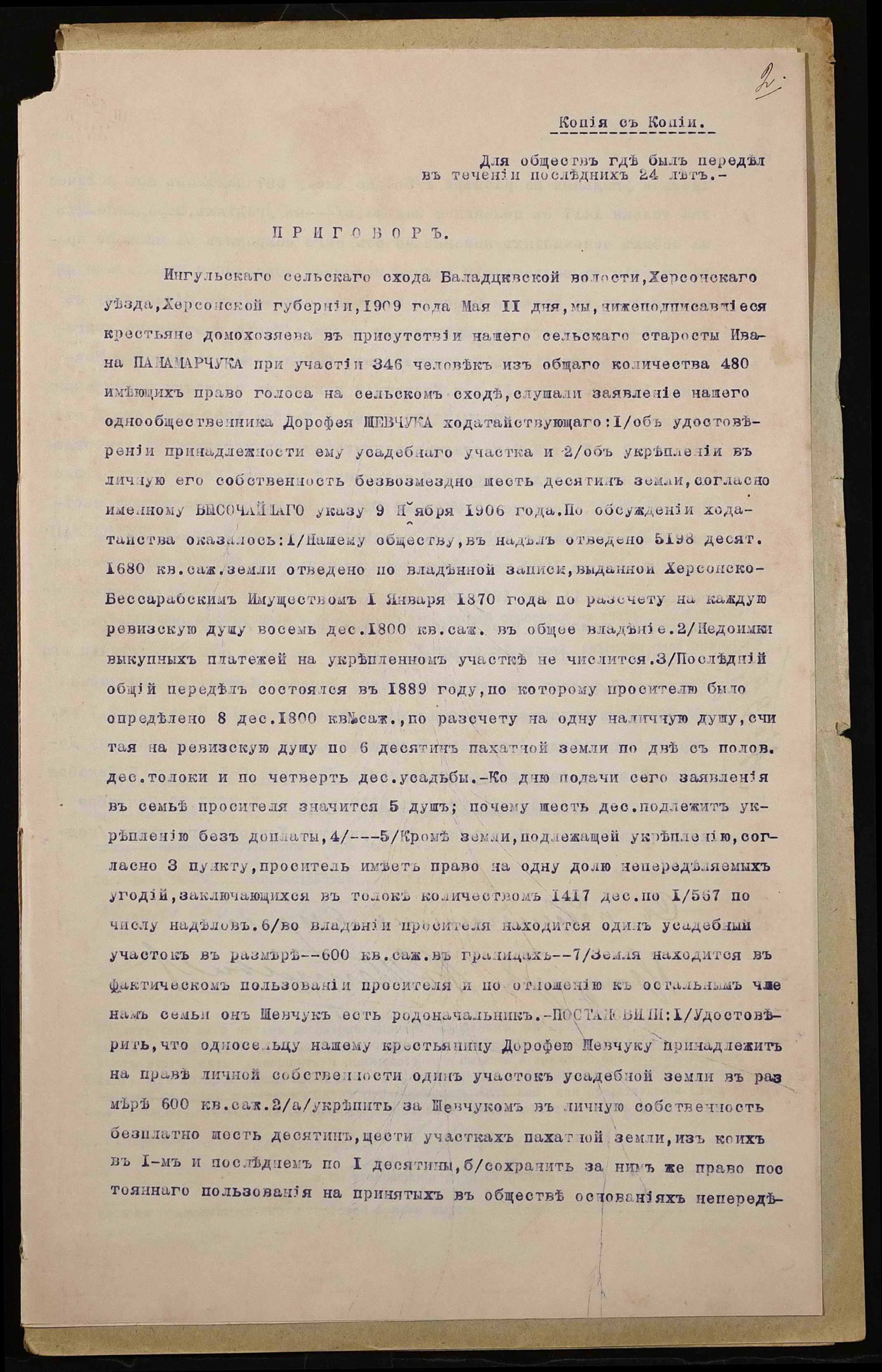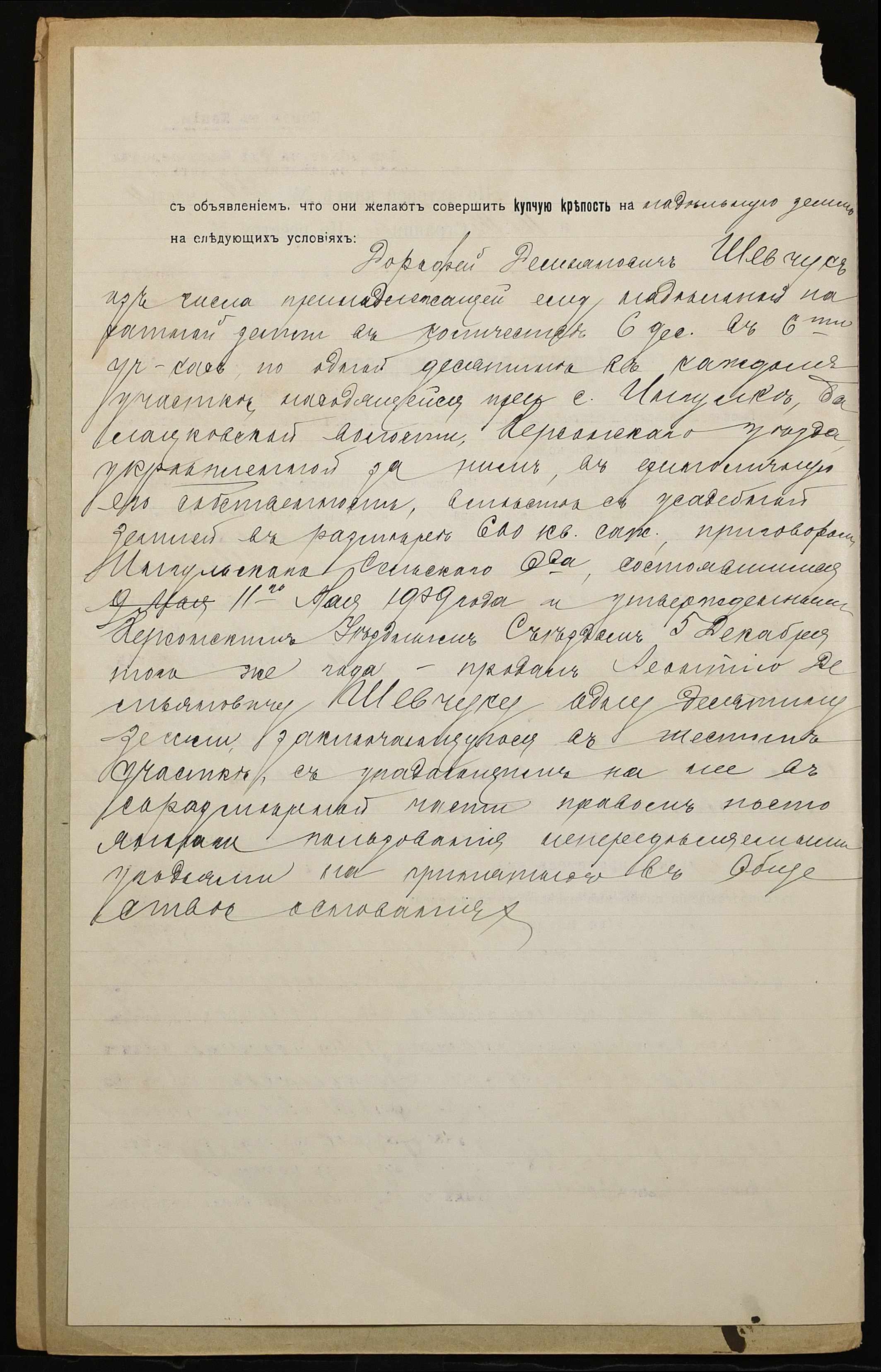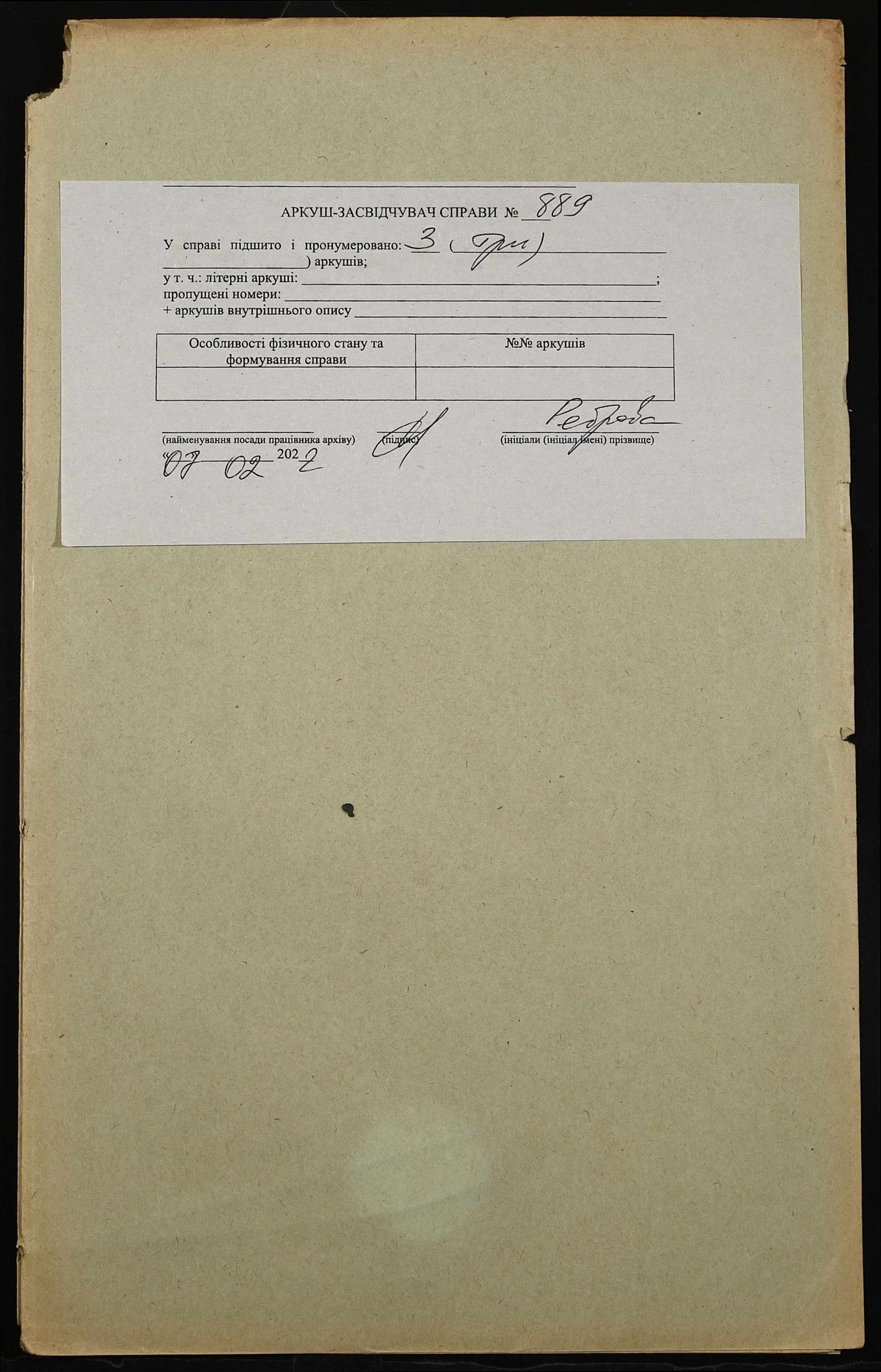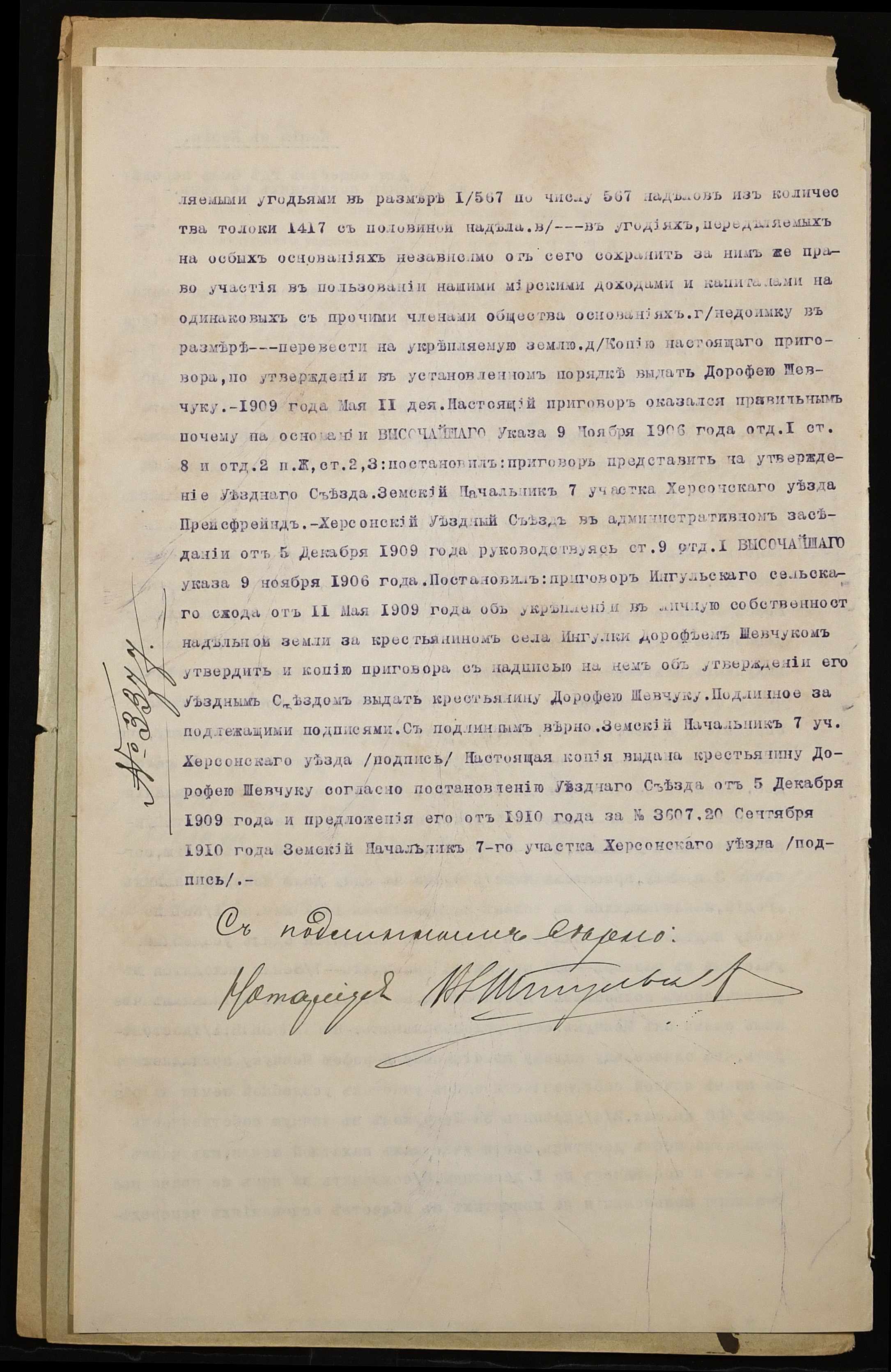 • • • • Справа № 889 “Справа про вчинення купчої про продаж землі селянином Шевчуком Дорофієм Дем’яновичем (Шевчука Дорофеем Демьяновичем) на користь селянина Шевчука Леонтія Дем’яновича (Шевчука Леонтия Демьяновича)”