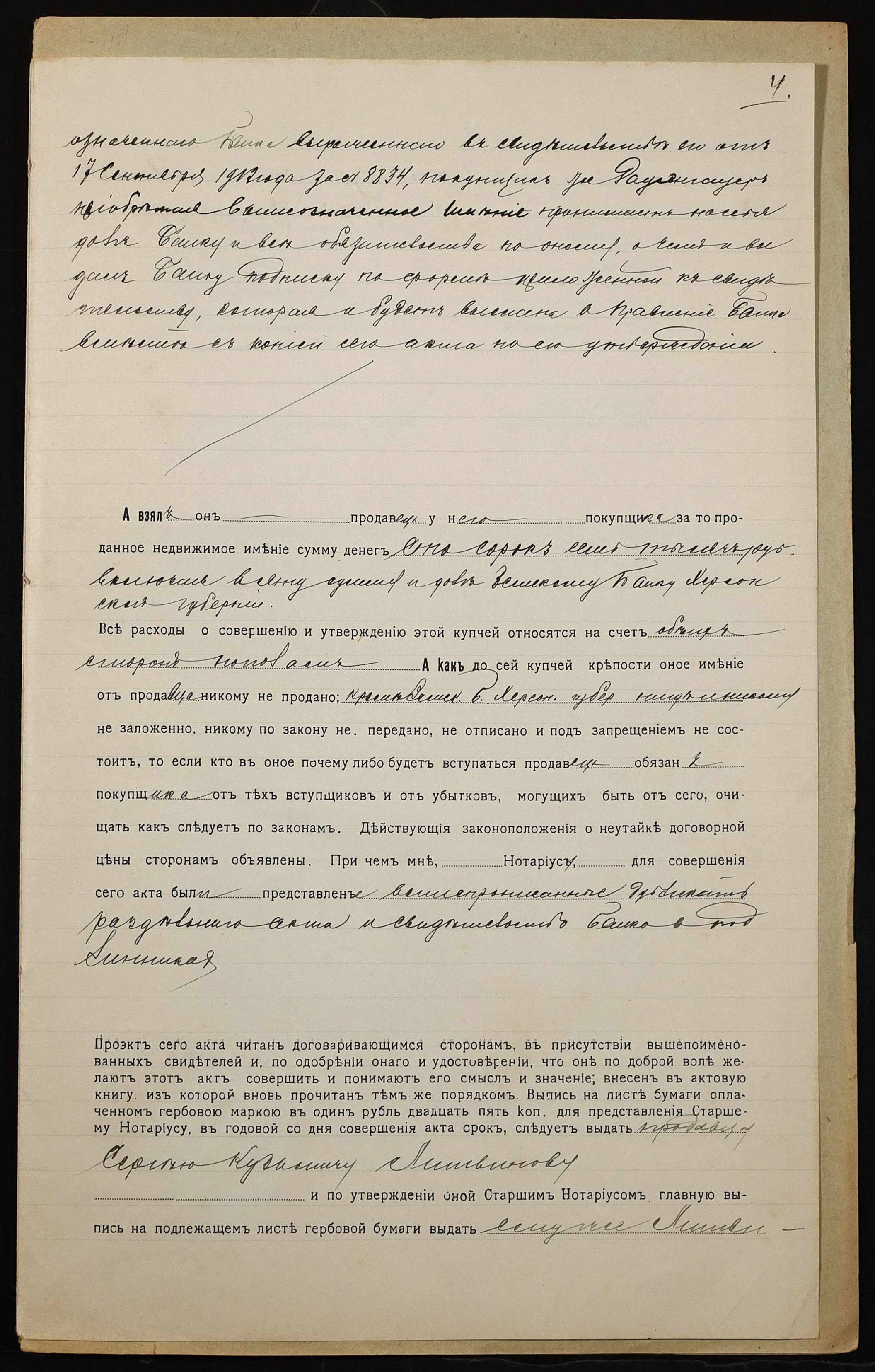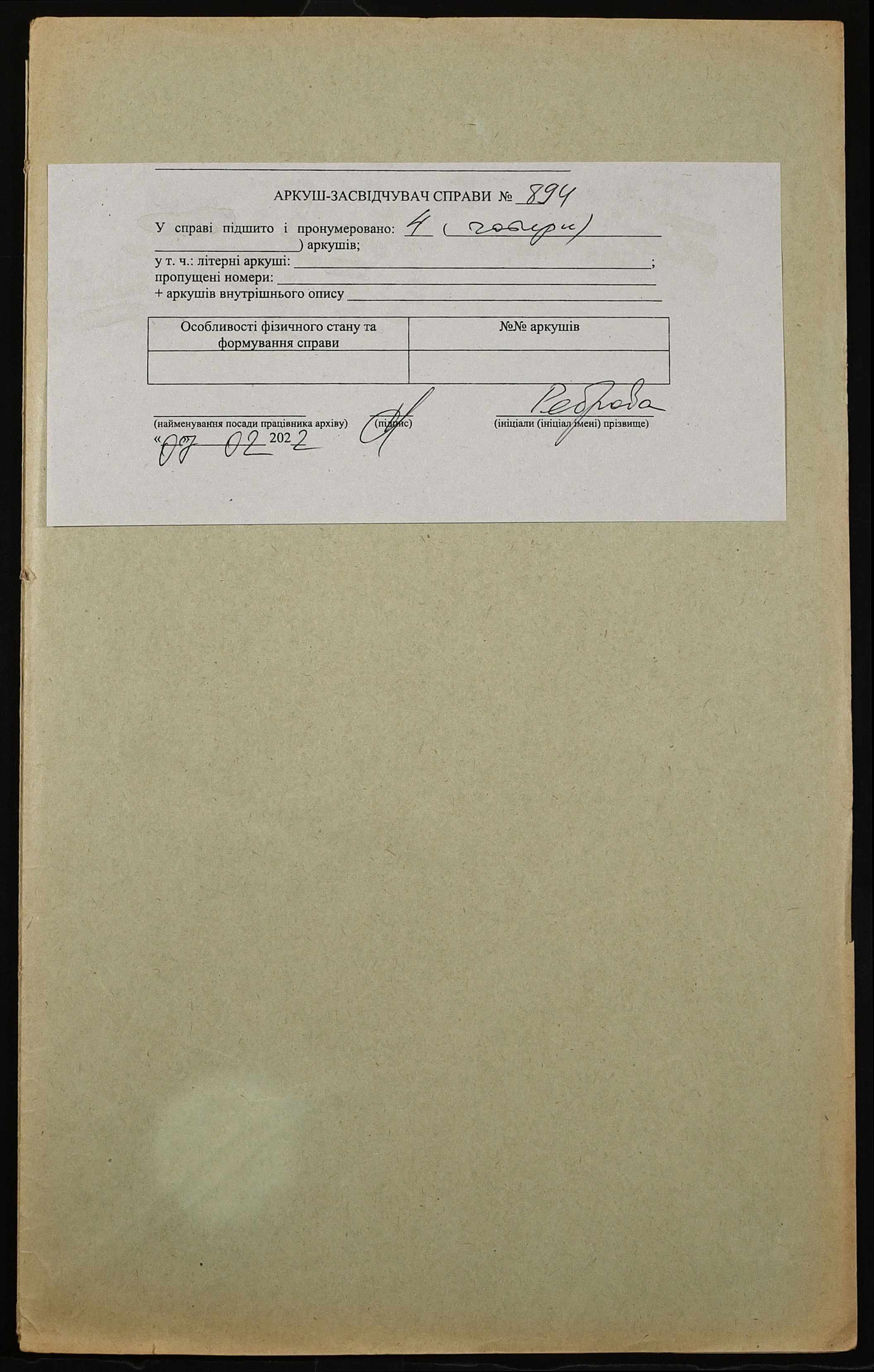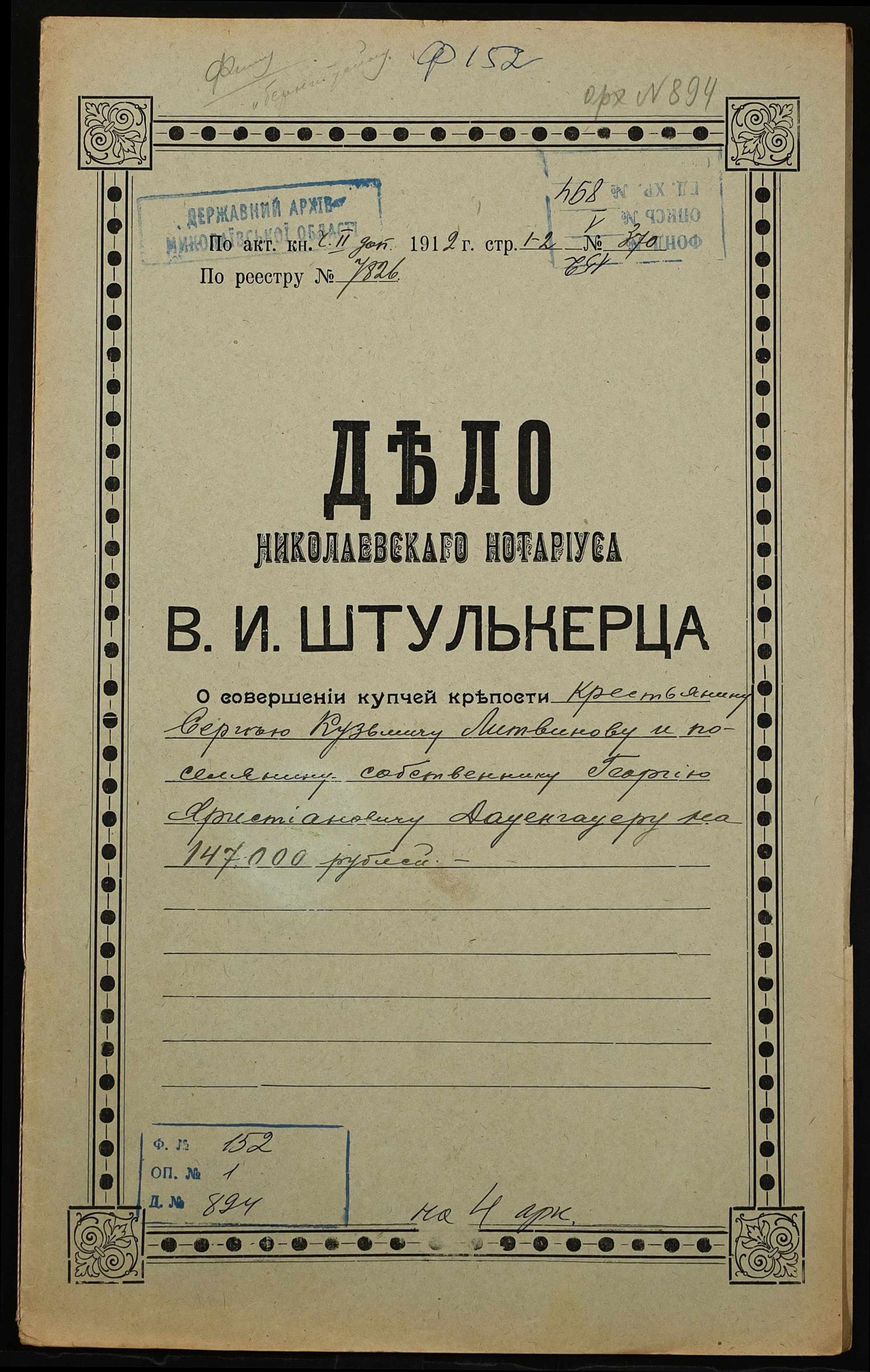 • • • • Справа № 894 “Справа про вчинення купчої про продаж нерухомого майна селянином Литвинову Сергію Кузьмичу (Литвинову Сергею Кузьмичу) на користь селянина-власника Дауенгауера Георгія Християновича (Дауэнгауэра Георгия Христиановича)”