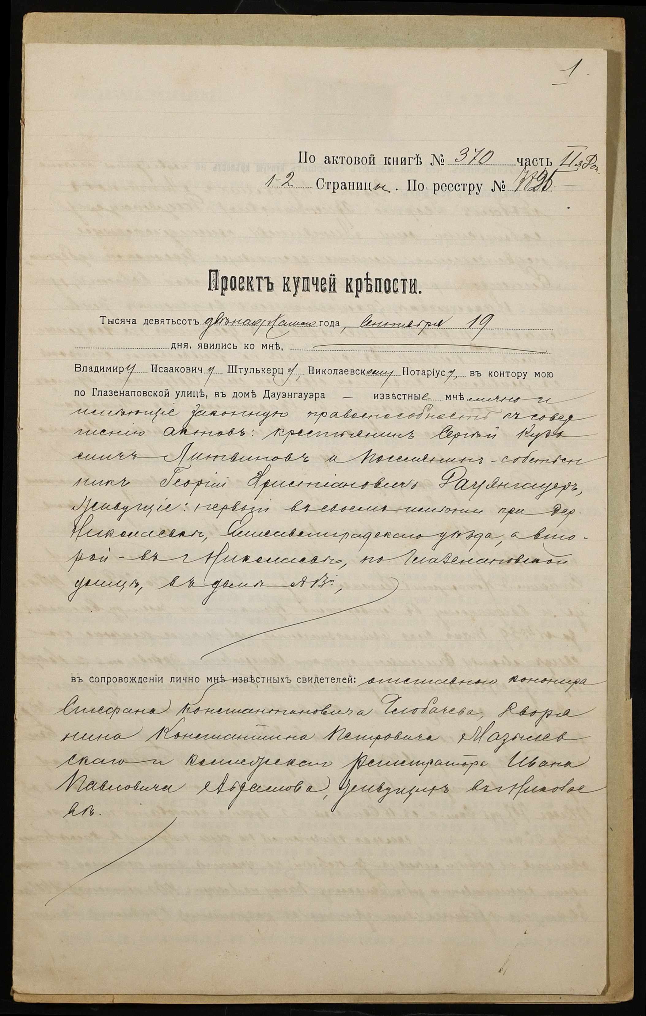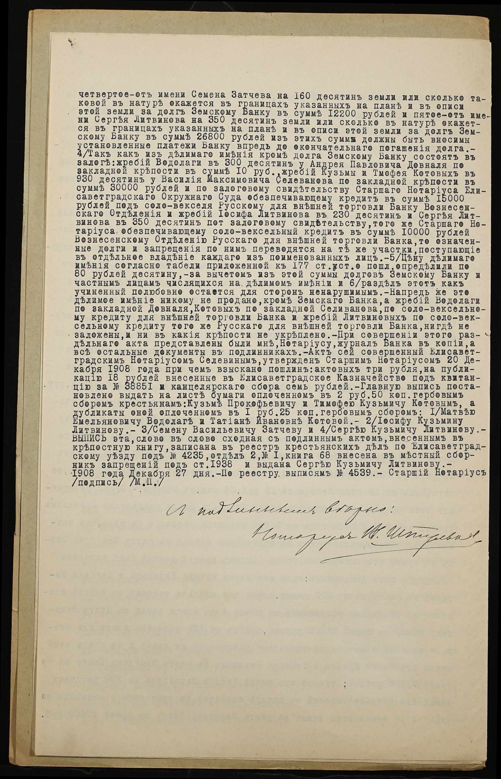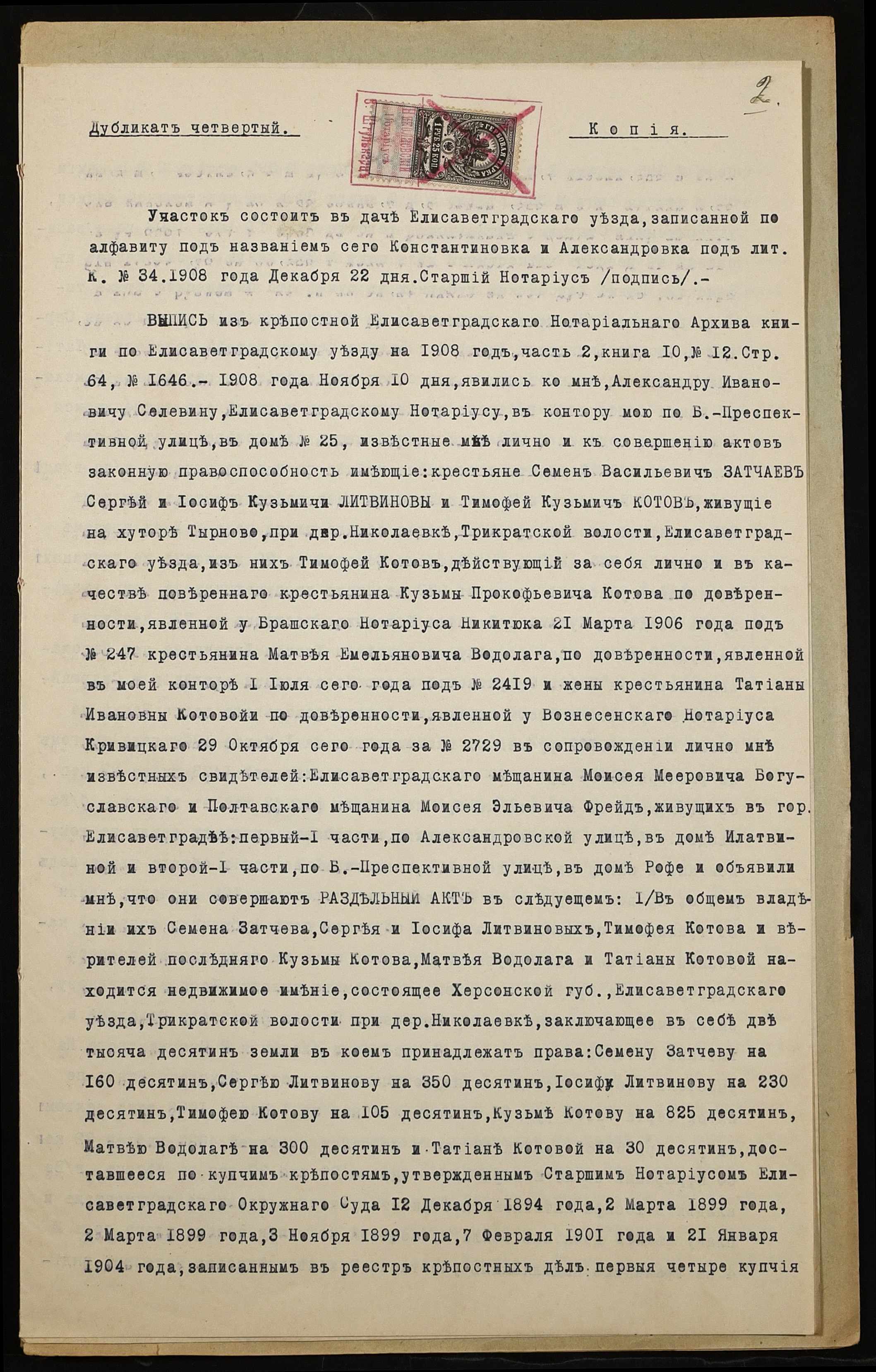 • • • • Справа № 894 “Справа про вчинення купчої про продаж нерухомого майна селянином Литвинову Сергію Кузьмичу (Литвинову Сергею Кузьмичу) на користь селянина-власника Дауенгауера Георгія Християновича (Дауэнгауэра Георгия Христиановича)”