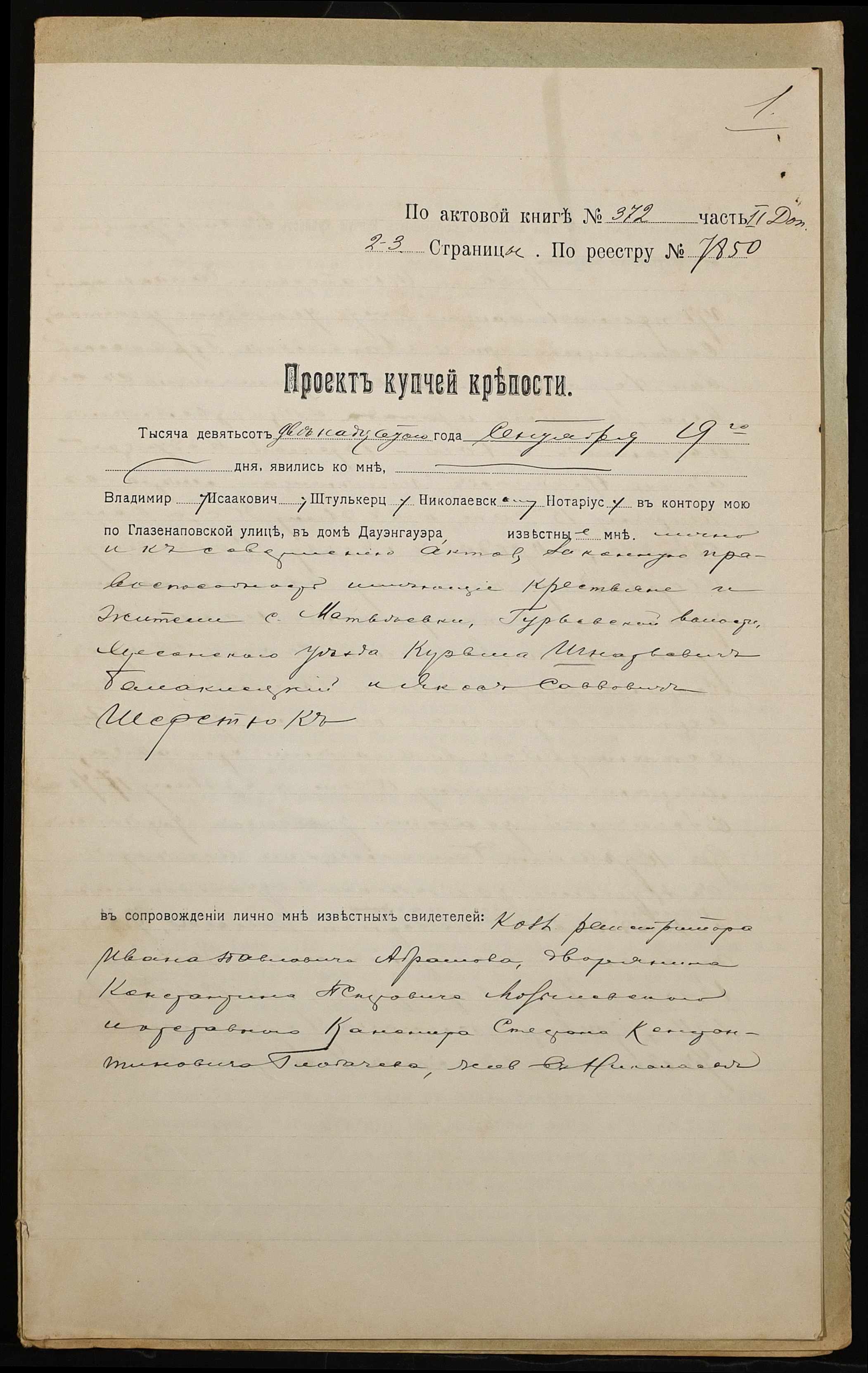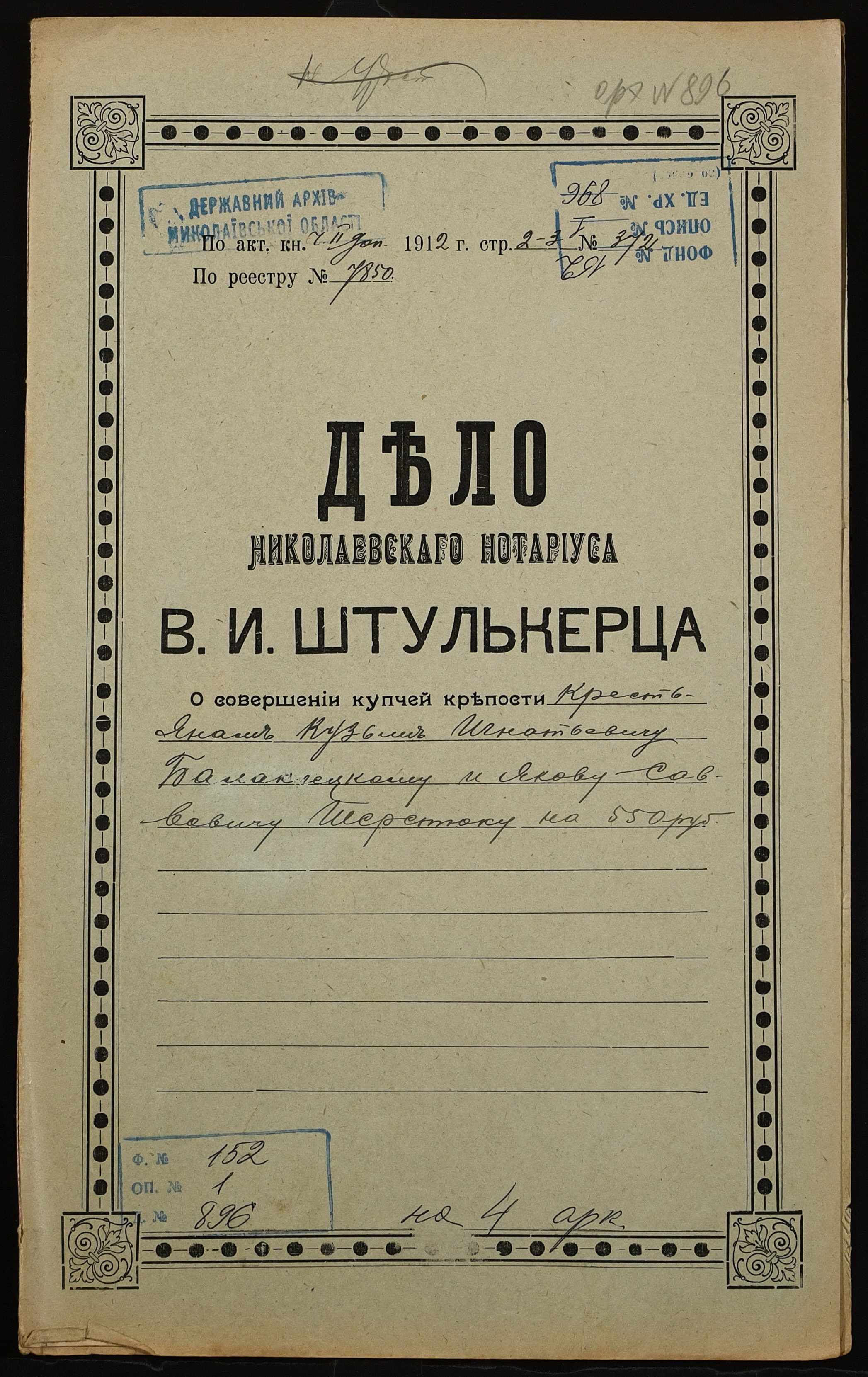 ◦ ◦ Фонд № 152 “Контора миколаївського нотаріуса Херсонського окружного суду Штулькерца Володимира Ісааковича”