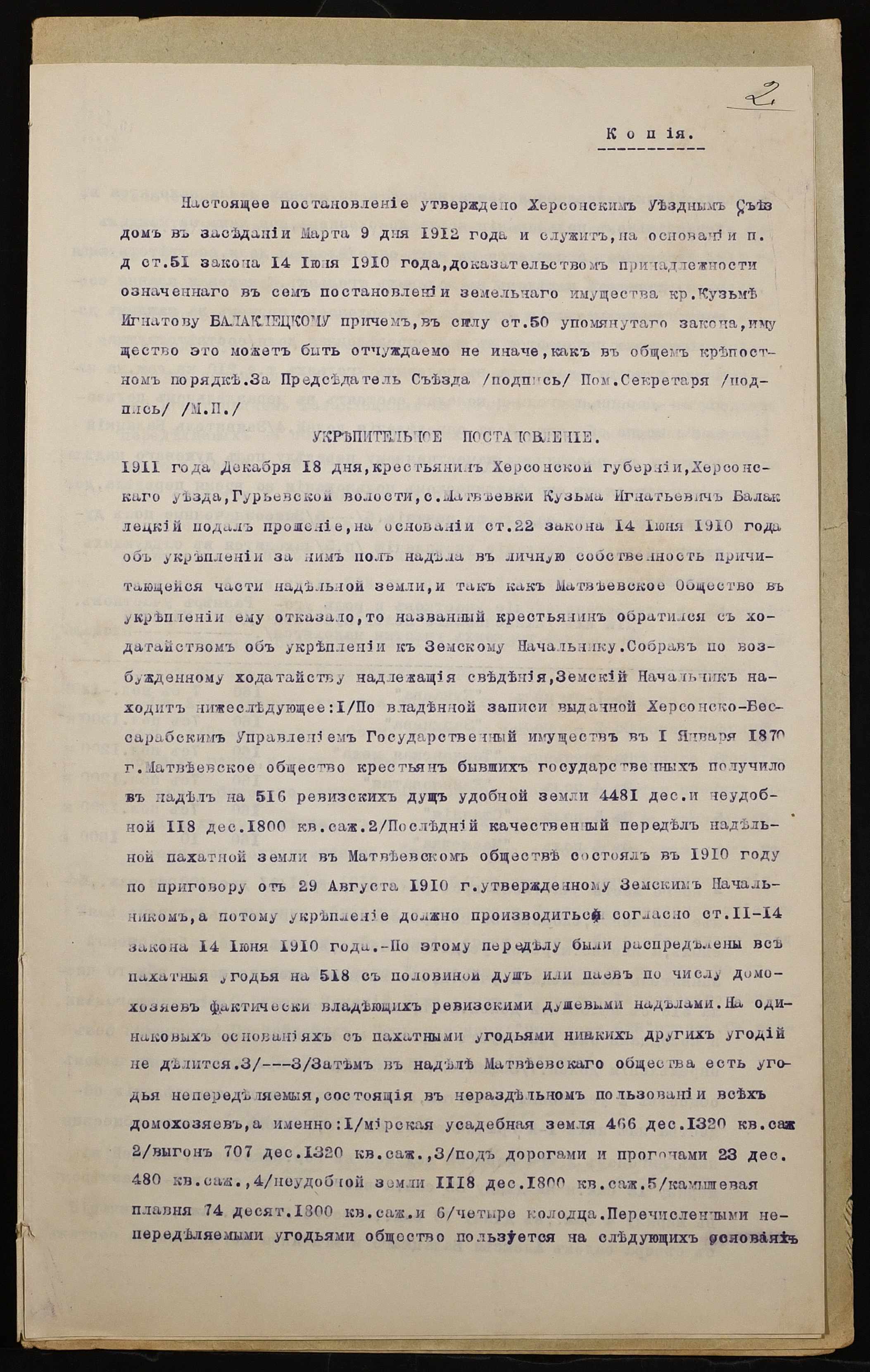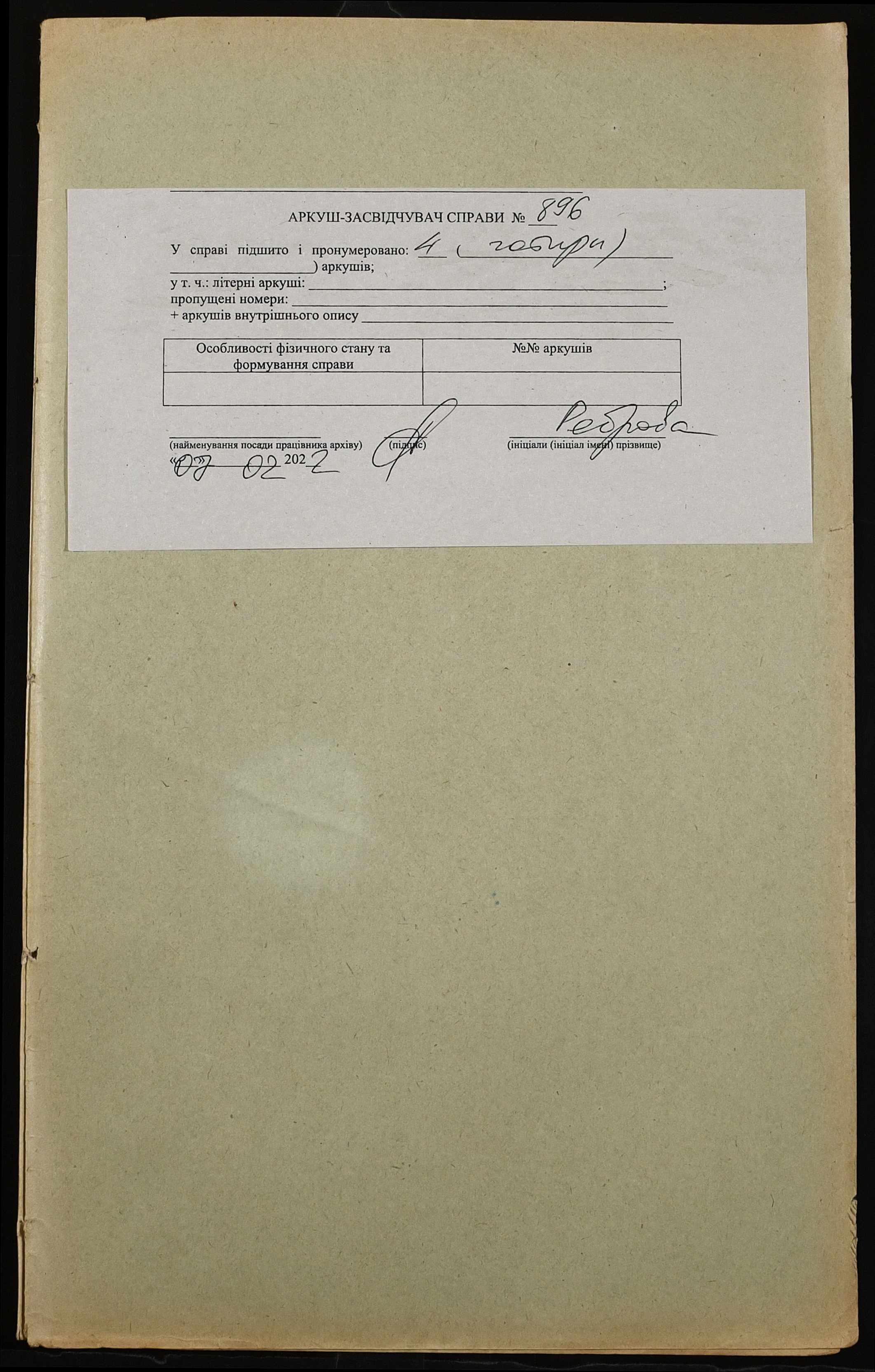 • • • • Справа № 896 “Справа про вчинення купчої про продаж землі селянином Балаклецьким Кузьмою Гнатовичем (Балаклецким Кузьмой Игнатовичем) на користь селянина Шерстюка Якова Савича (Шерстюка Якова Саввовича)”